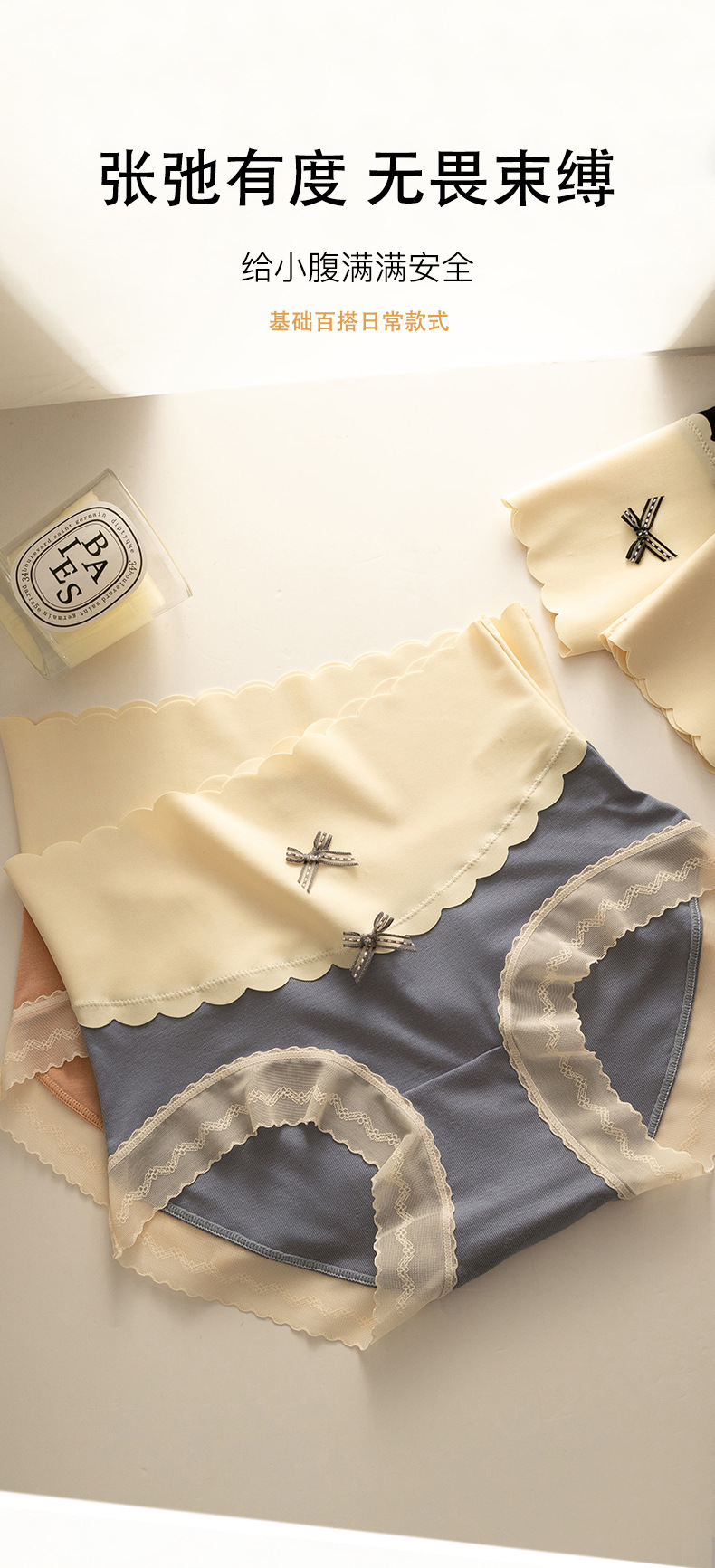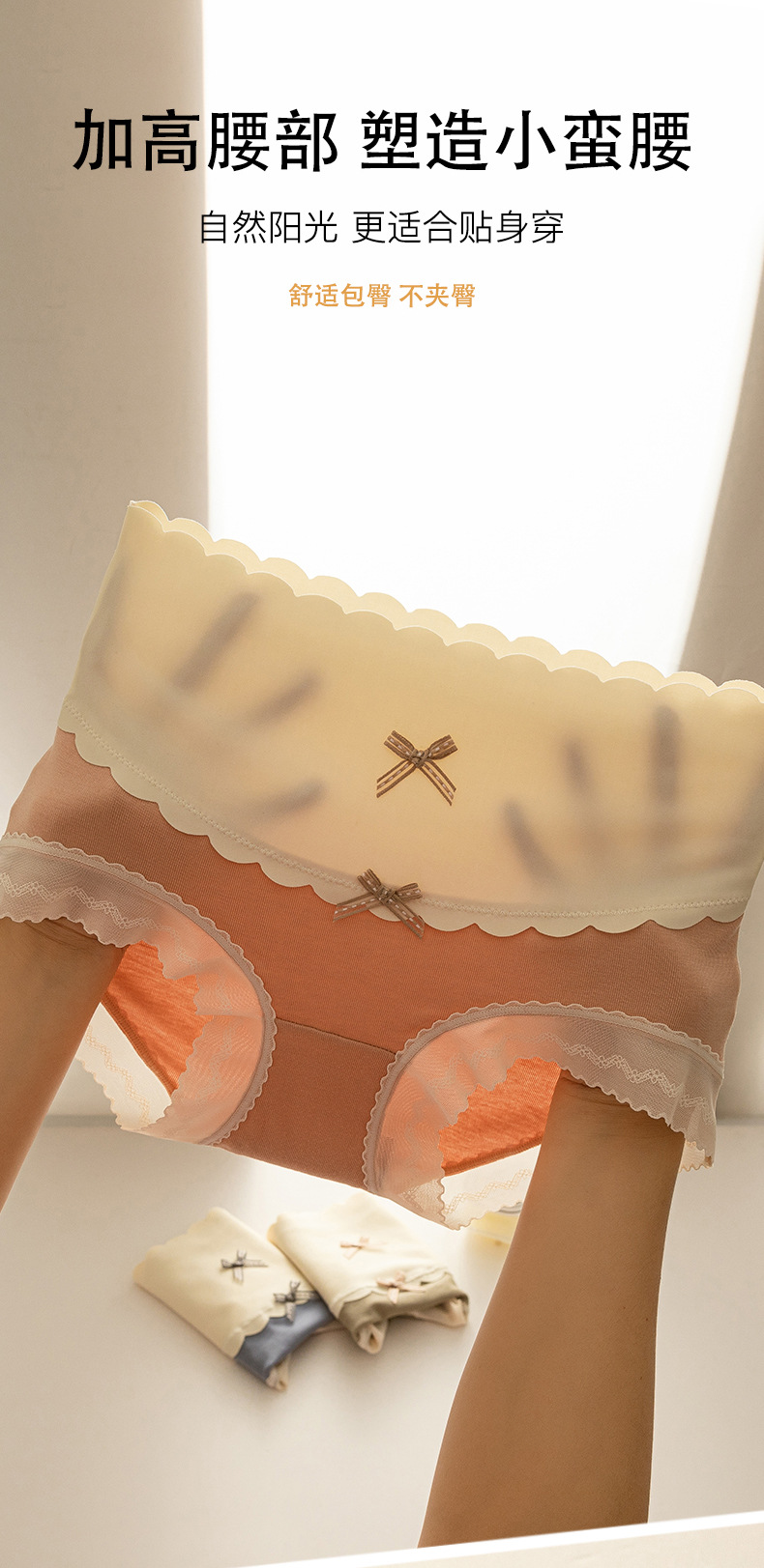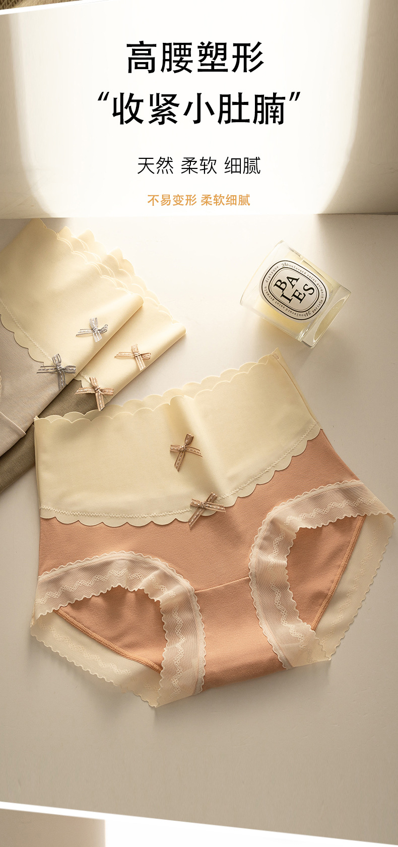 亲肤棉内裤女高腰拼色收腹聚乳酸桑蚕丝内裆舒适蕾丝边大码女