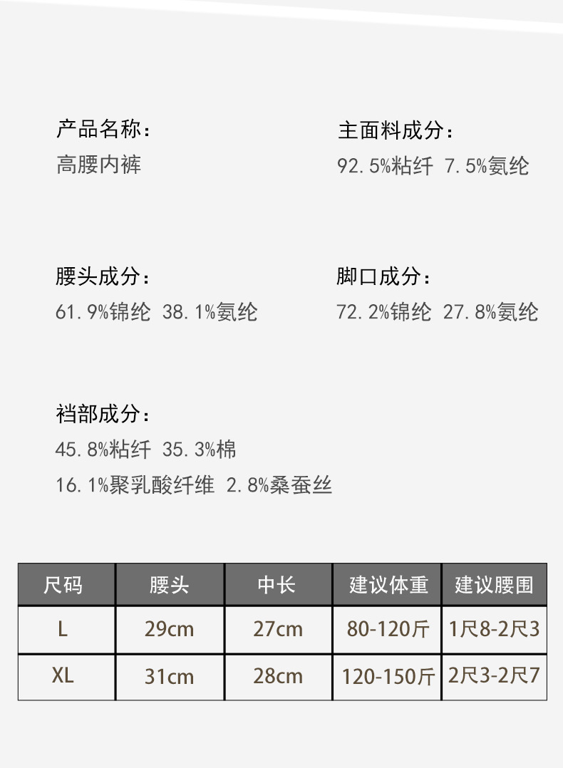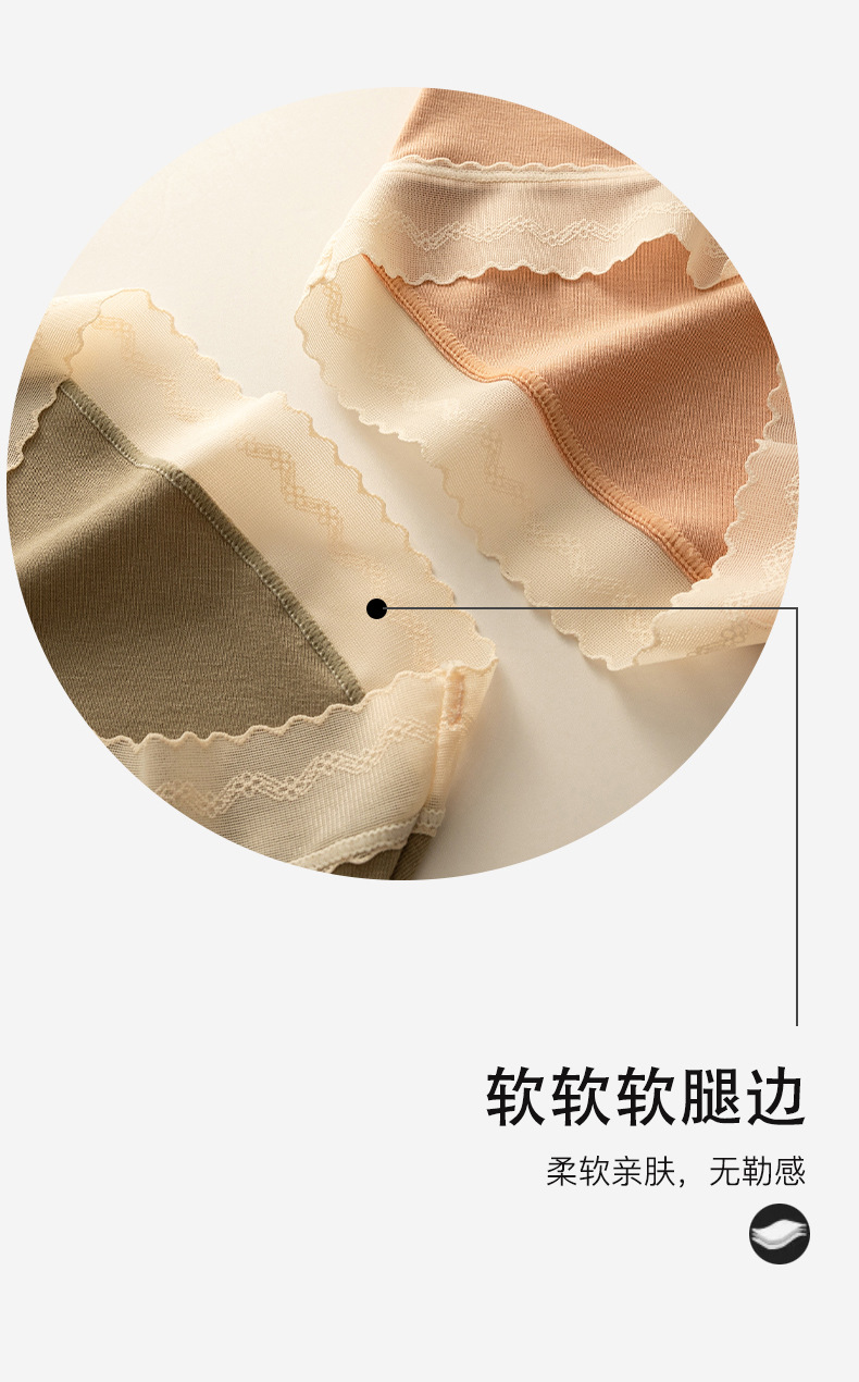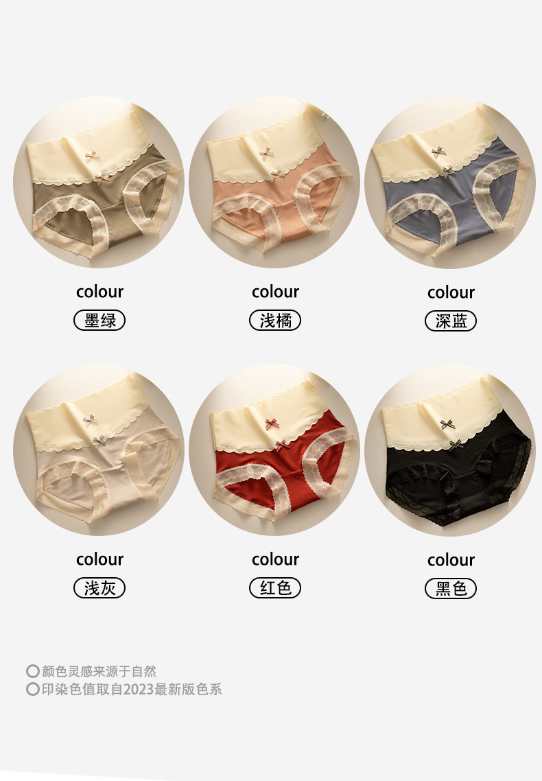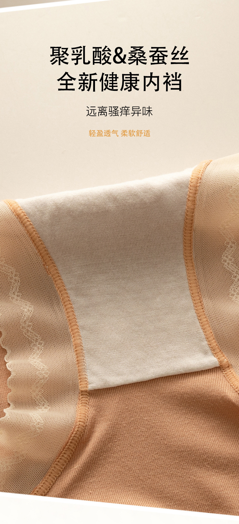 亲肤棉内裤女高腰拼色收腹聚乳酸桑蚕丝内裆舒适蕾丝边大码女