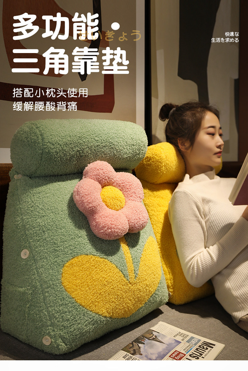 花朵靠枕床头靠背垫三角抱枕女生床上软包靠垫卧室沙发腰垫枕头