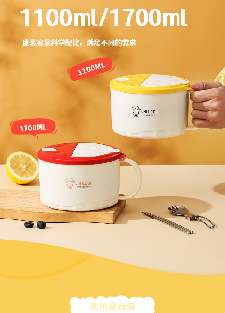 304不锈钢泡面碗带盖大容量可滤水学生宿舍泡面神器上班食堂饭盒