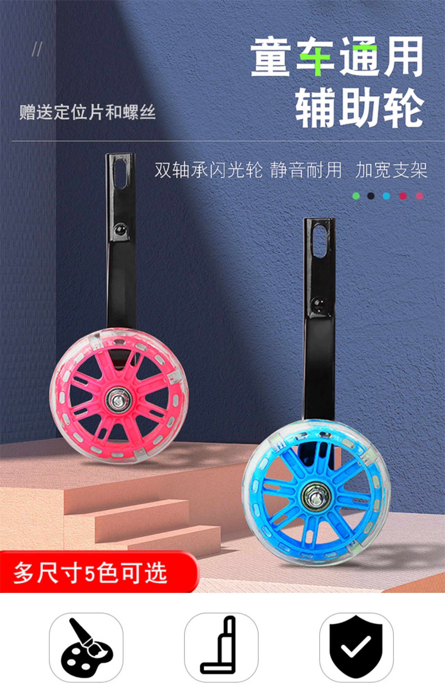 儿童自行车闪光辅助轮通用12/14/16/18/20寸小孩单车小轮童车配件