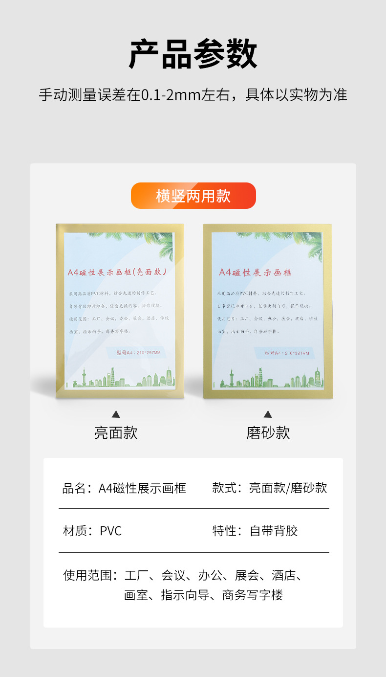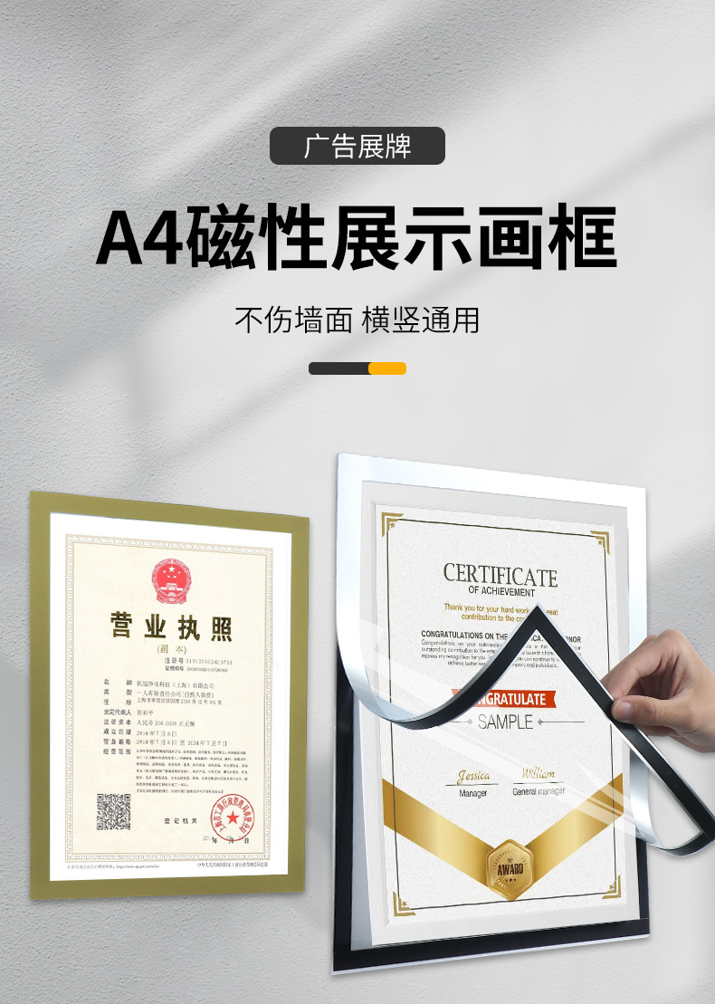 a4磁性展示贴透明相框个体户营业执照保护套软磁贴磁力文件框海报
