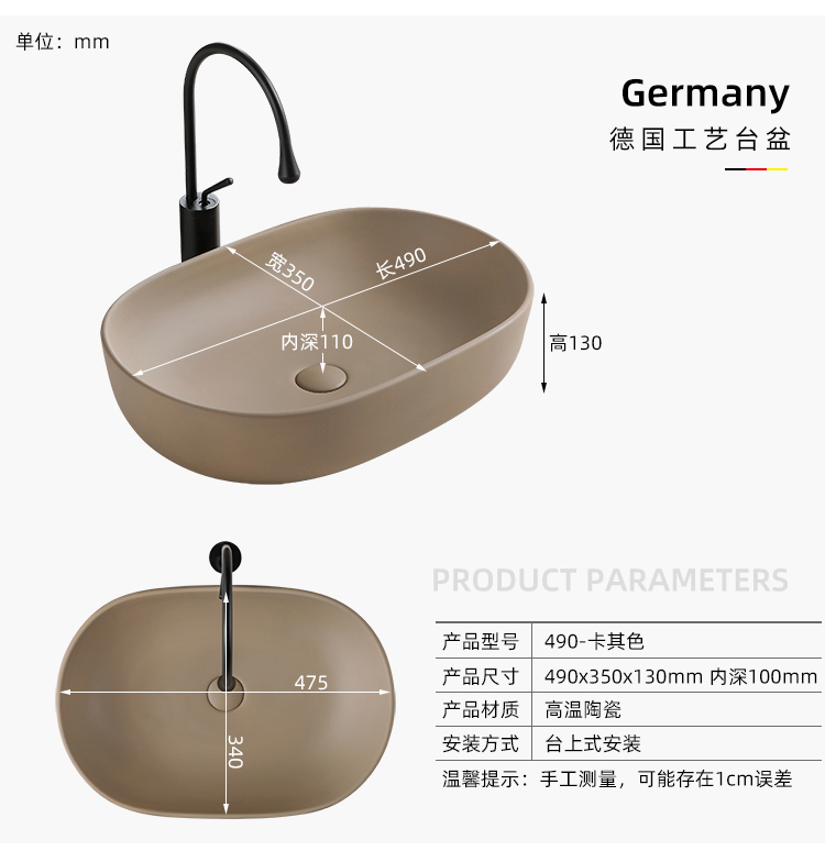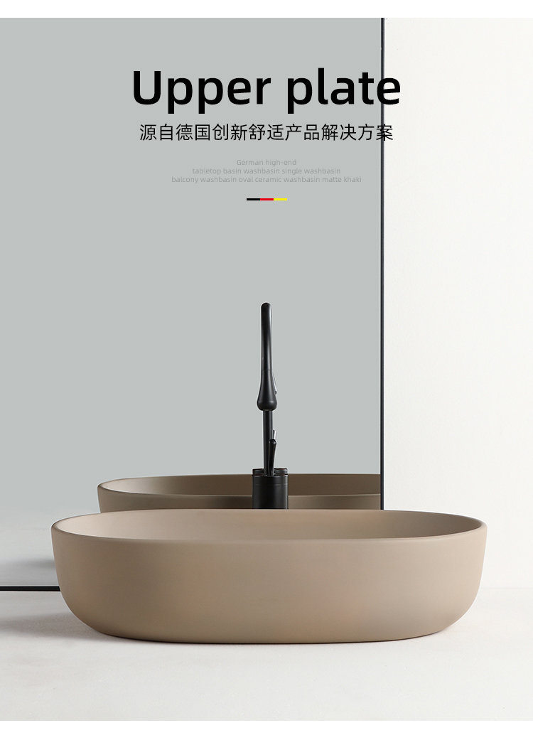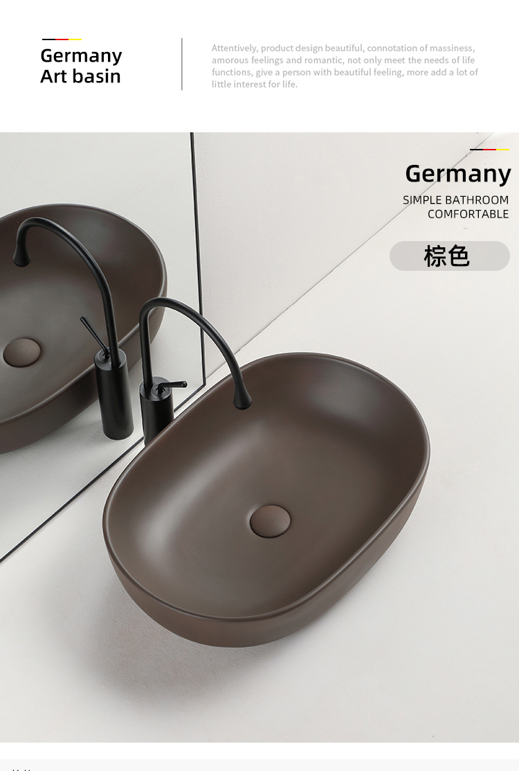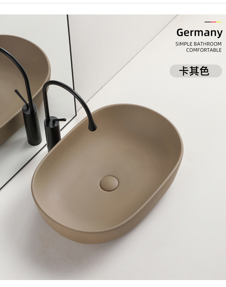 卫生间台上盆陶瓷洗漱脸盆台盆阳台洗手盆面盆卡其棕色椭圆形家用