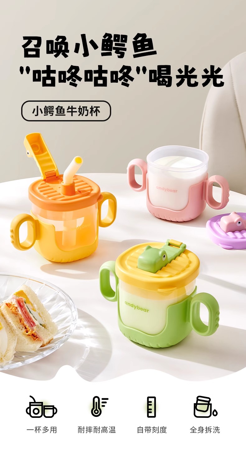 儿童水杯牛奶杯米糊汤刻度吸管水杯婴幼儿宝宝学直饮喝水杯子专用