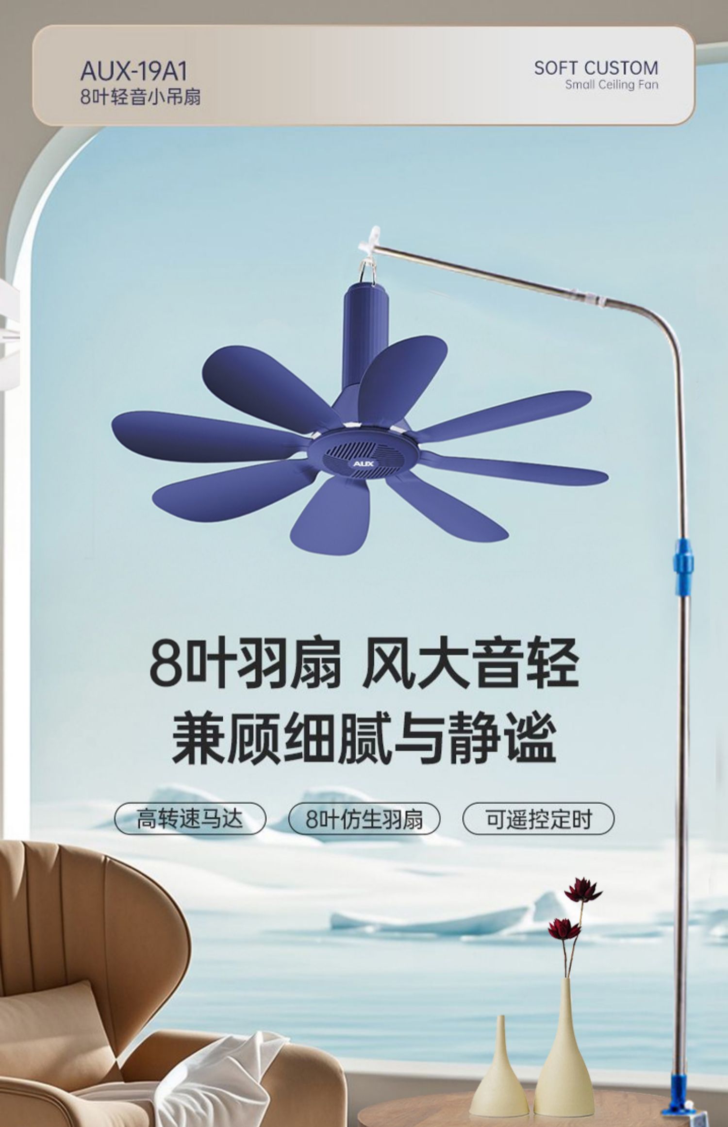 奥克斯新款小吊扇家用迷你电风扇学生宿舍蚊帐专用大风力风扇吊挂