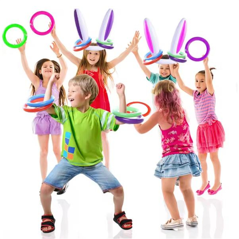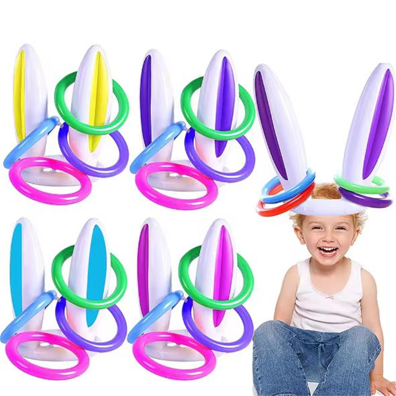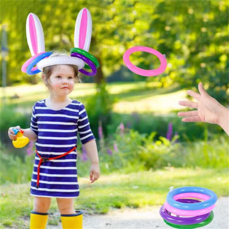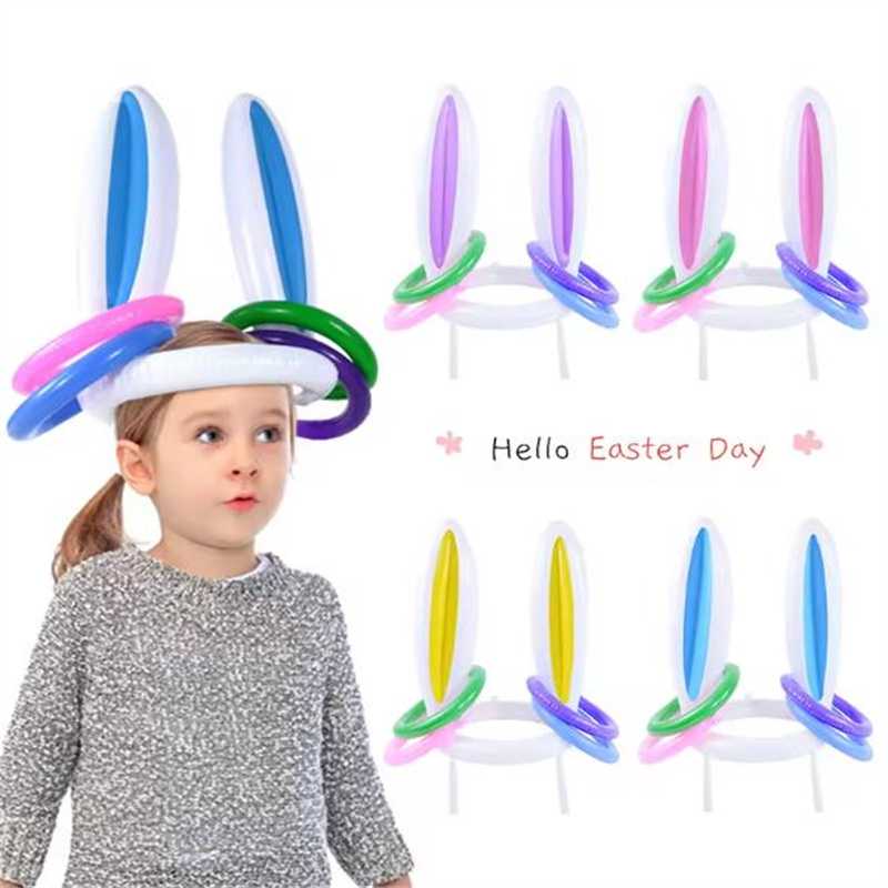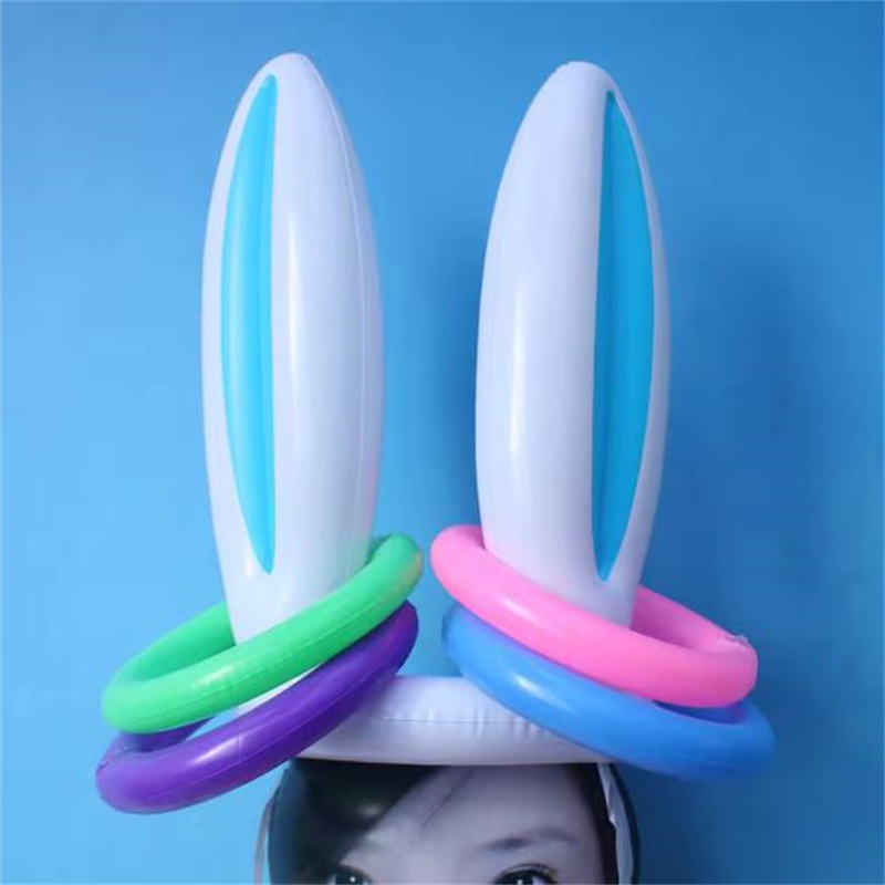 复活节兔子耳朵套圈游戏儿童亲子互动投掷充气套圈玩具兔子头帽子