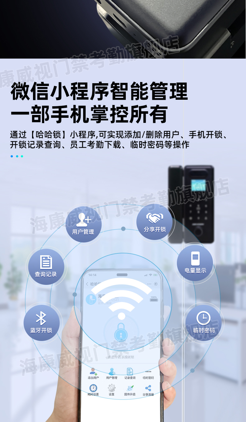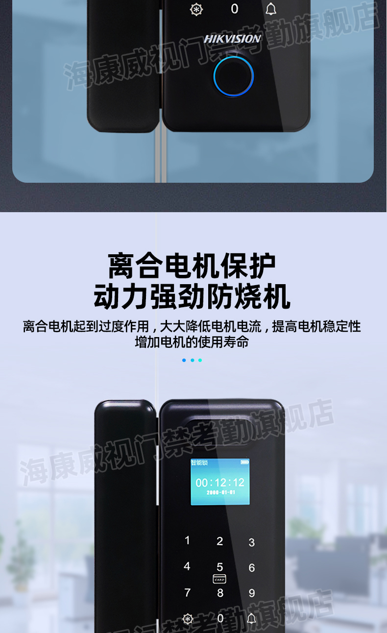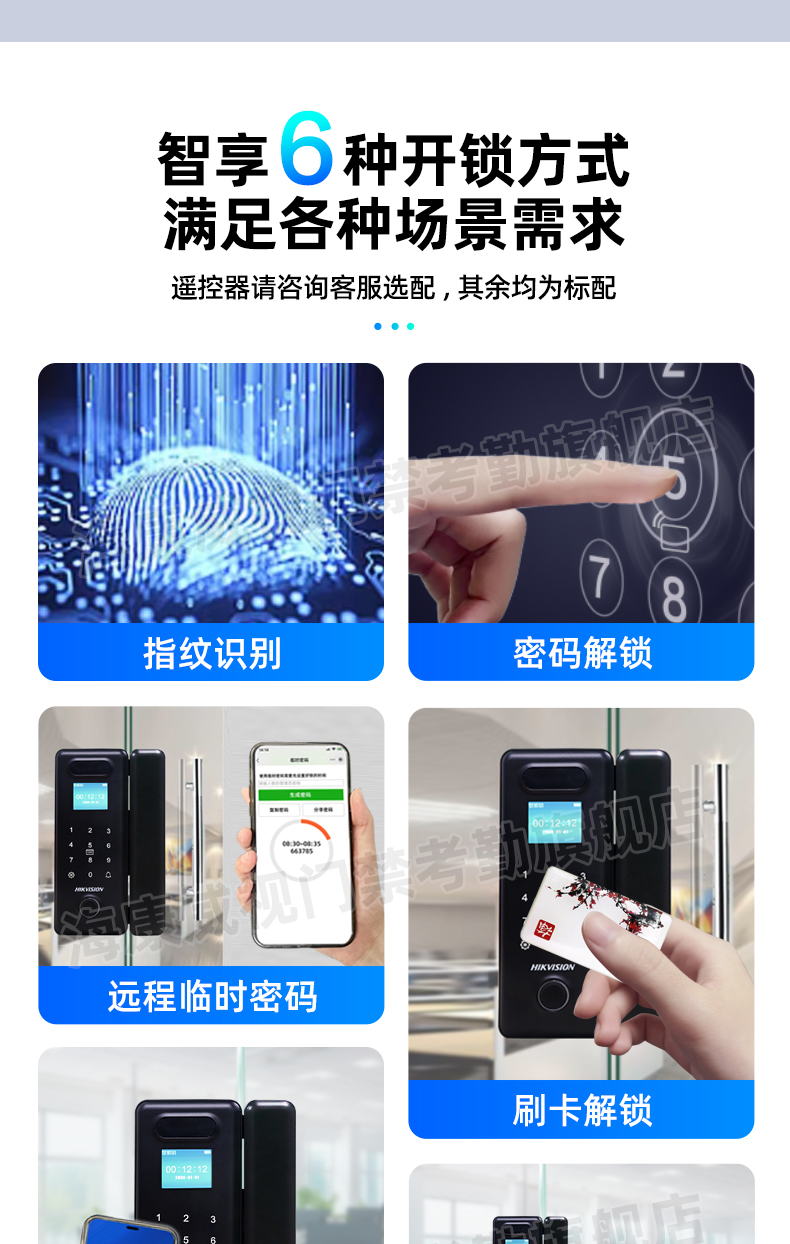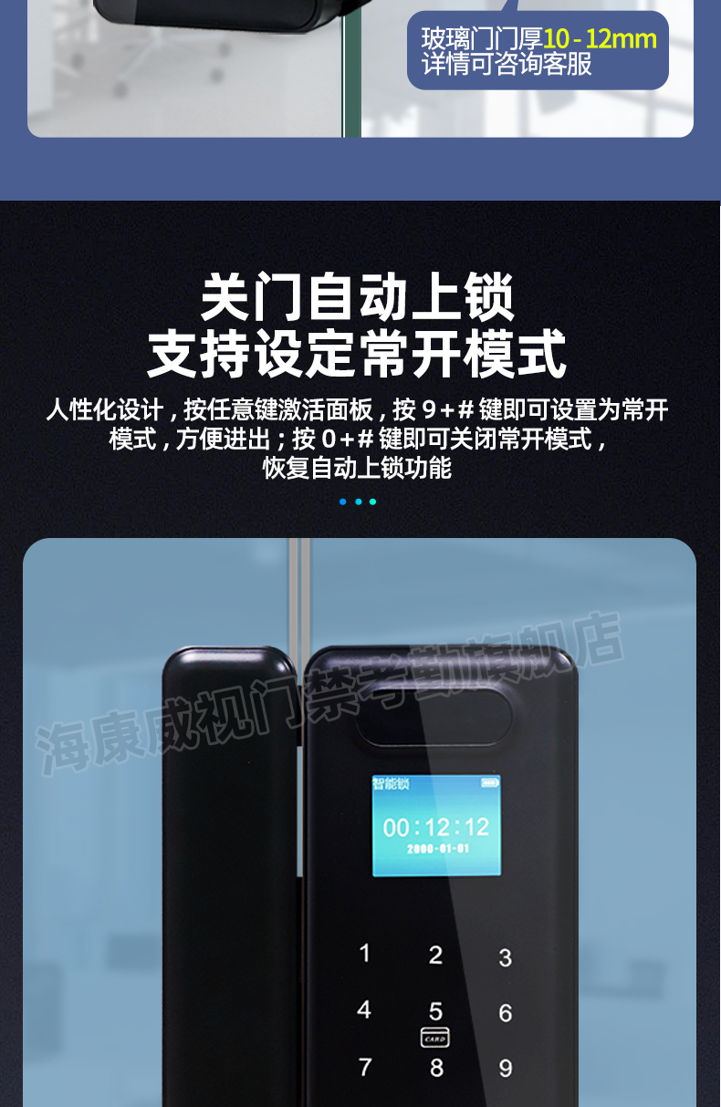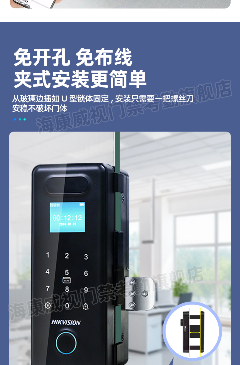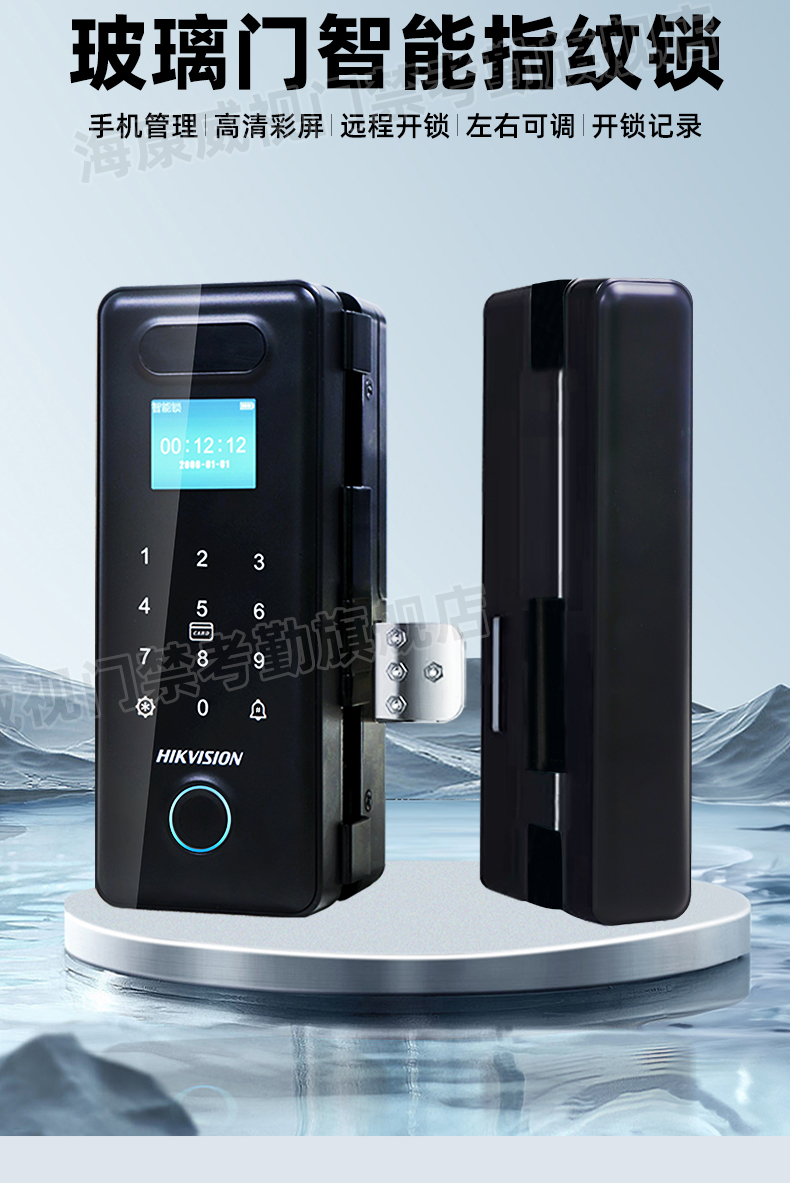 海康威视玻璃门密码锁免开孔无框单门双门办公室指纹锁电子智能锁
