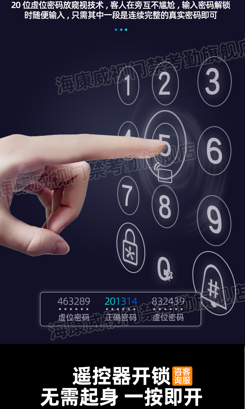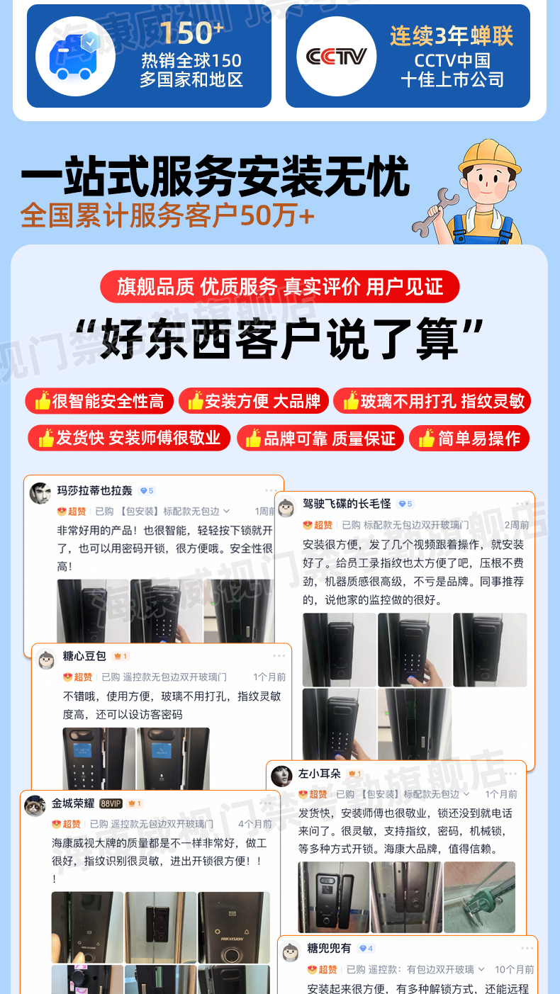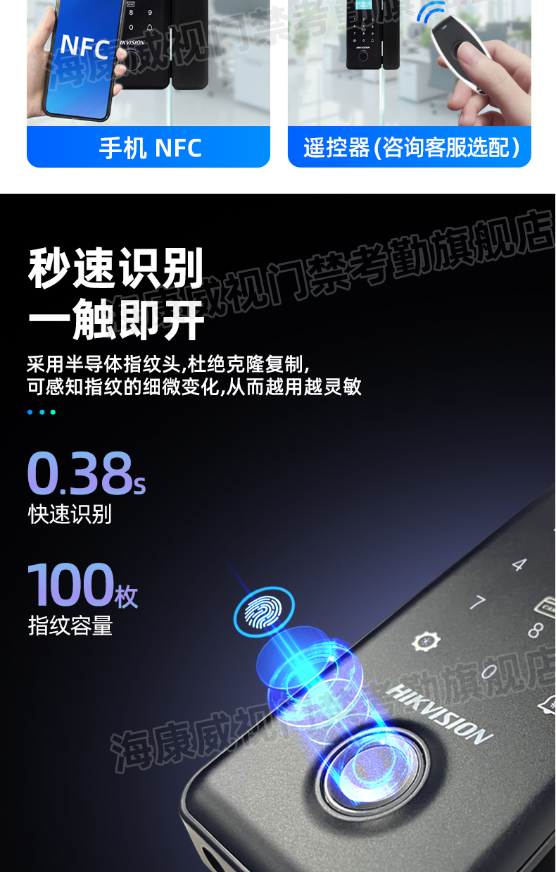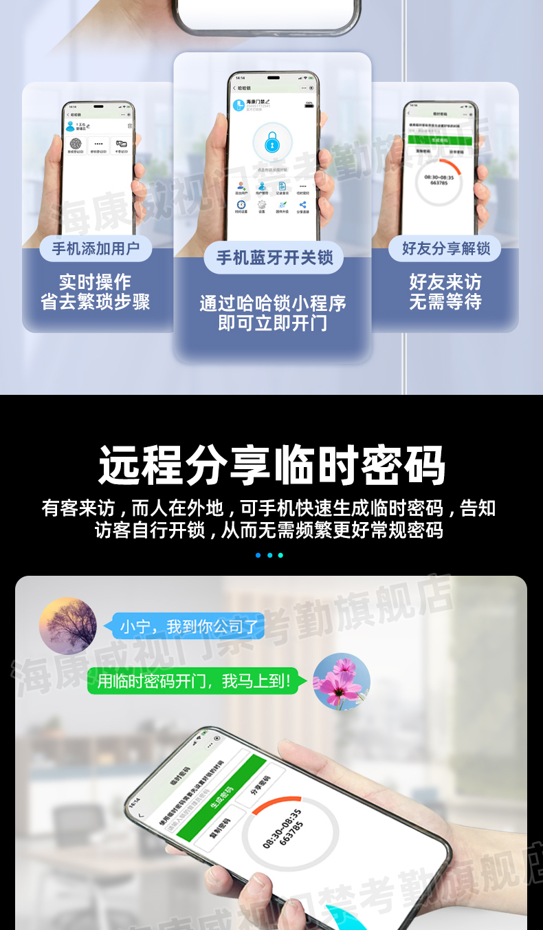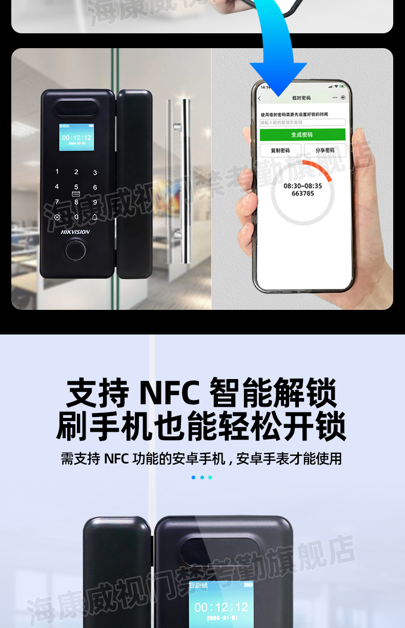 海康威视玻璃门密码锁免开孔无框单门双门办公室指纹锁电子智能锁