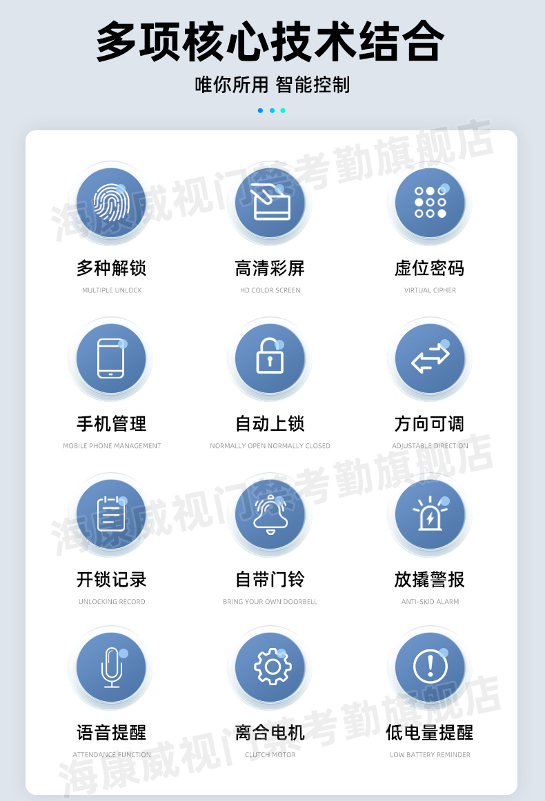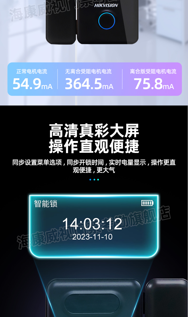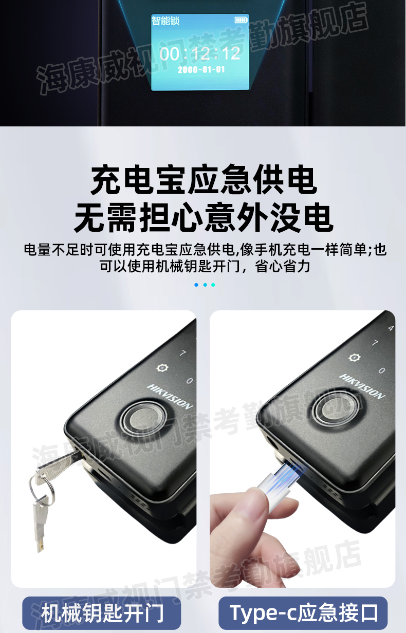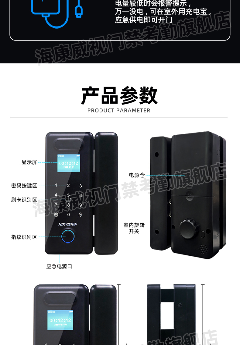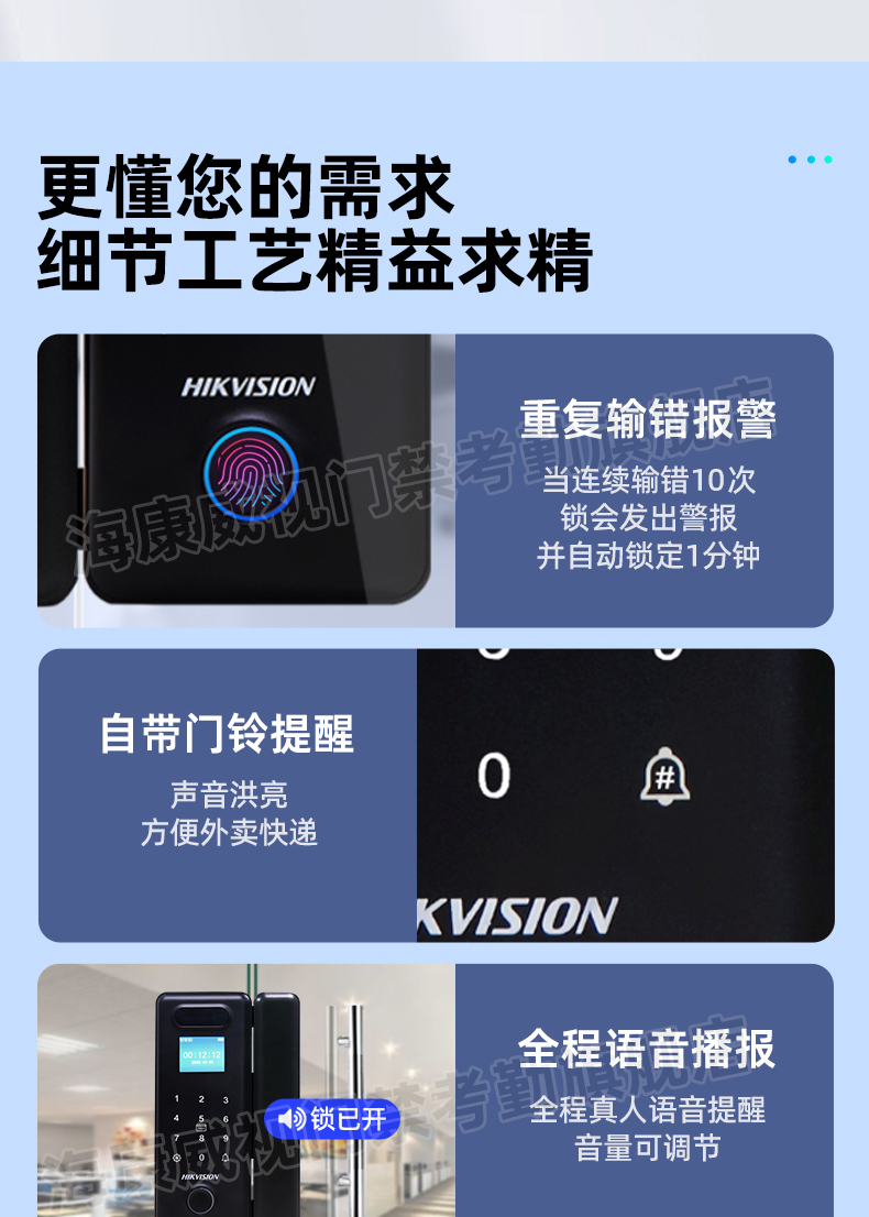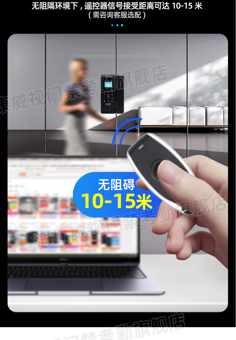 海康威视玻璃门密码锁免开孔无框单门双门办公室指纹锁电子智能锁
