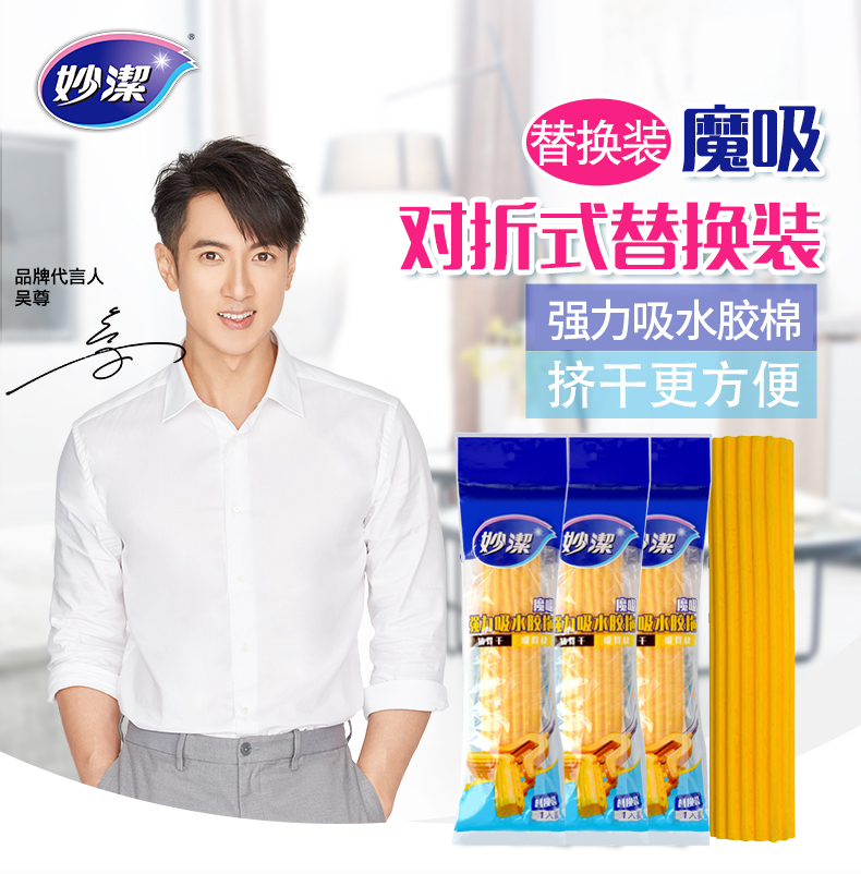 妙洁拖把头对折式替换装原装魔吸海绵头吸水胶棉拖把拖布墩布替换