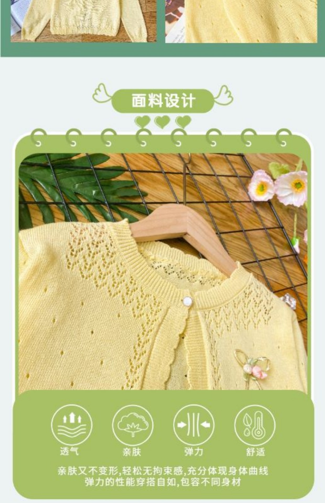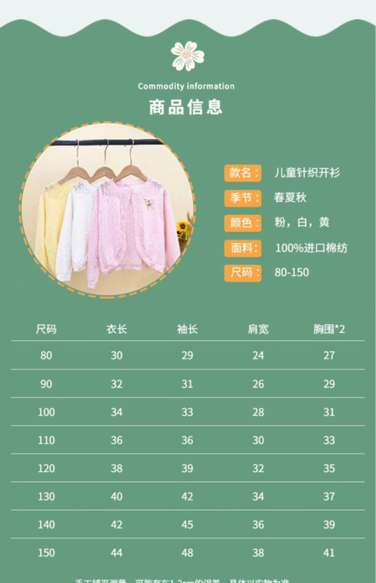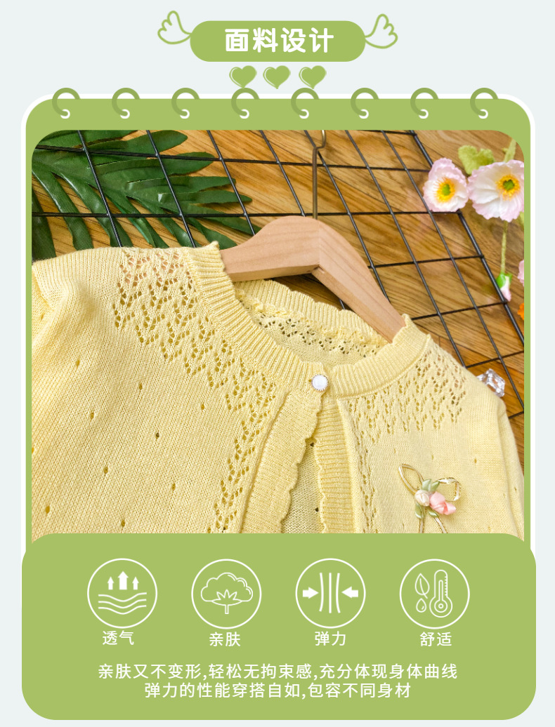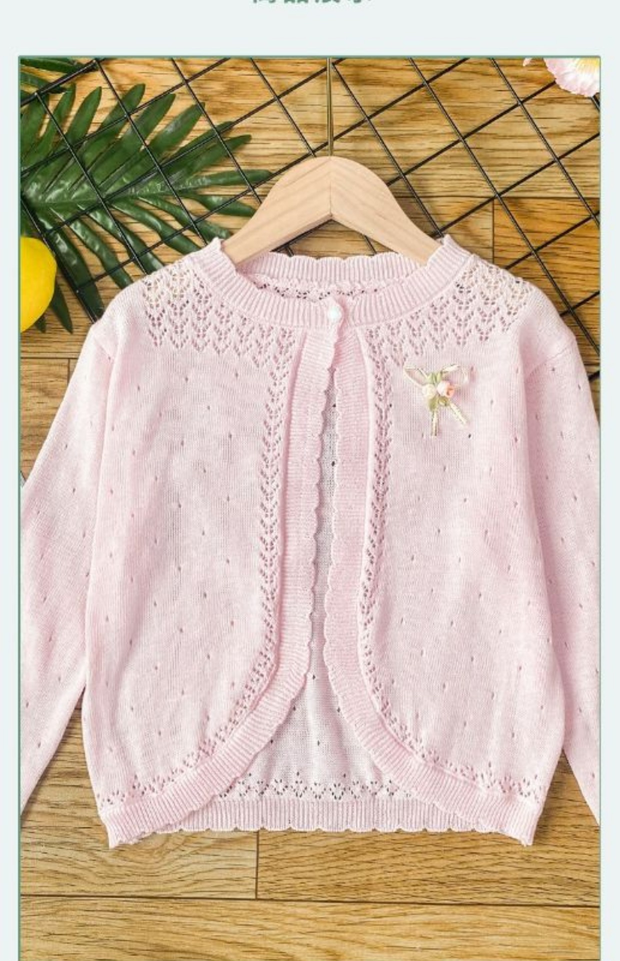 夏季女童薄款针织空调开衫纯棉外搭儿童小坎肩披肩宝宝防晒衣外套