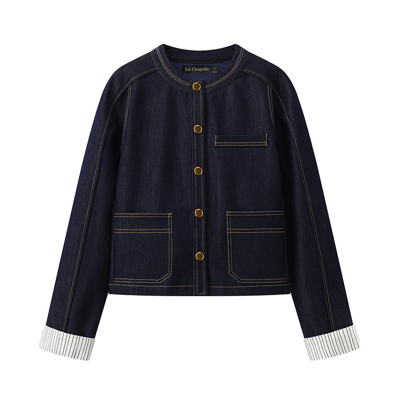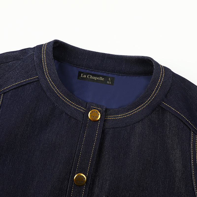 拉夏贝尔/La Chapelle复古仿牛仔外套女春新款圆领宽松夹克上衣