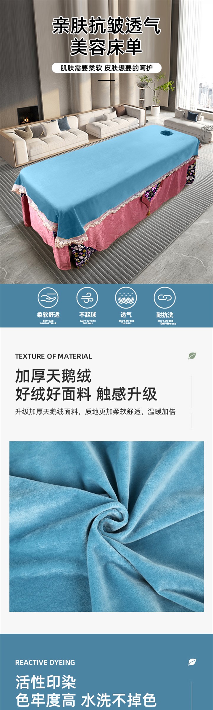 美容床单美容院耐洗抗皱水晶绒蕾丝边带洞U洗头按摩铺床巾