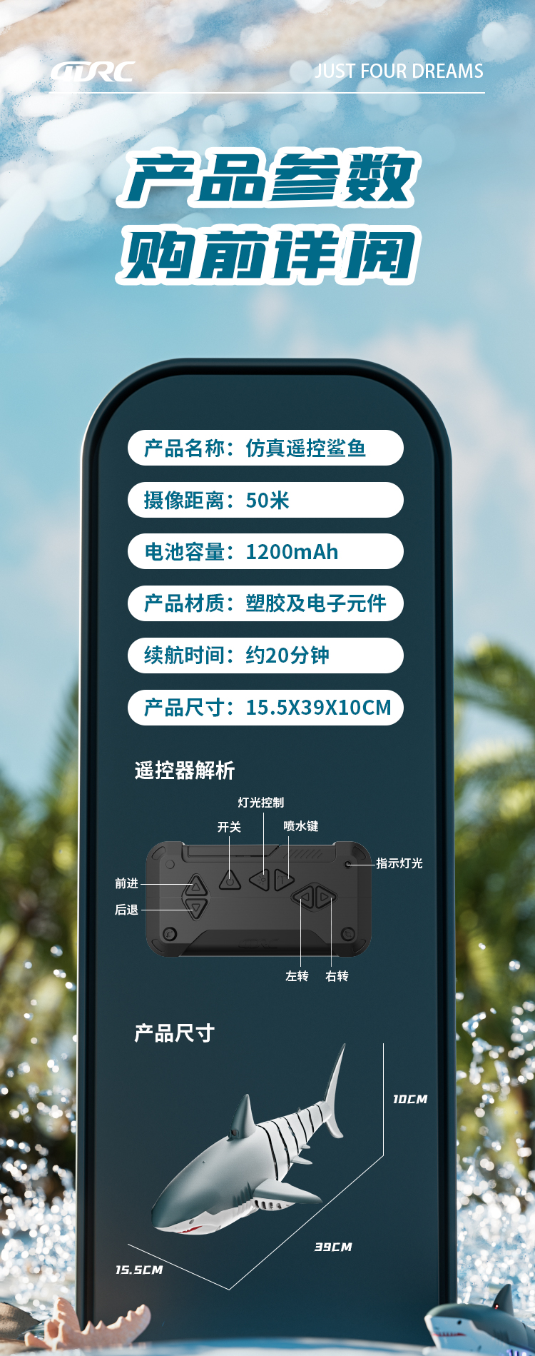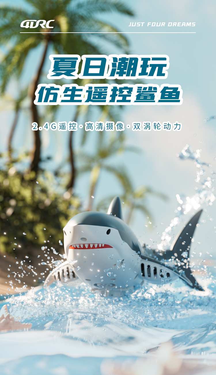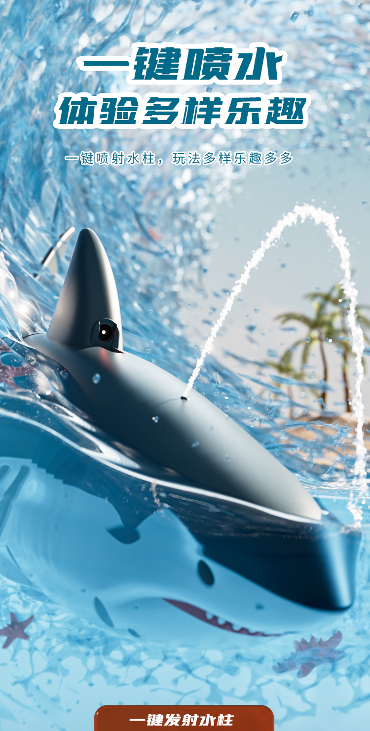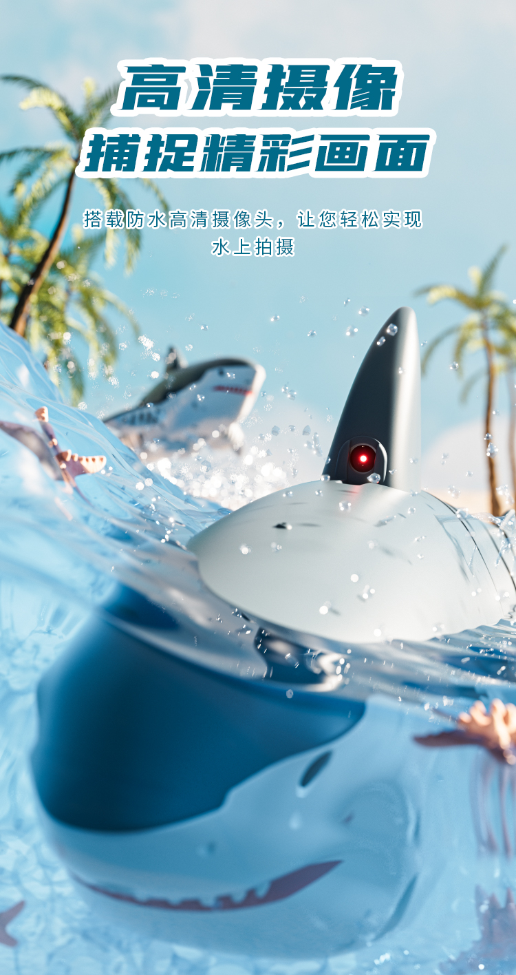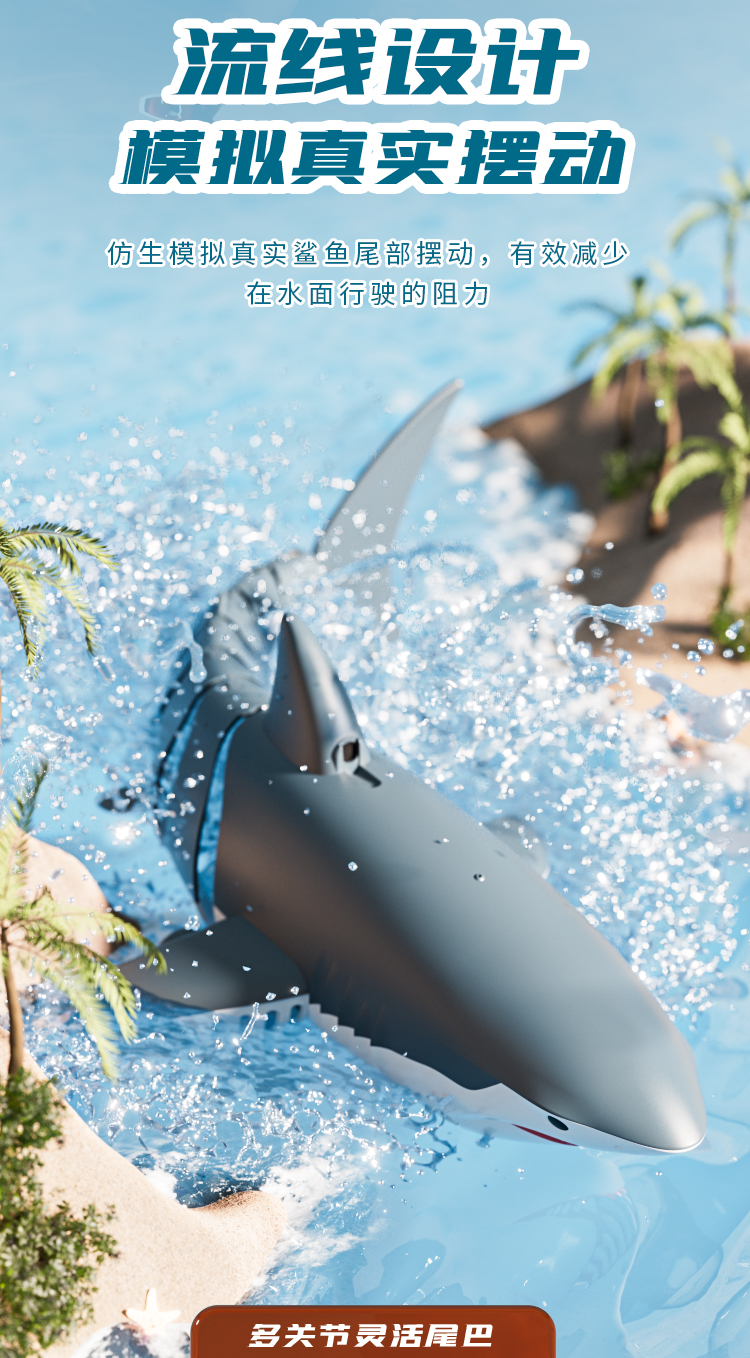 遥控船快艇水上游艇仿真鲨鱼会摇摆船模电动玩具男孩学生生日礼物