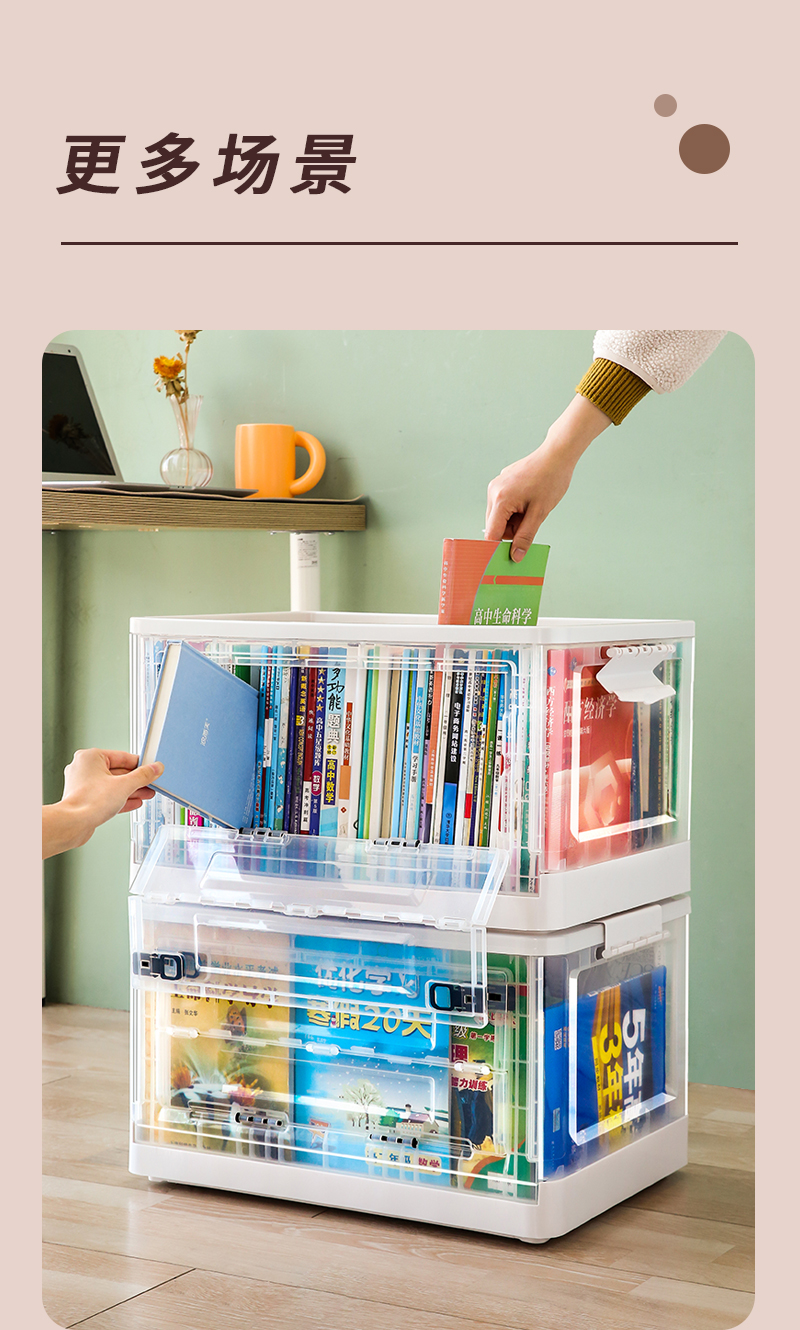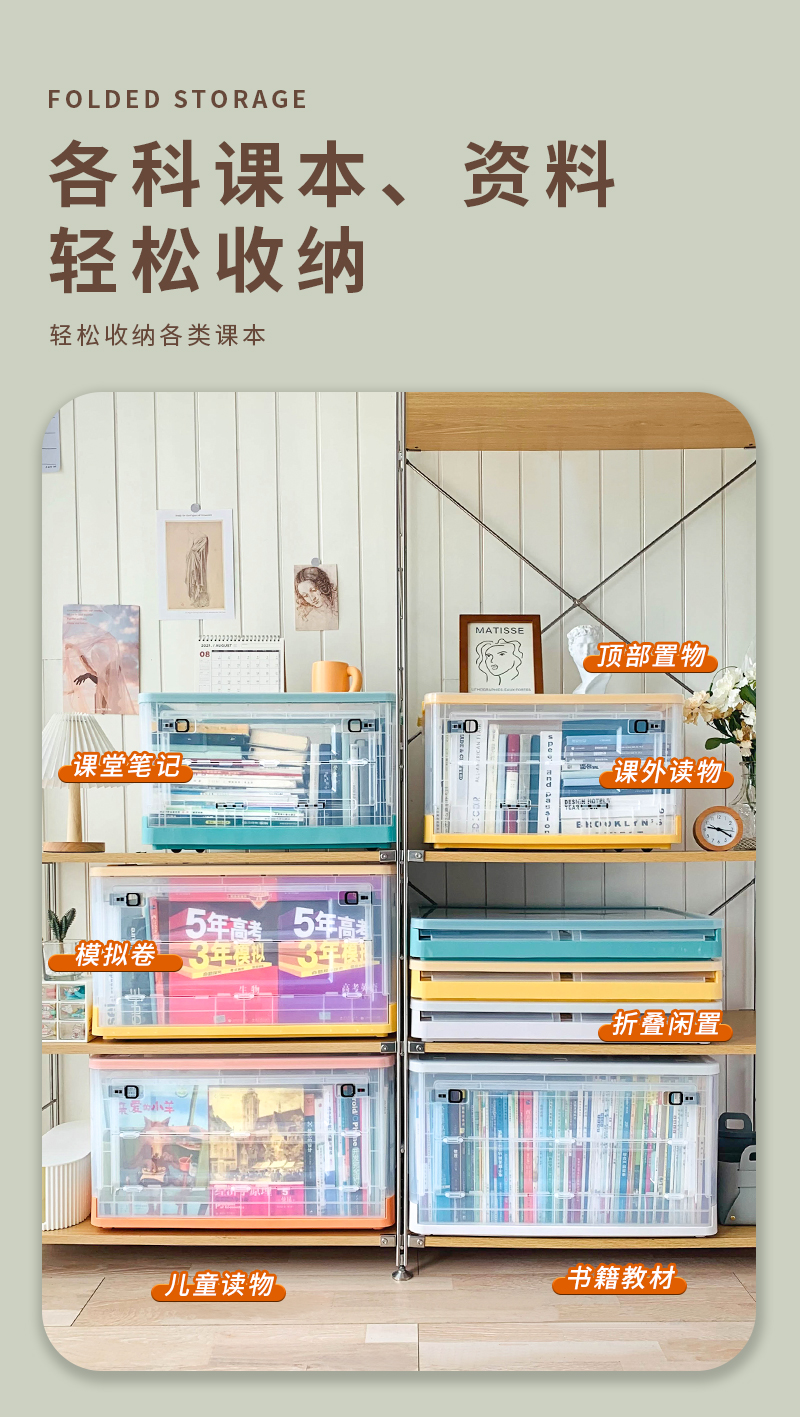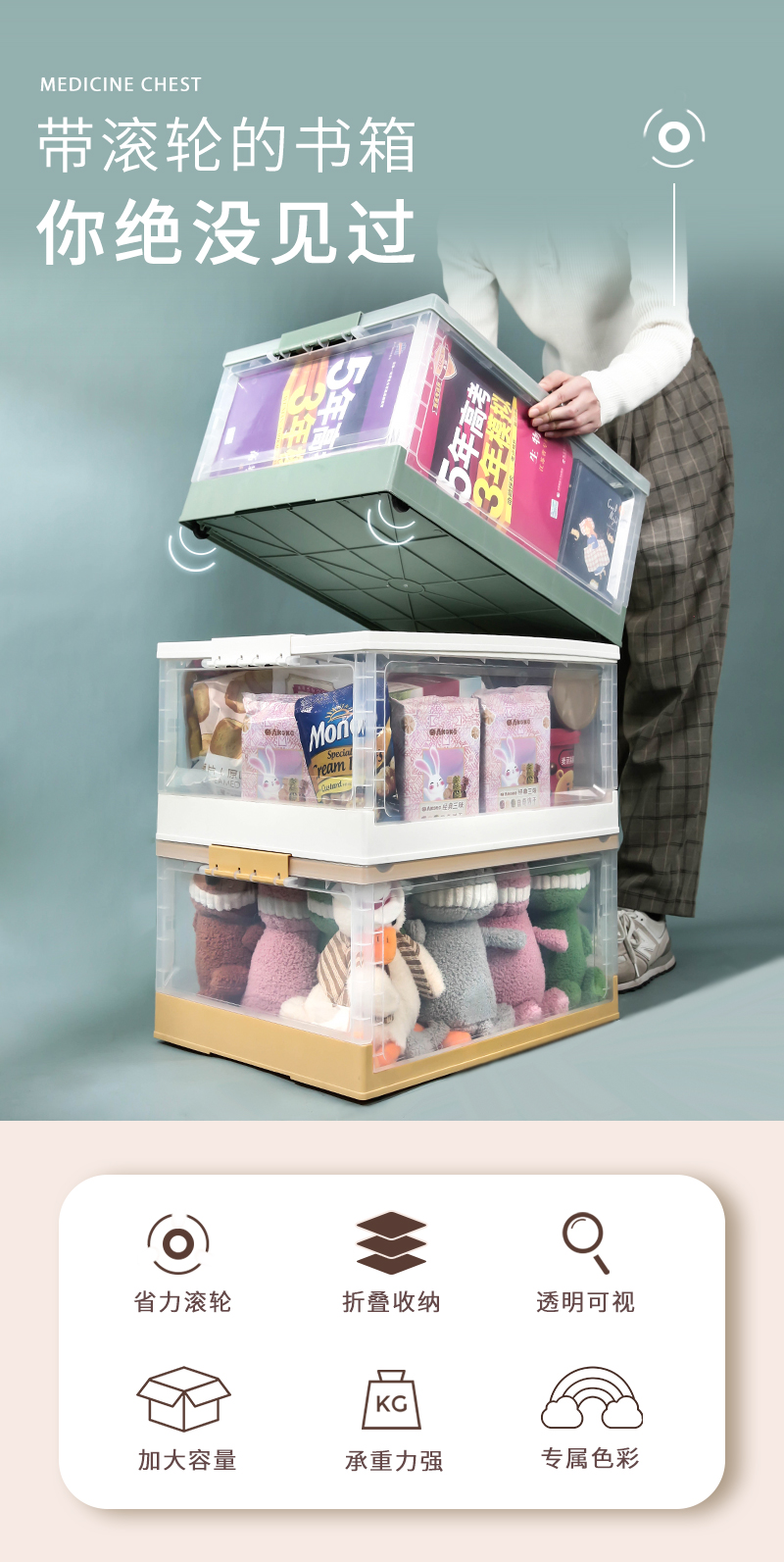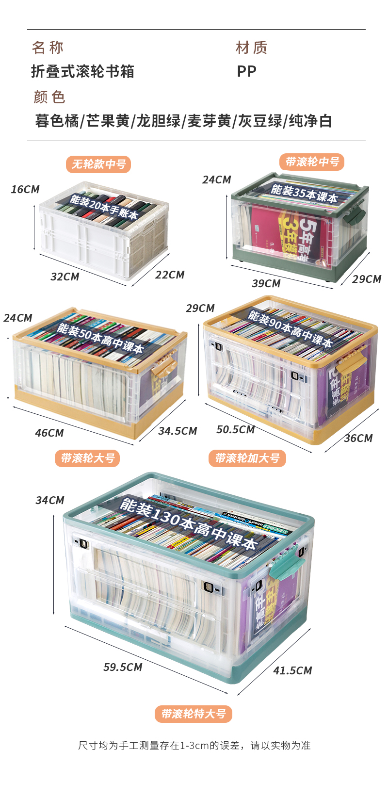带轮书本收纳箱透明带滑轮书箱学生高中教室用书籍整理箱子装书盒