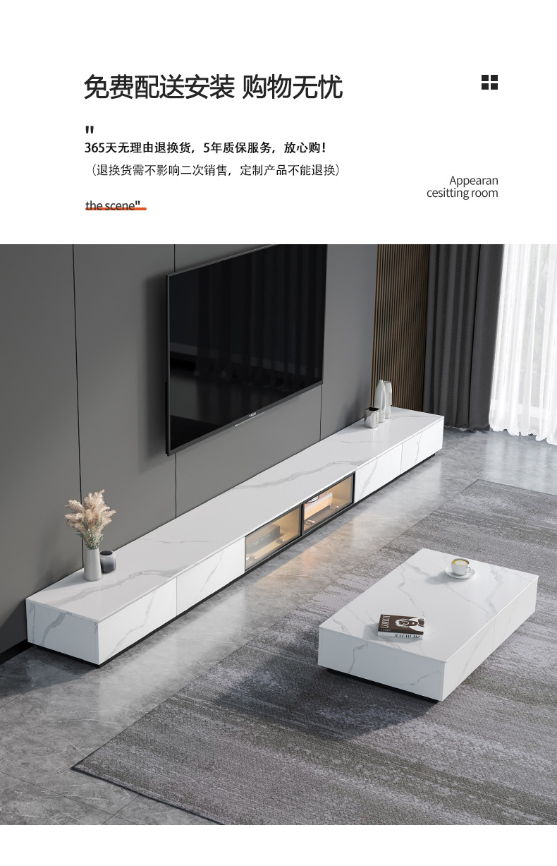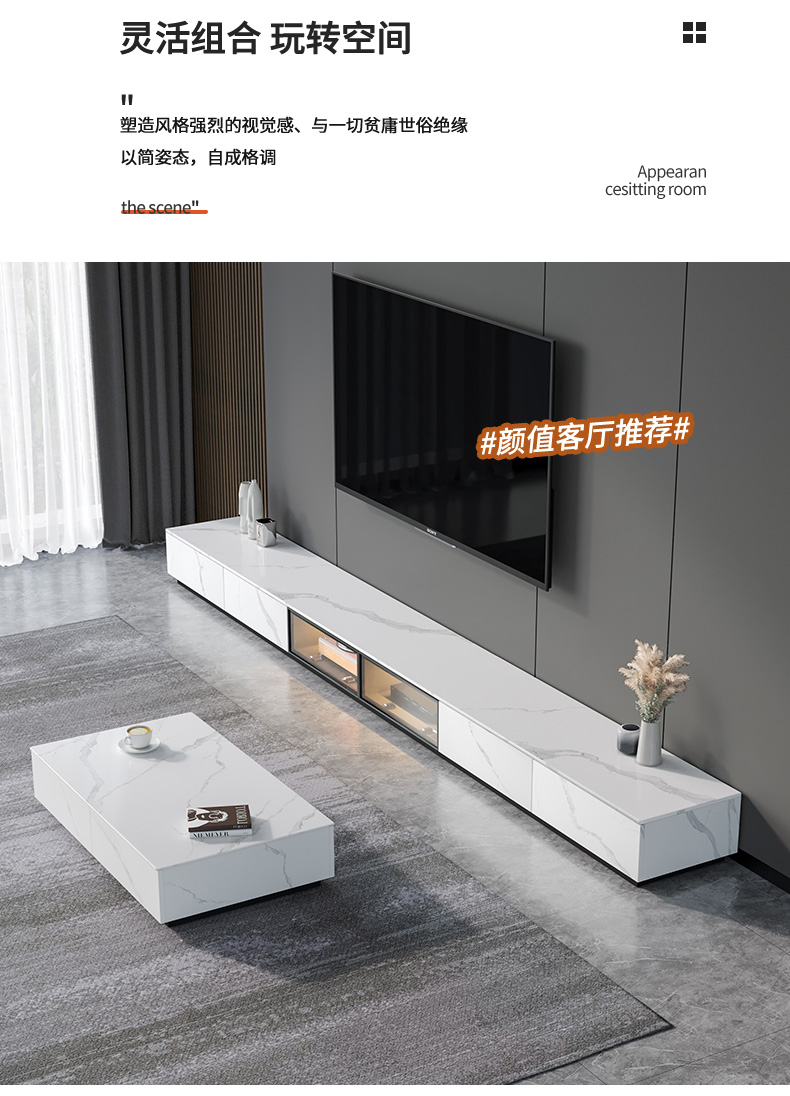 岩板地台电视柜简约现代茶几组合客厅小户型新款地柜轻奢电视机柜