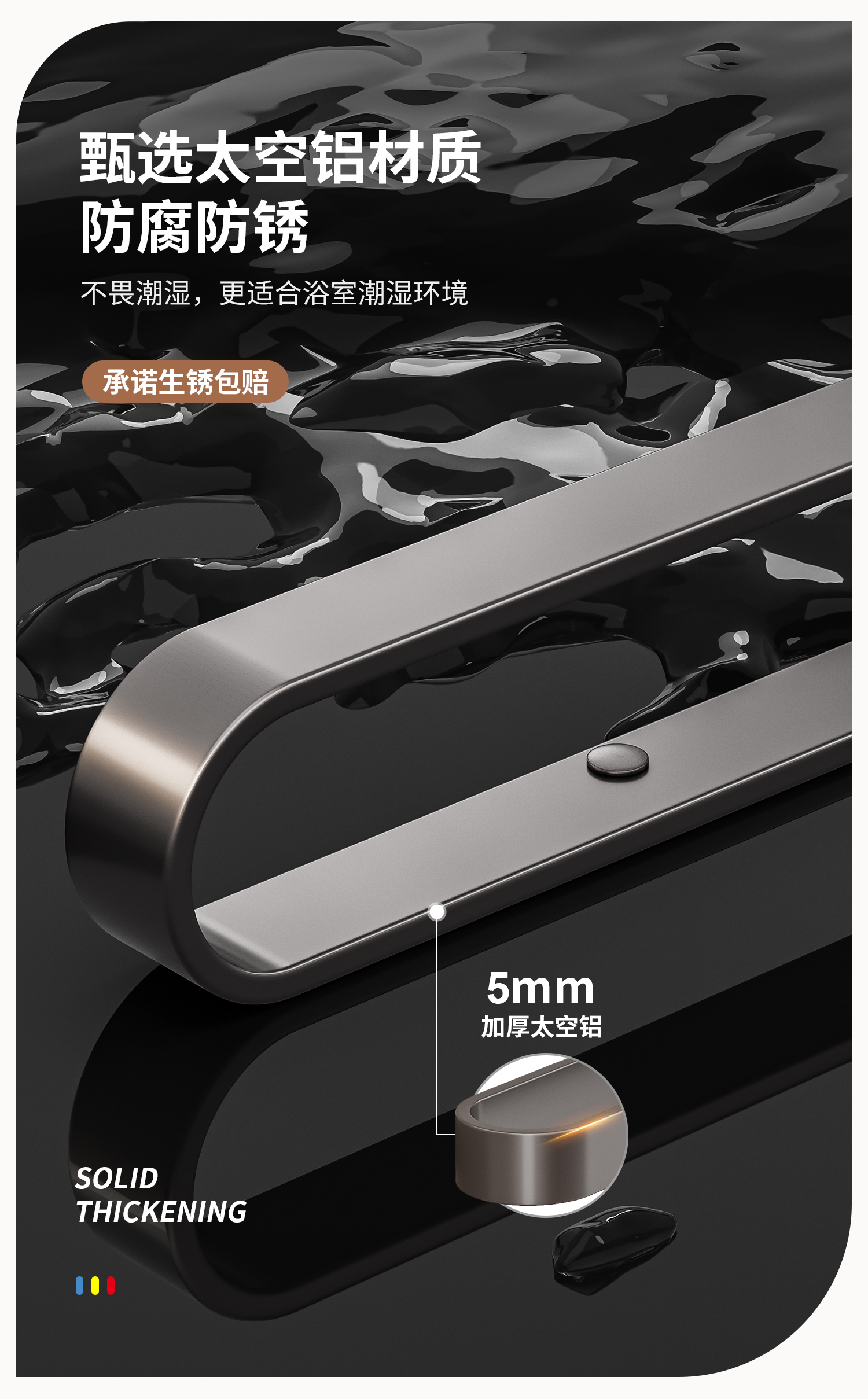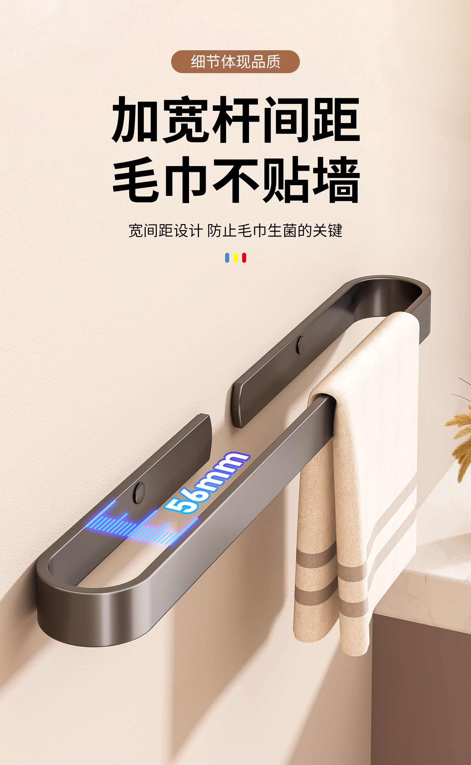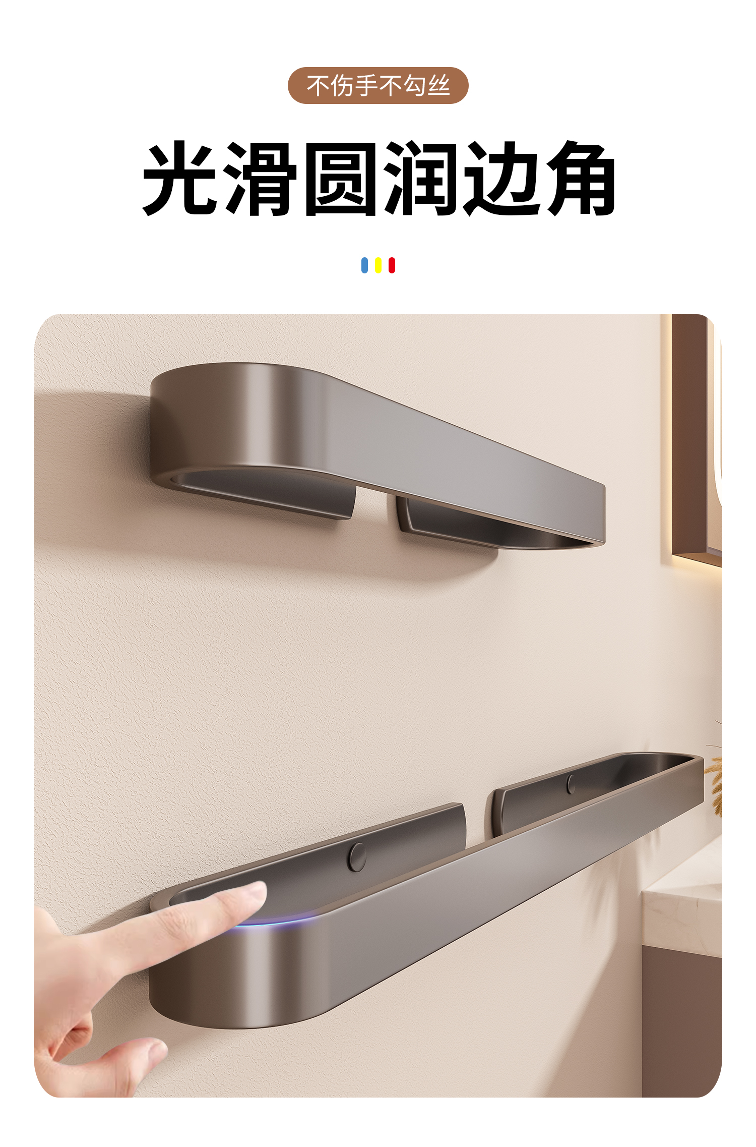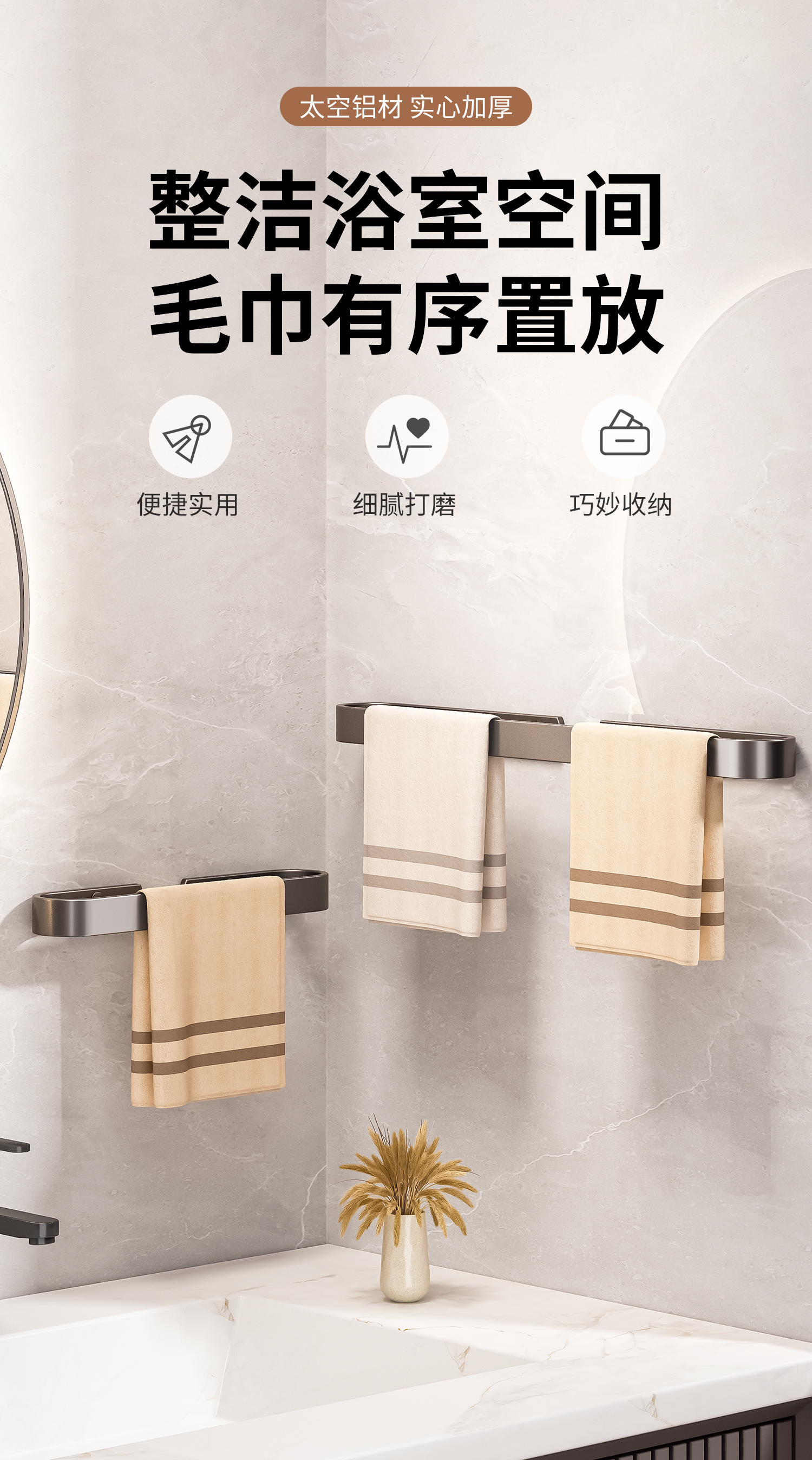 卫生间毛巾架免打孔太空铝加厚浴室厕所免钉卫浴毛巾杆单杆置物架