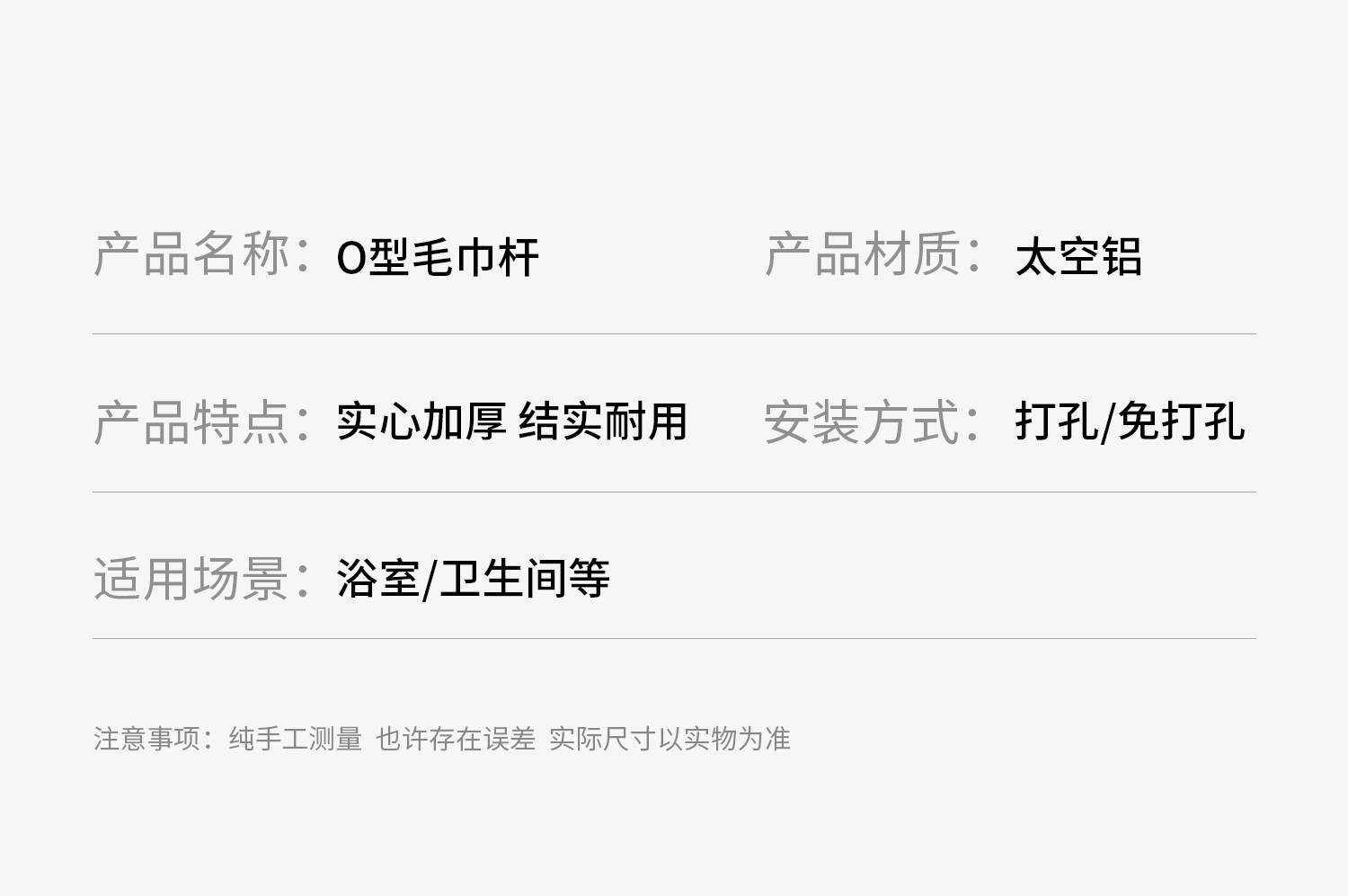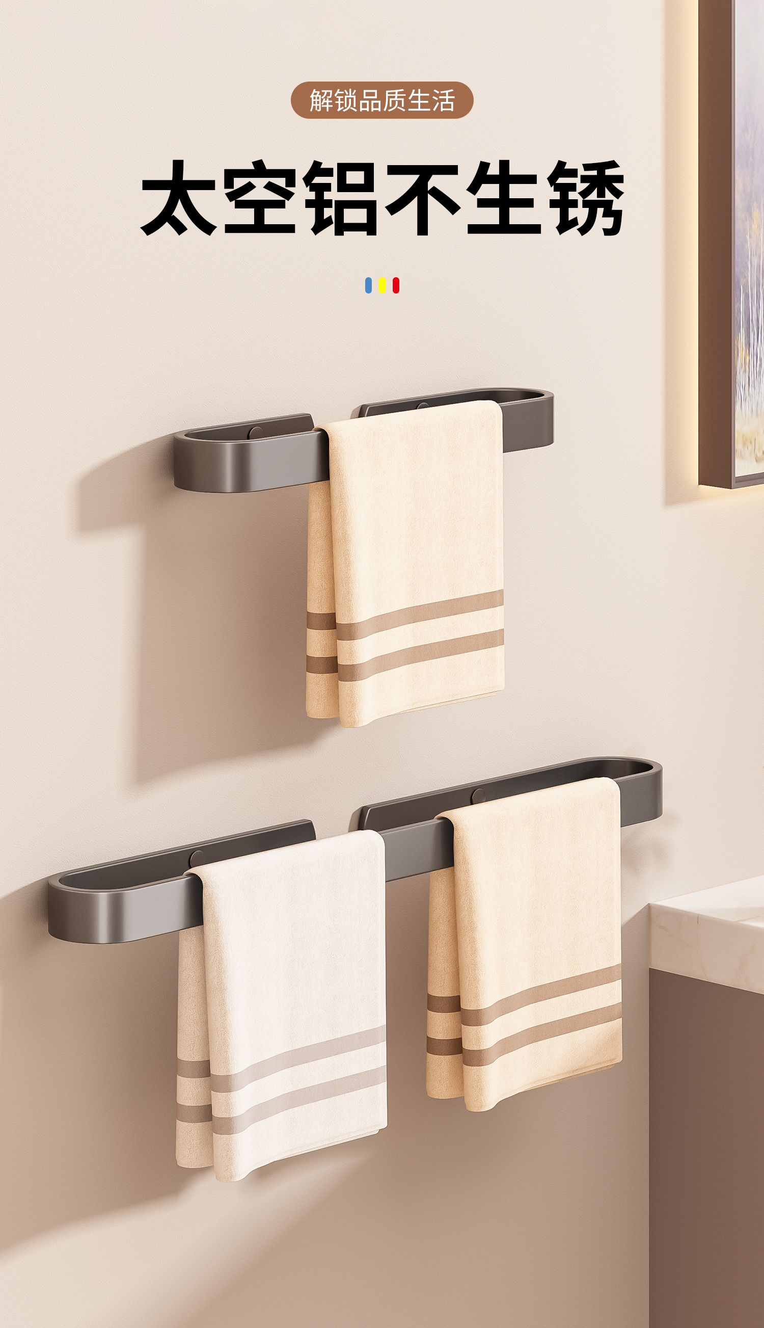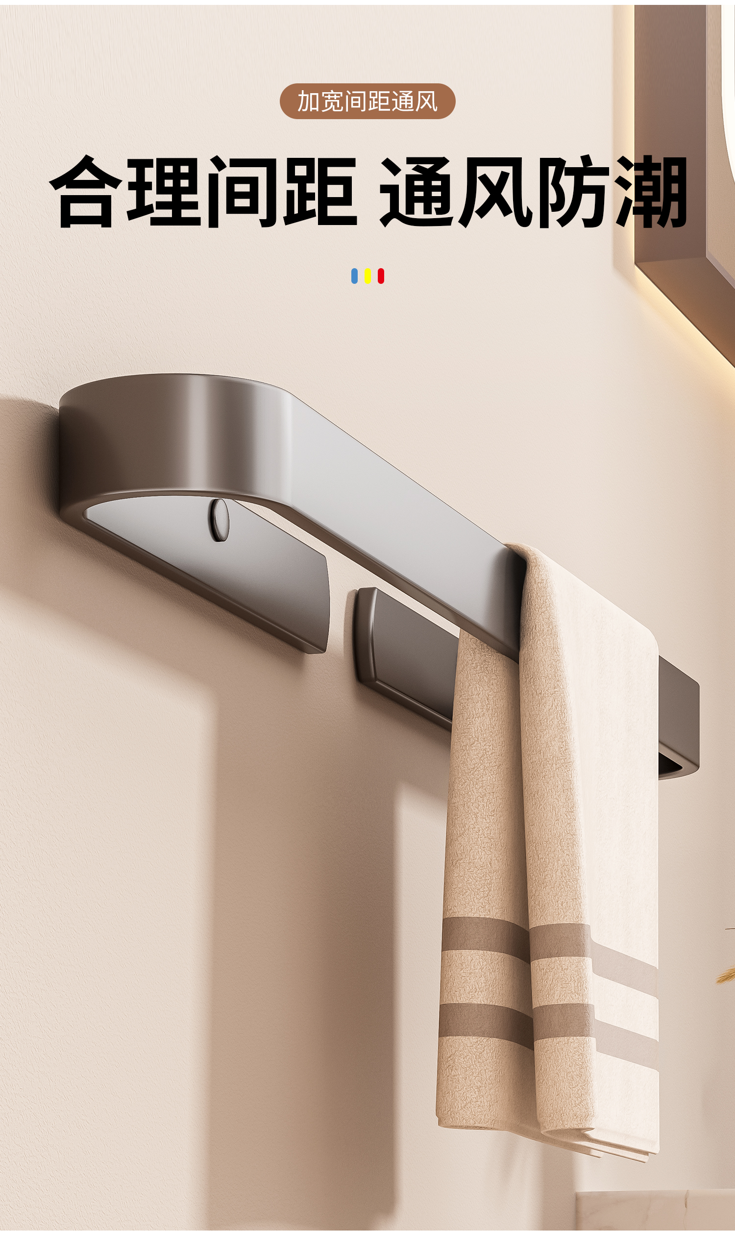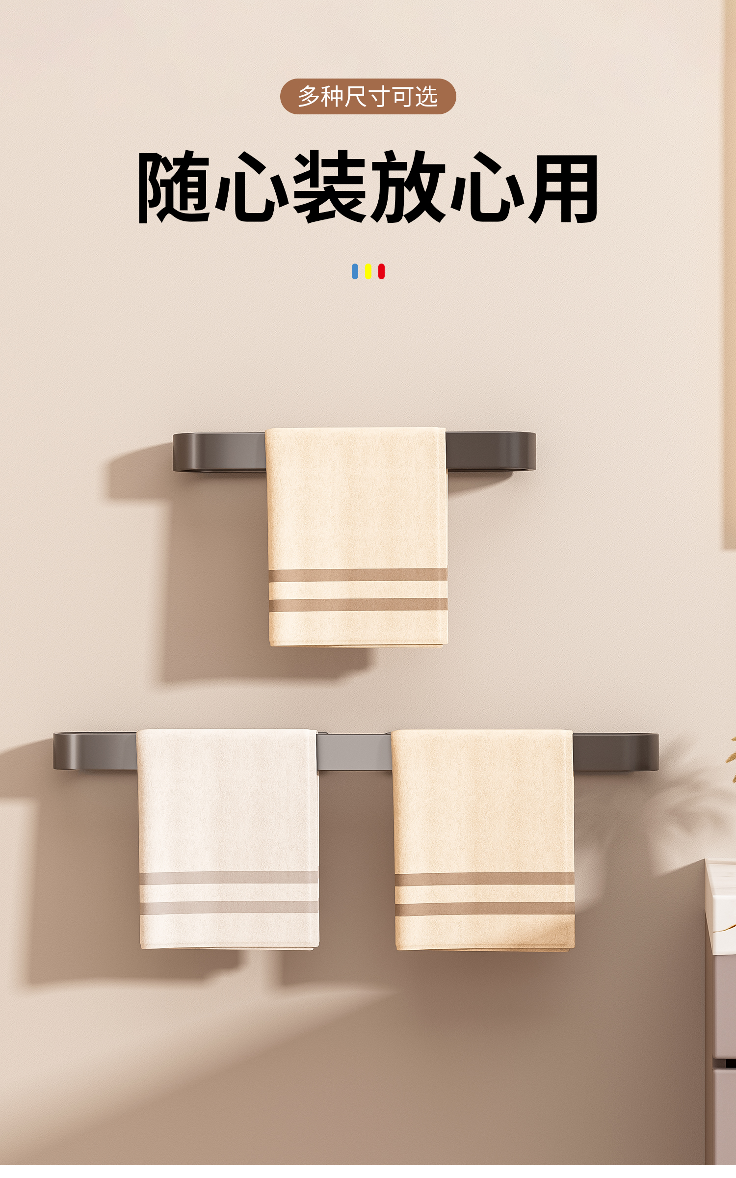 卫生间毛巾架免打孔太空铝加厚浴室厕所免钉卫浴毛巾杆单杆置物架