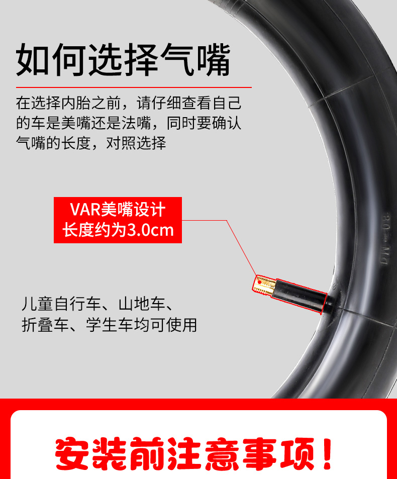 儿童自行车内胎12/14/16/18/20寸轮胎1.75/2.125/2.4童车内胎配件