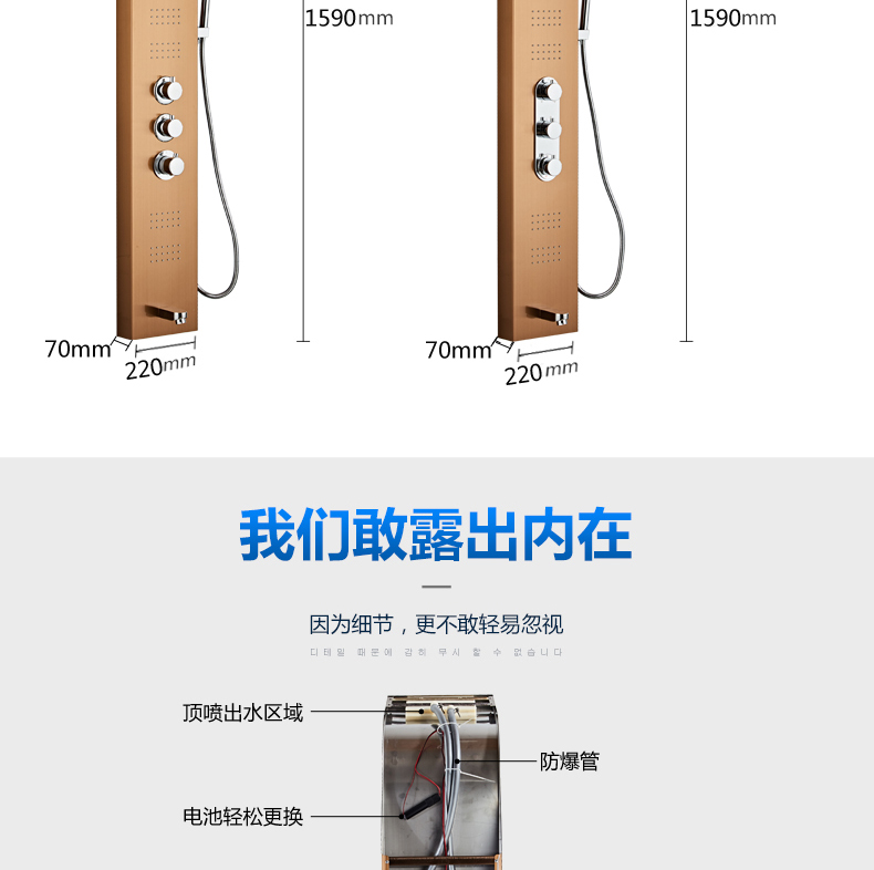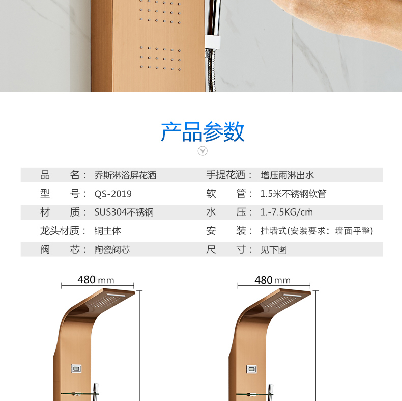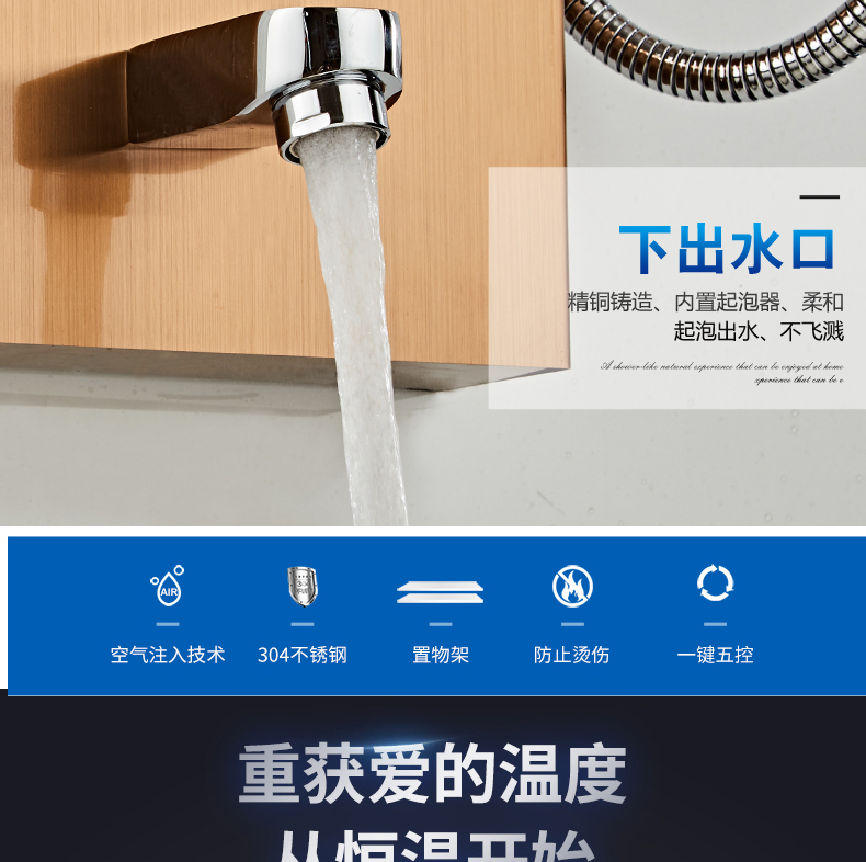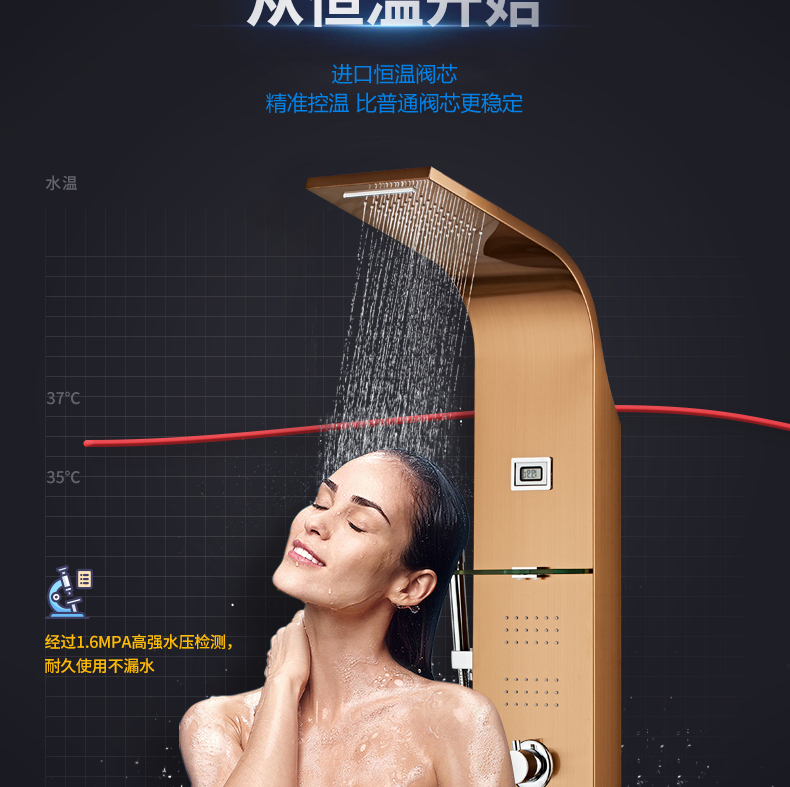 不锈钢智能恒温淋浴屏浴室淋雨沐浴喷头淋浴花洒套装家用淋浴器