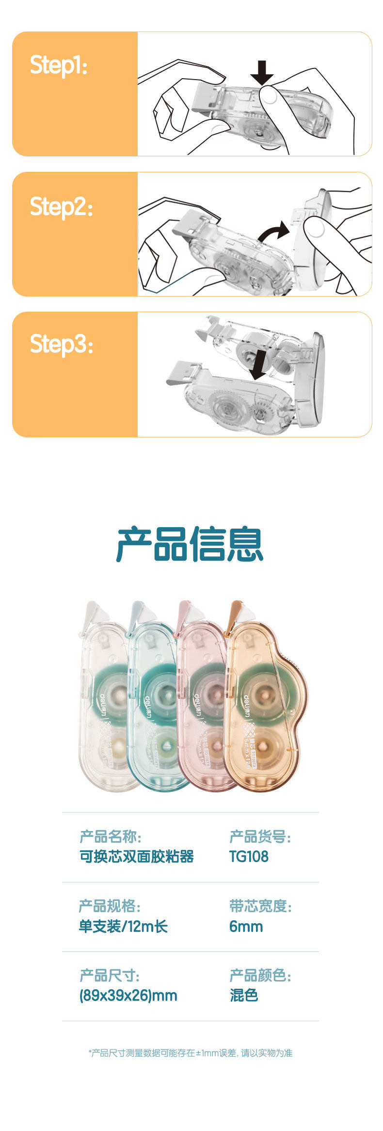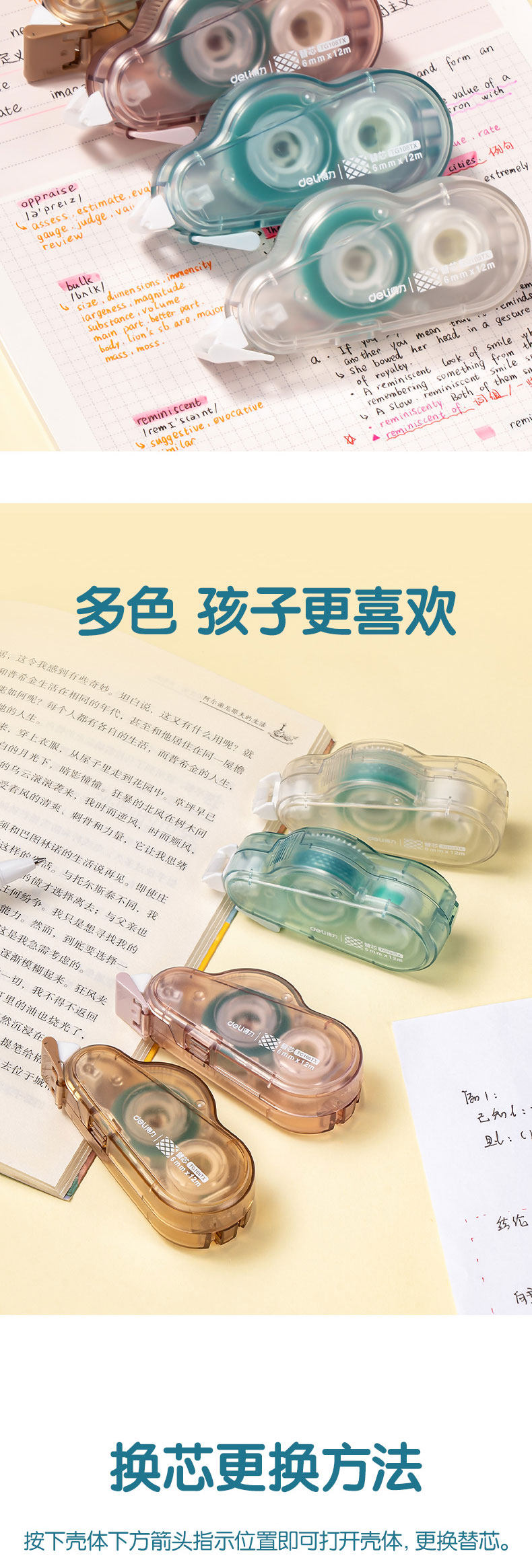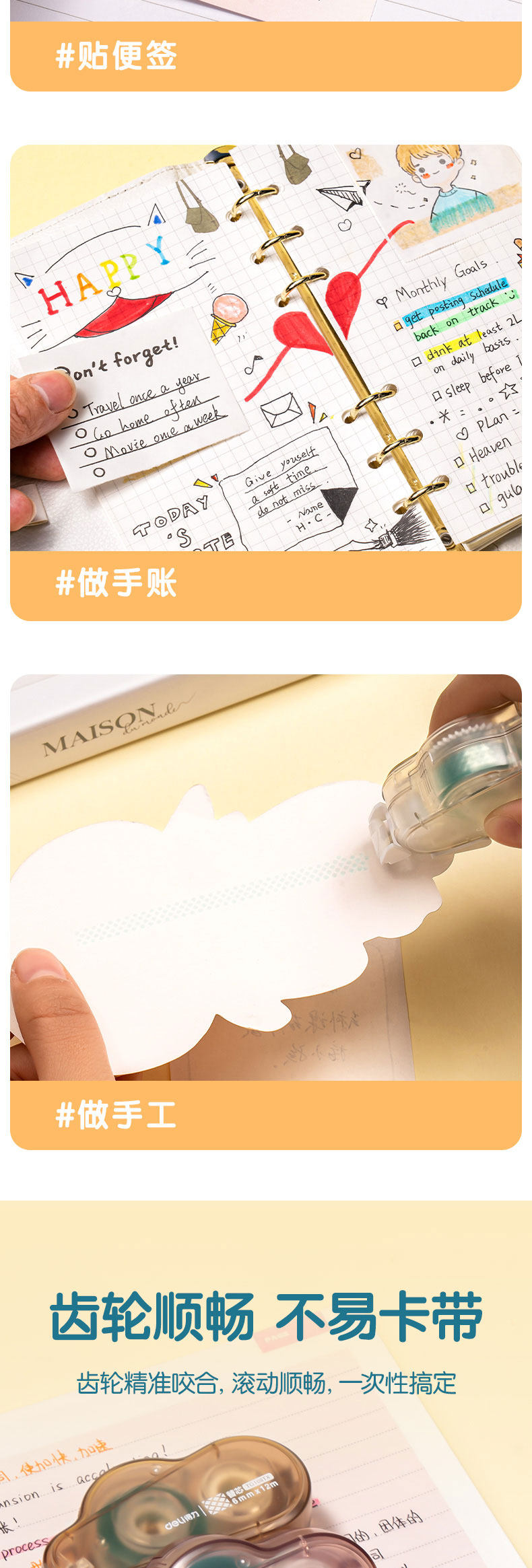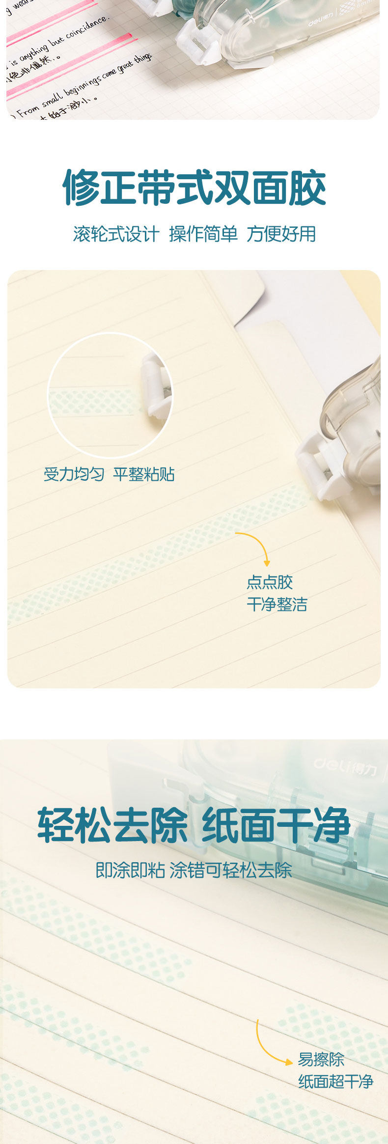 得力点点胶高粘度不留痕修正带式透明双面胶学生用涂改错题粘贴手工贴纸手账胶便携多功能点状胶实惠装