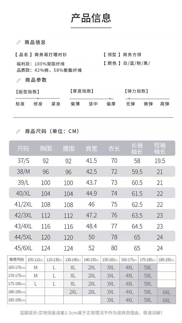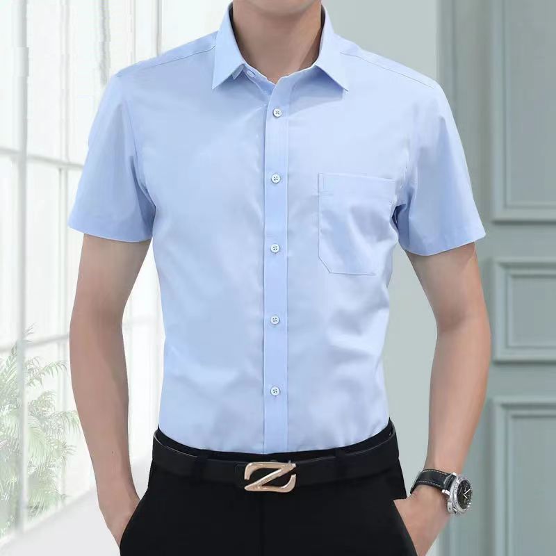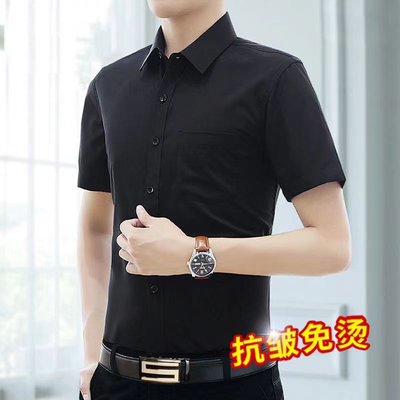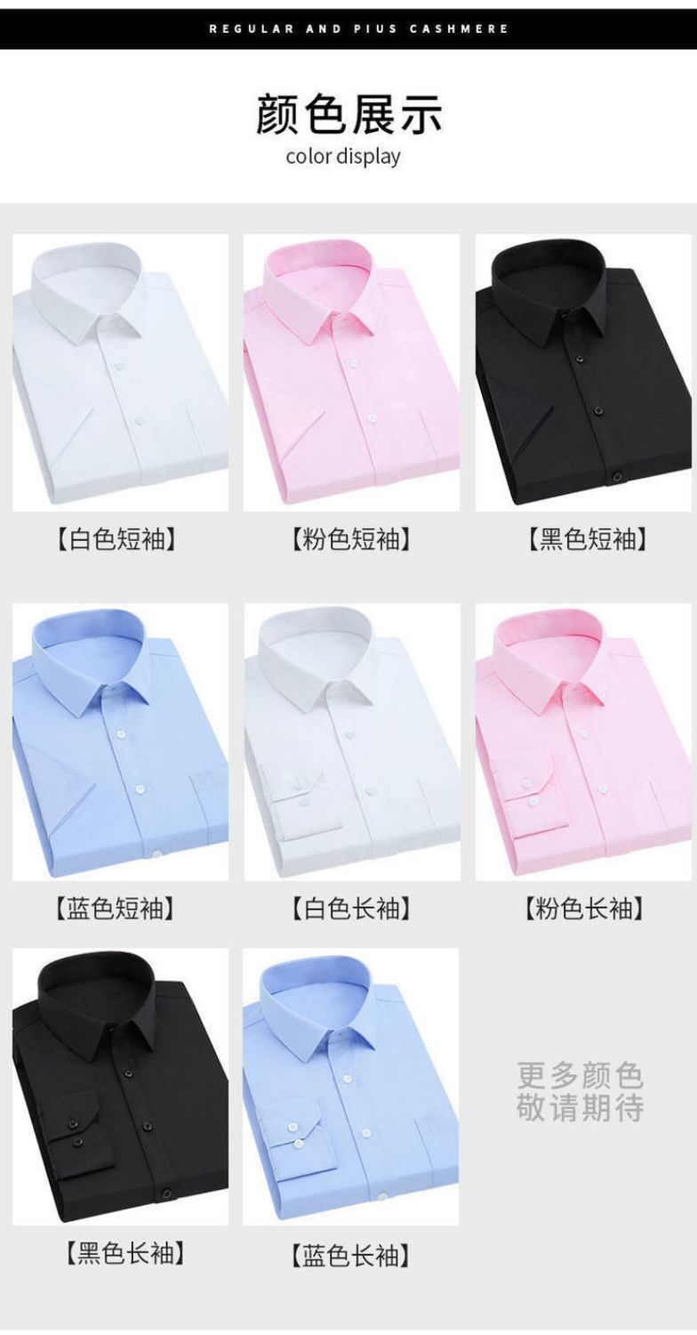 夏季白衬衫男士短袖商务正装职业衬衣免烫抗皱纯色宽松版工装上衣