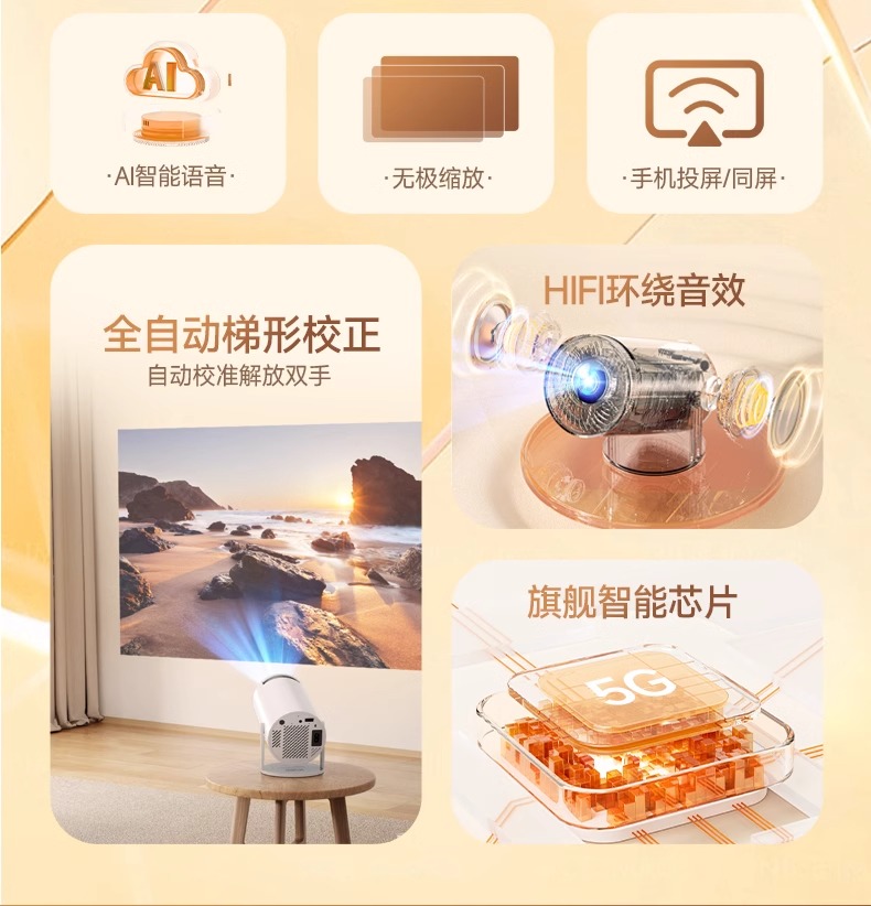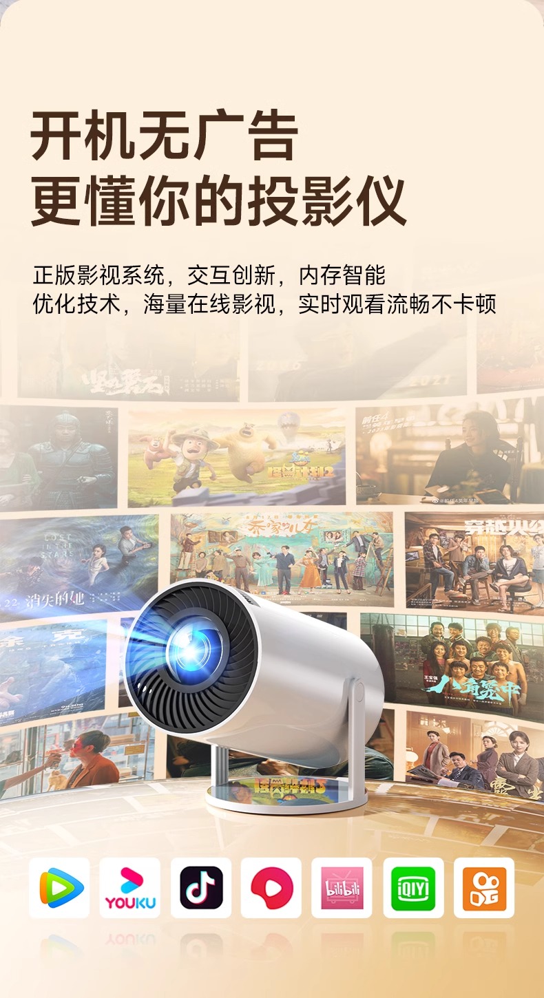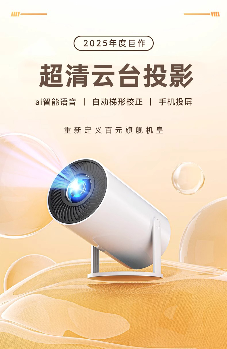2025新款云台投影仪家用4K超高清卧室投墙手机投屏智能家庭影院迷你便携式小型宿舍学生儿童投影