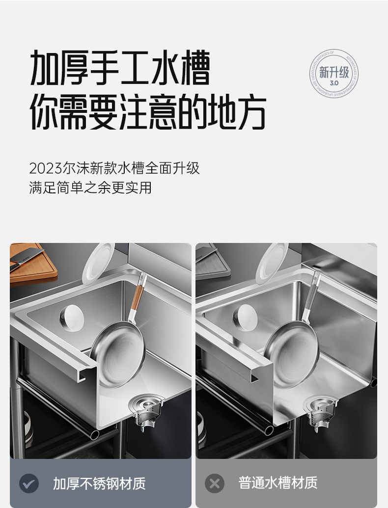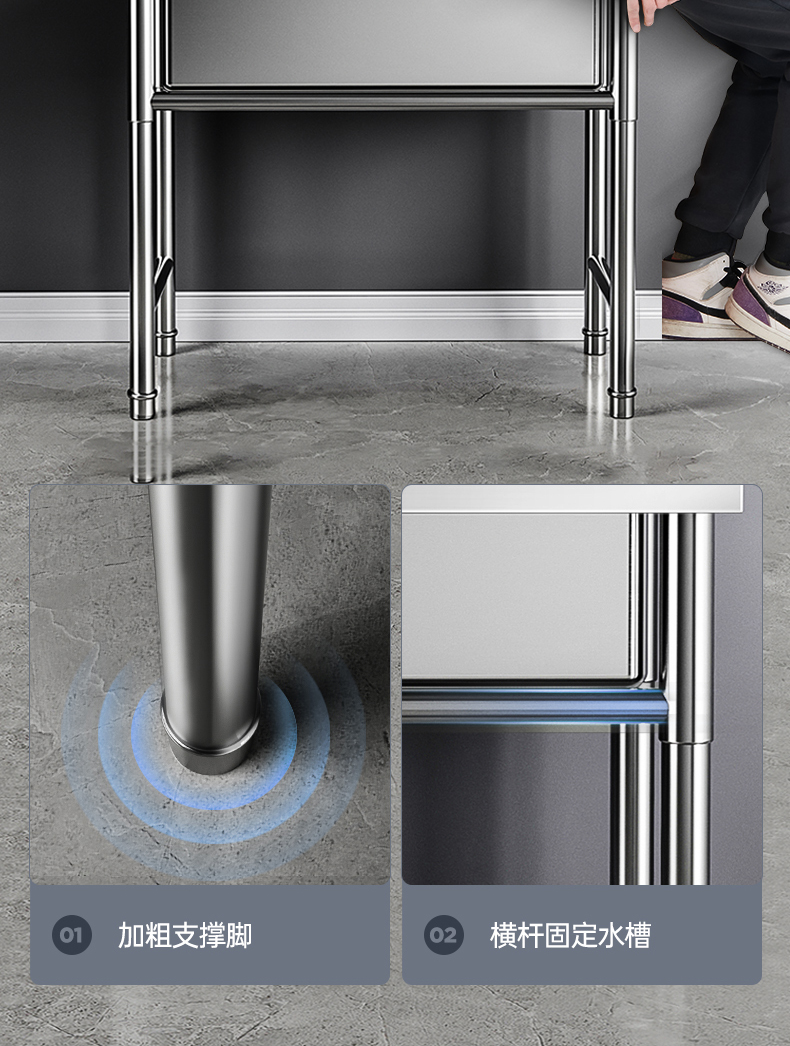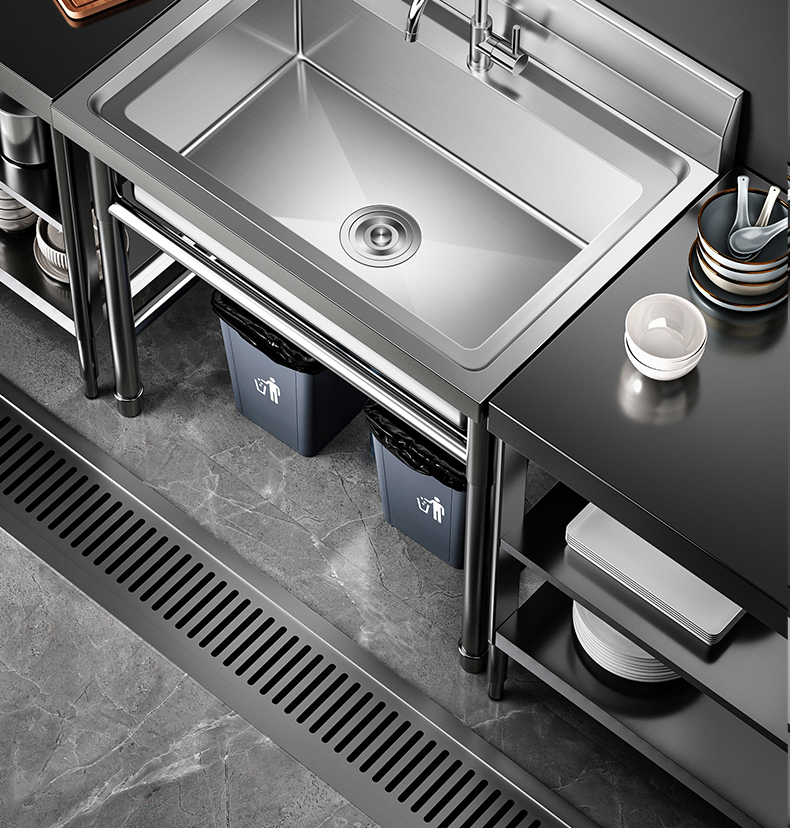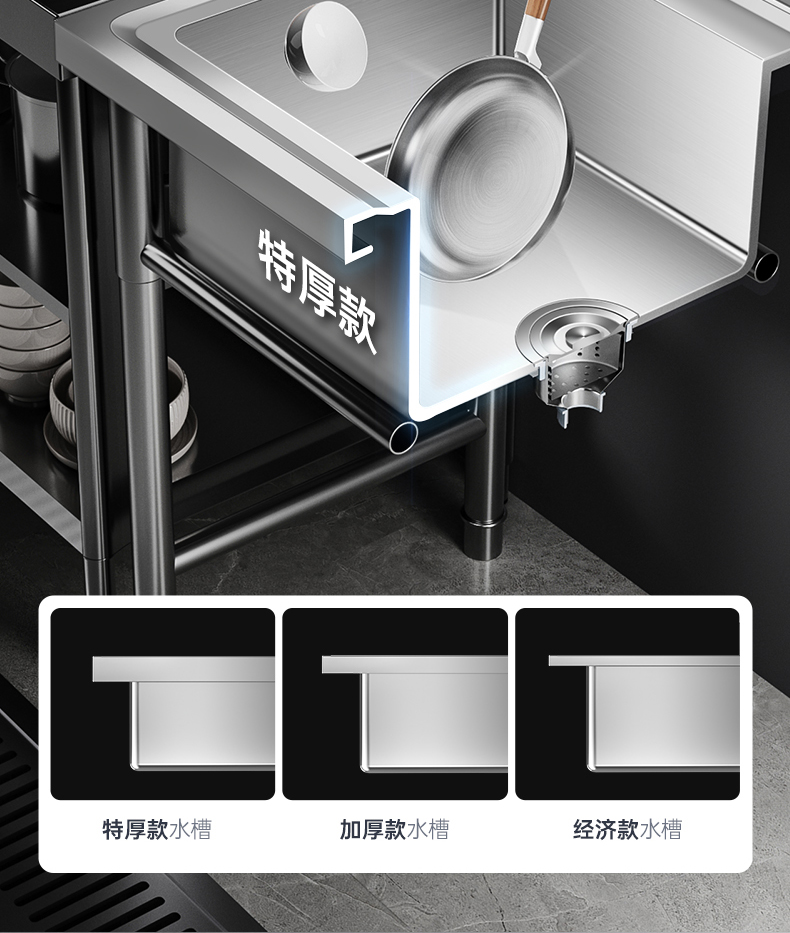 商用不锈钢水槽手工单双三槽厨房洗菜盆洗手盆洗碗水池带支架家用