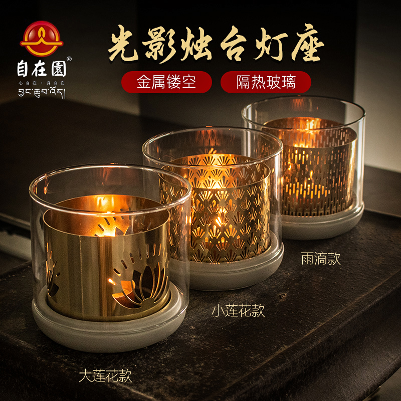 自在园菩提灯座酥油灯灯盏菩提灯莲花灯蜡烛杯烛台佛堂家用