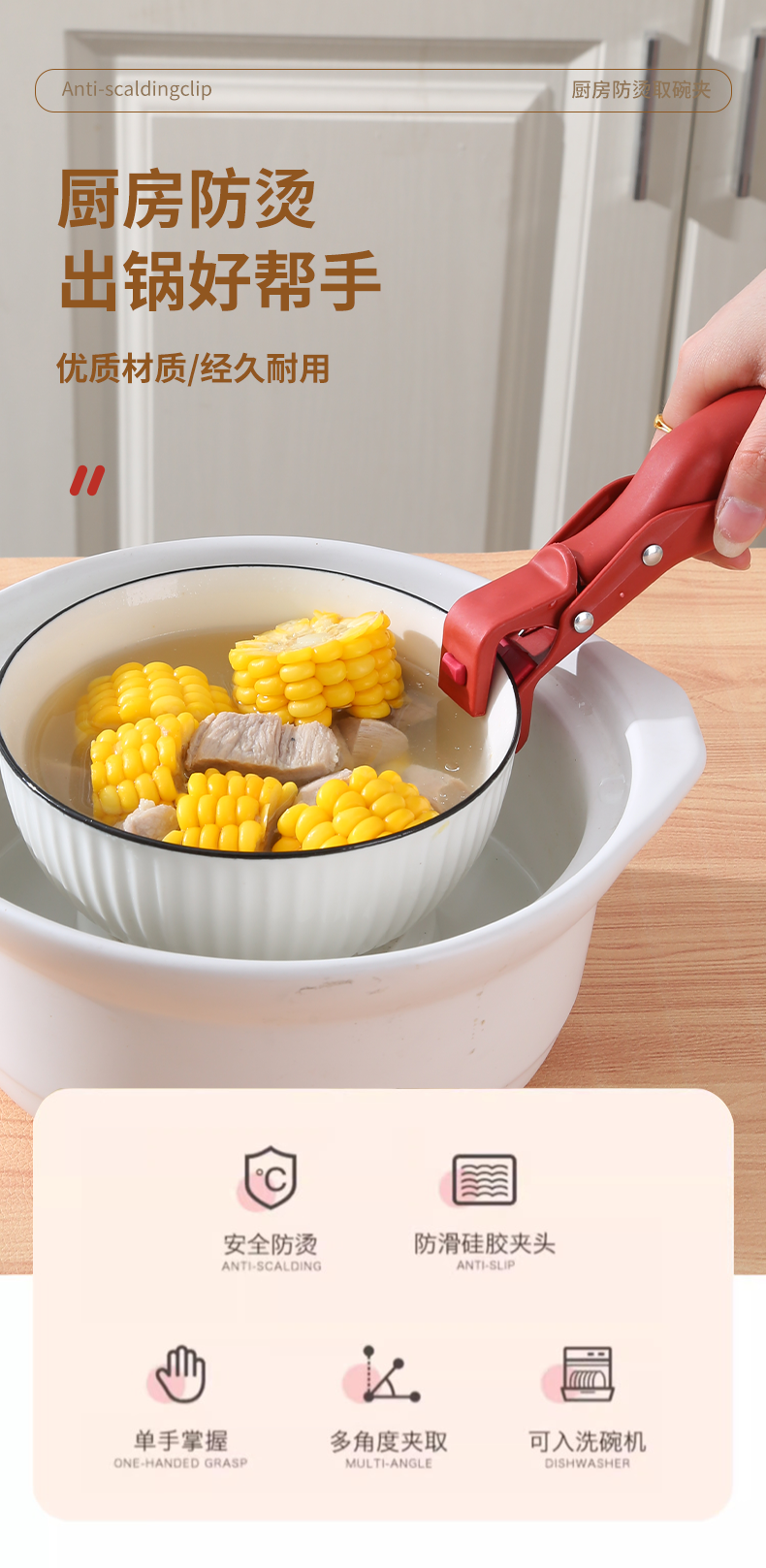 瑞士防烫夹厨房用防烫锅夹取碗夹盘子微波炉硅胶夹菜钳蒸菜锅神器
