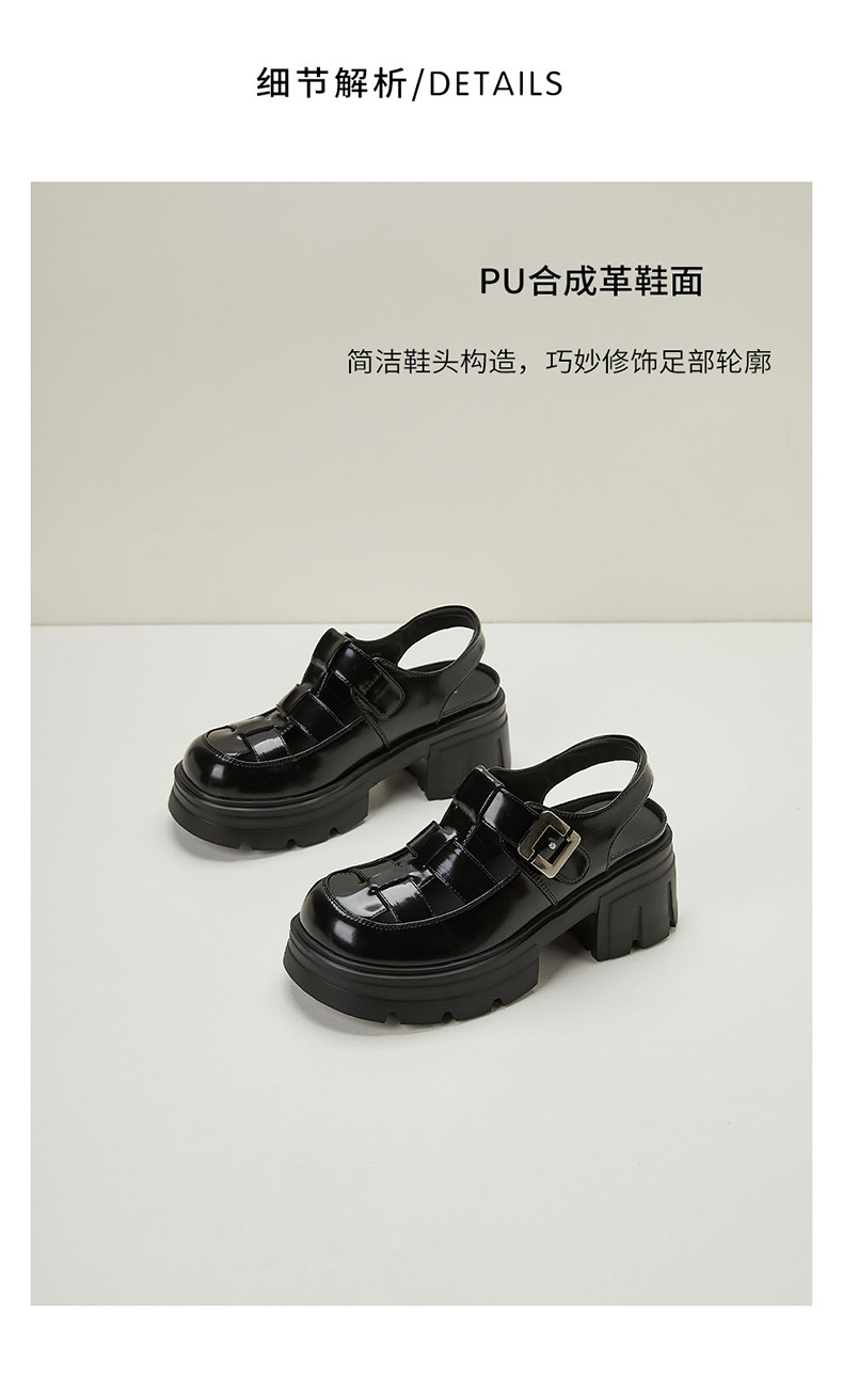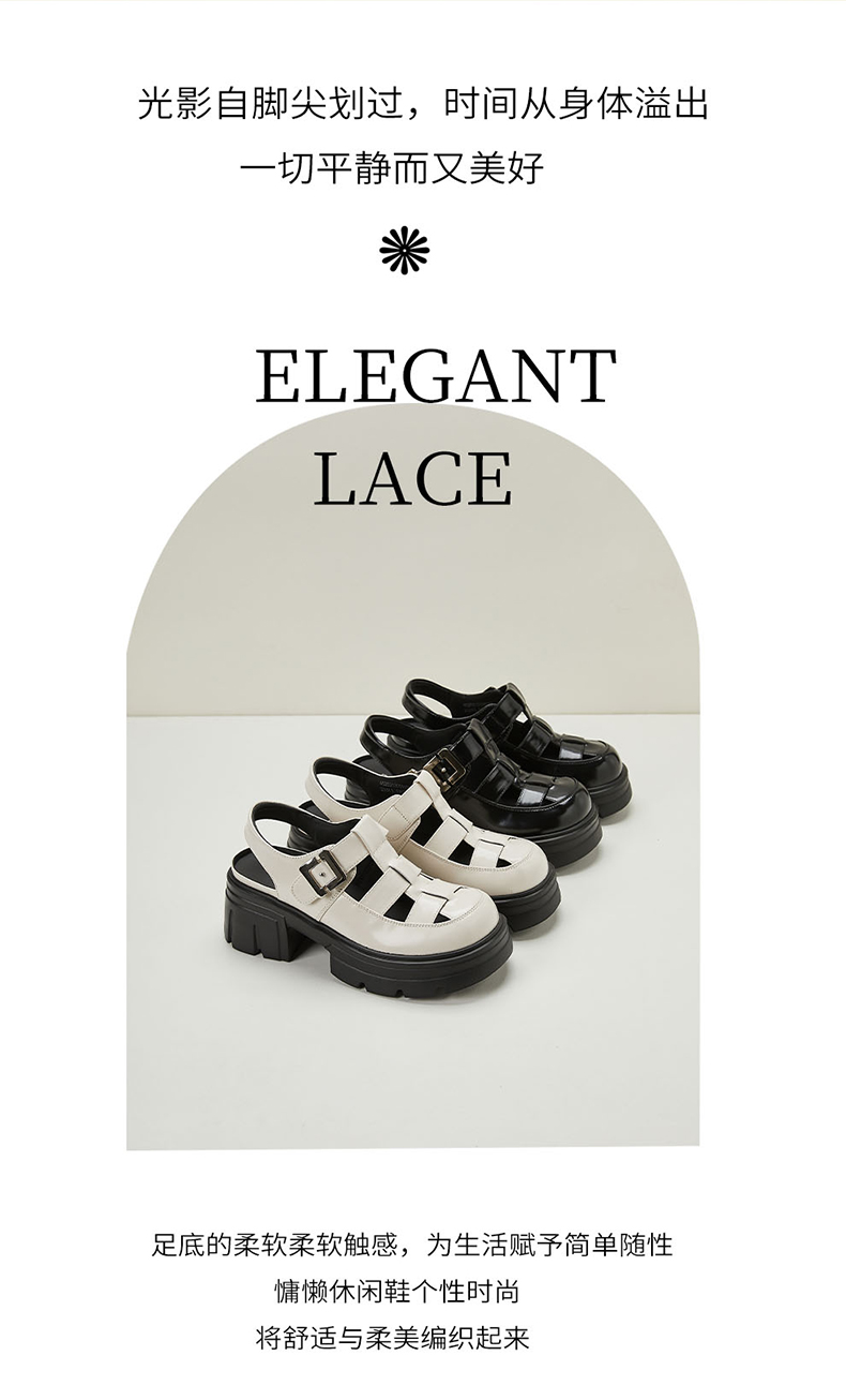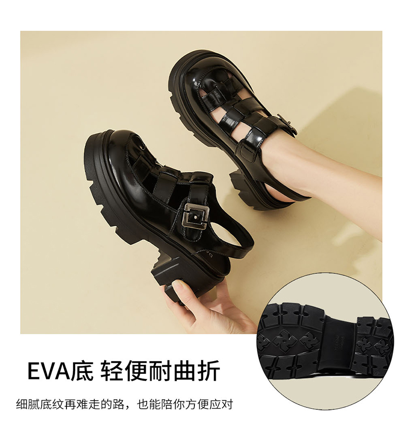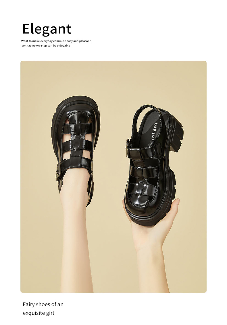 达芙妮厚底罗马凉鞋女款2025夏季黑色复古松糕镂空包头编织猪笼鞋