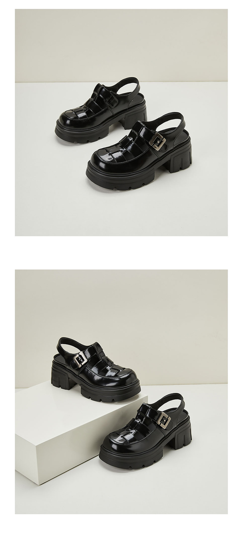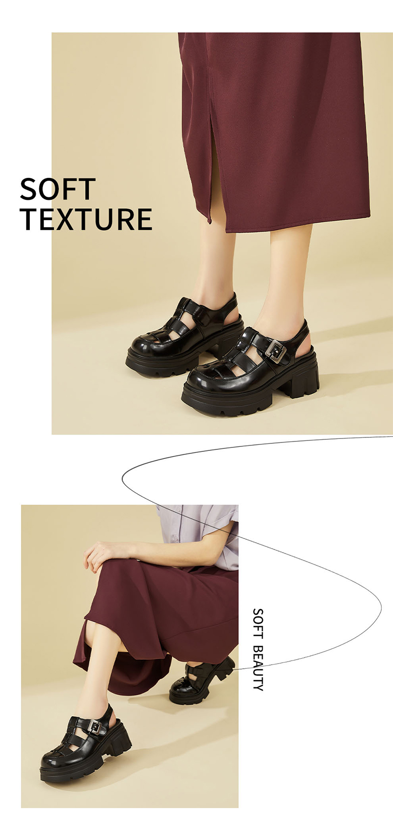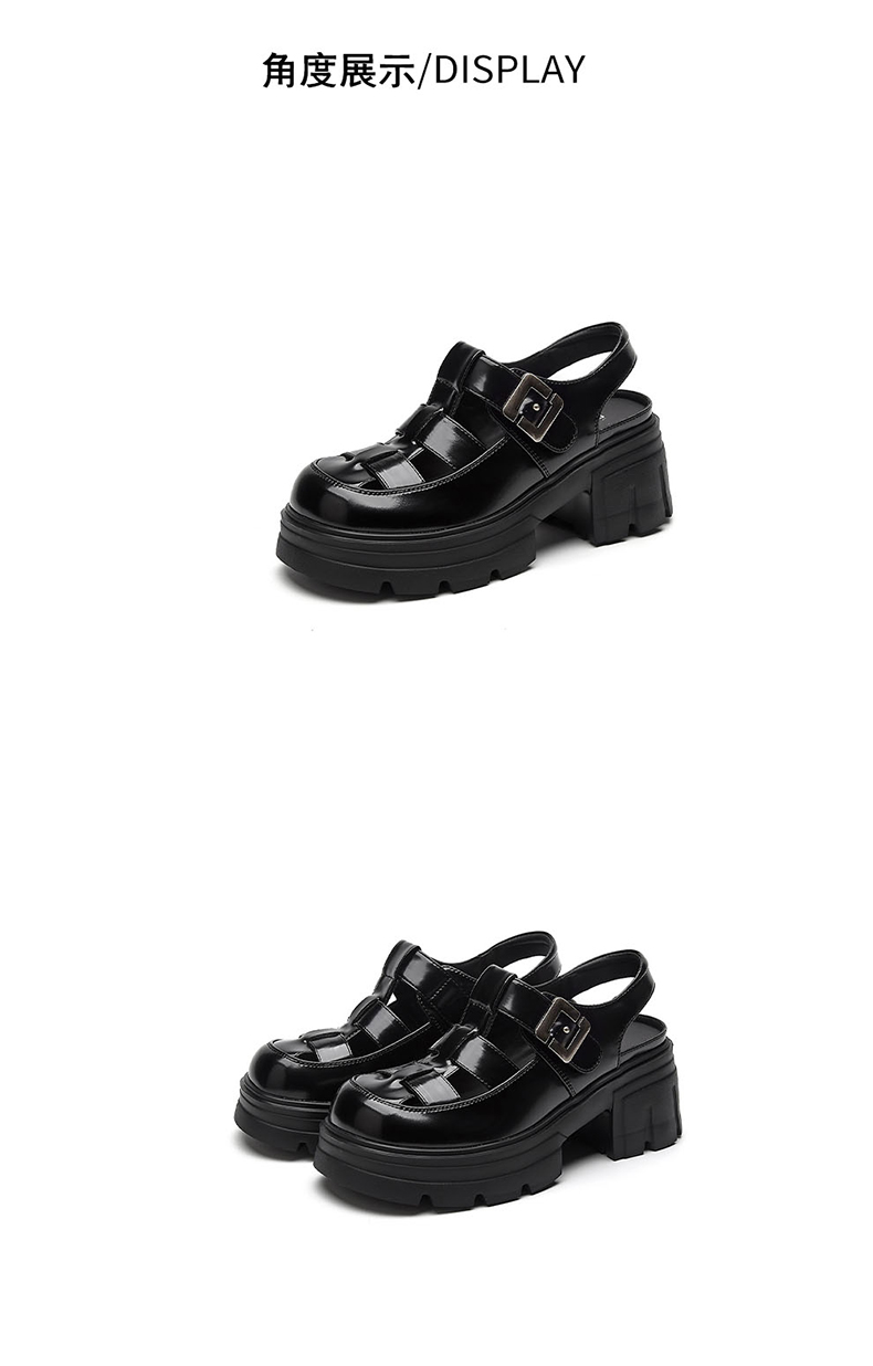 达芙妮厚底罗马凉鞋女款2025夏季黑色复古松糕镂空包头编织猪笼鞋