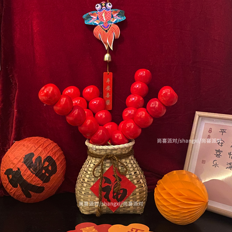 中式仿真糖葫芦拍照道具宝宝周岁生日布置抓周场景装饰幼儿园摆件