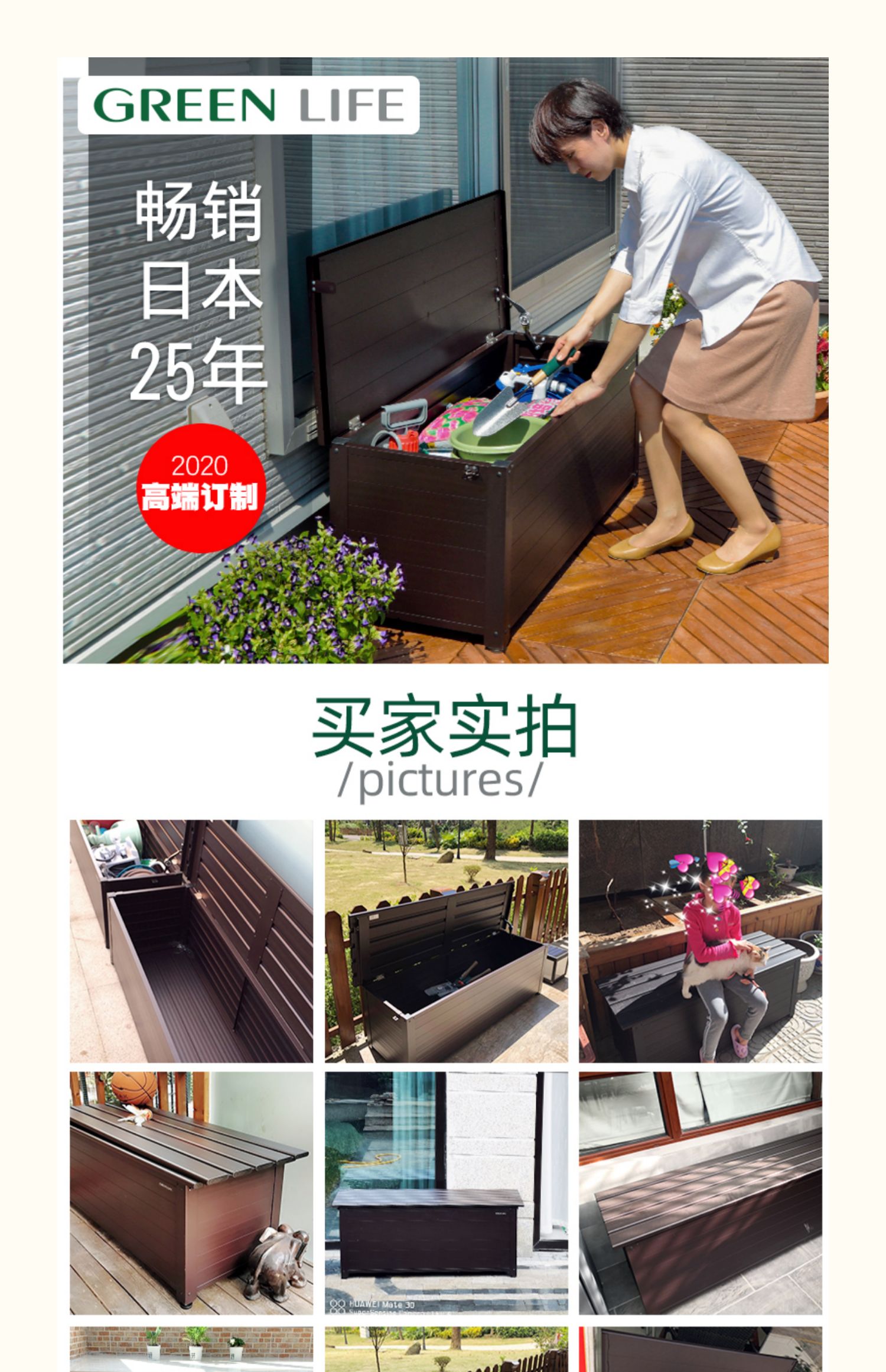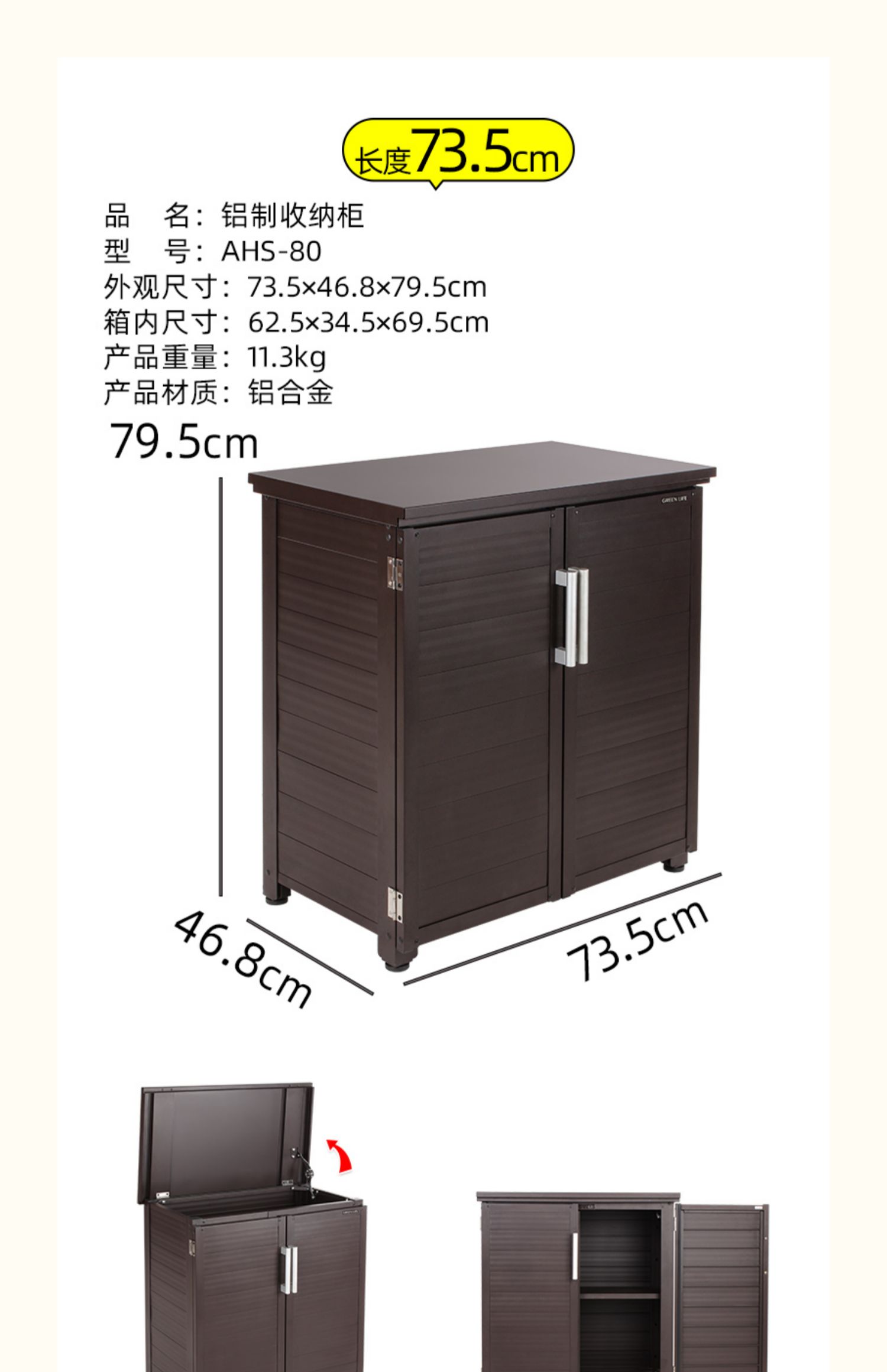 户外铝合金收纳柜储物柜防晒防雨阳台庭院室外花园储物凳带锁