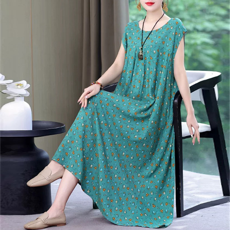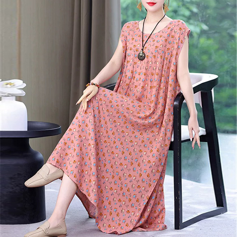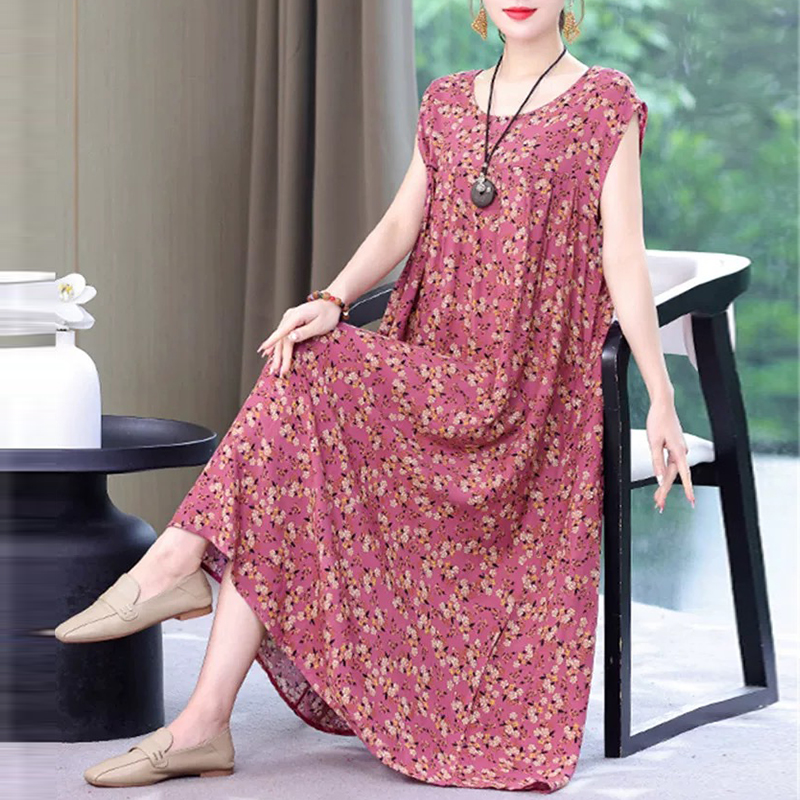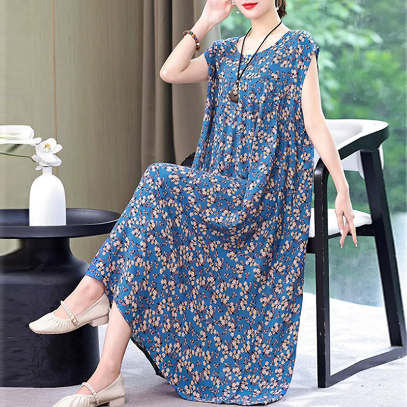 2025新款女士印花连衣裙夏季大码女装时尚宽松显瘦妈妈背心长裙女