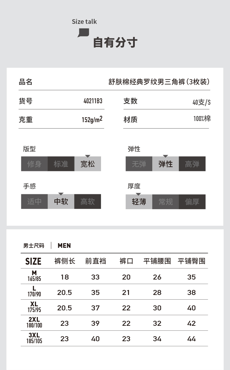 3条装三枪内裤男纯棉内裤高腰大码全棉男士三角裤老年透气不夹臀