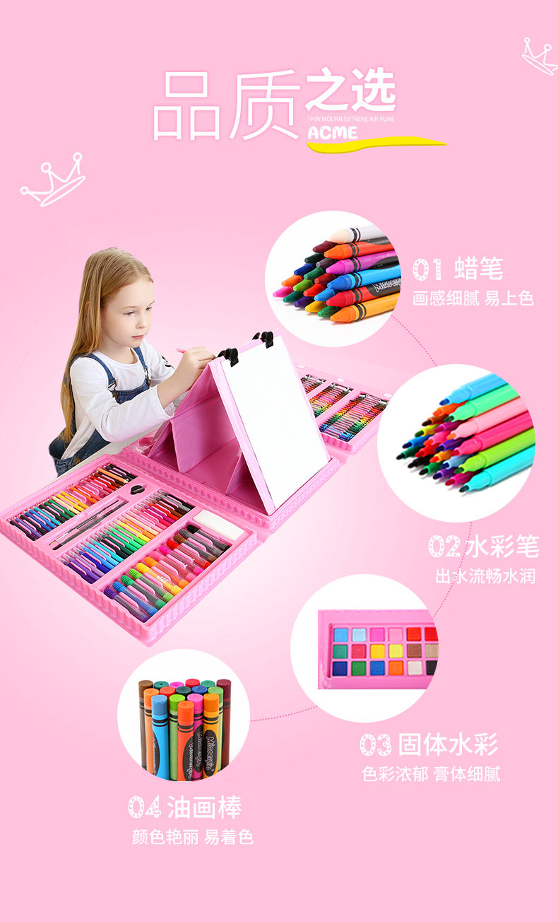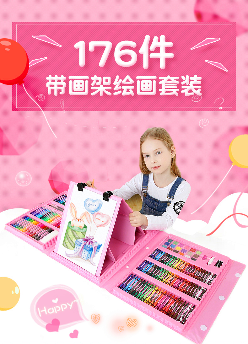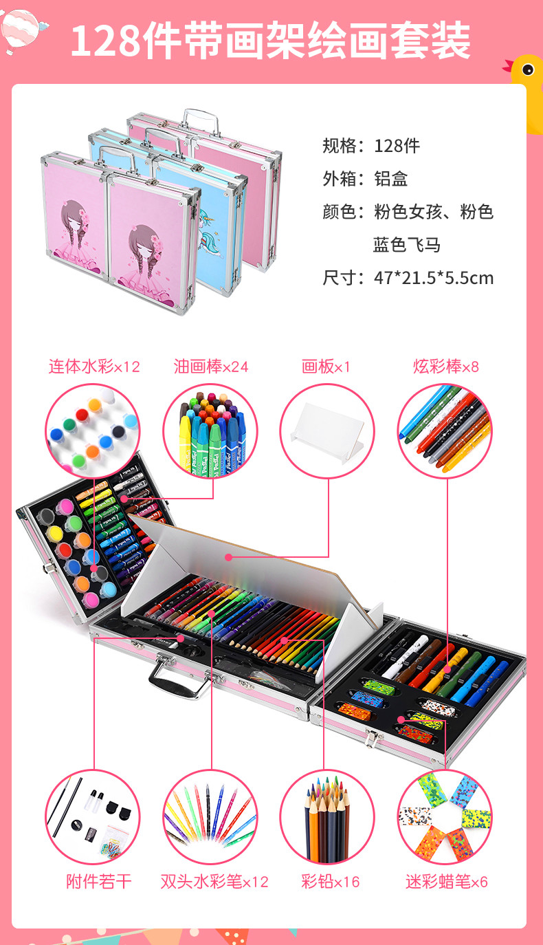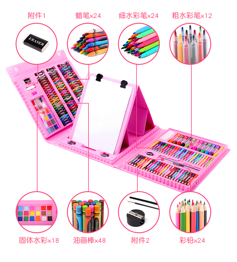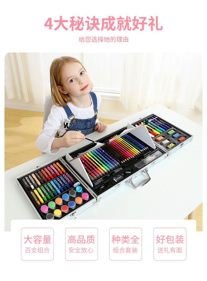 水彩笔套装儿童可水洗画画笔幼儿园彩色笔安全环保文具用品小学生用美术绘画礼盒带画架宝宝涂鸦笔颜色笔蜡笔