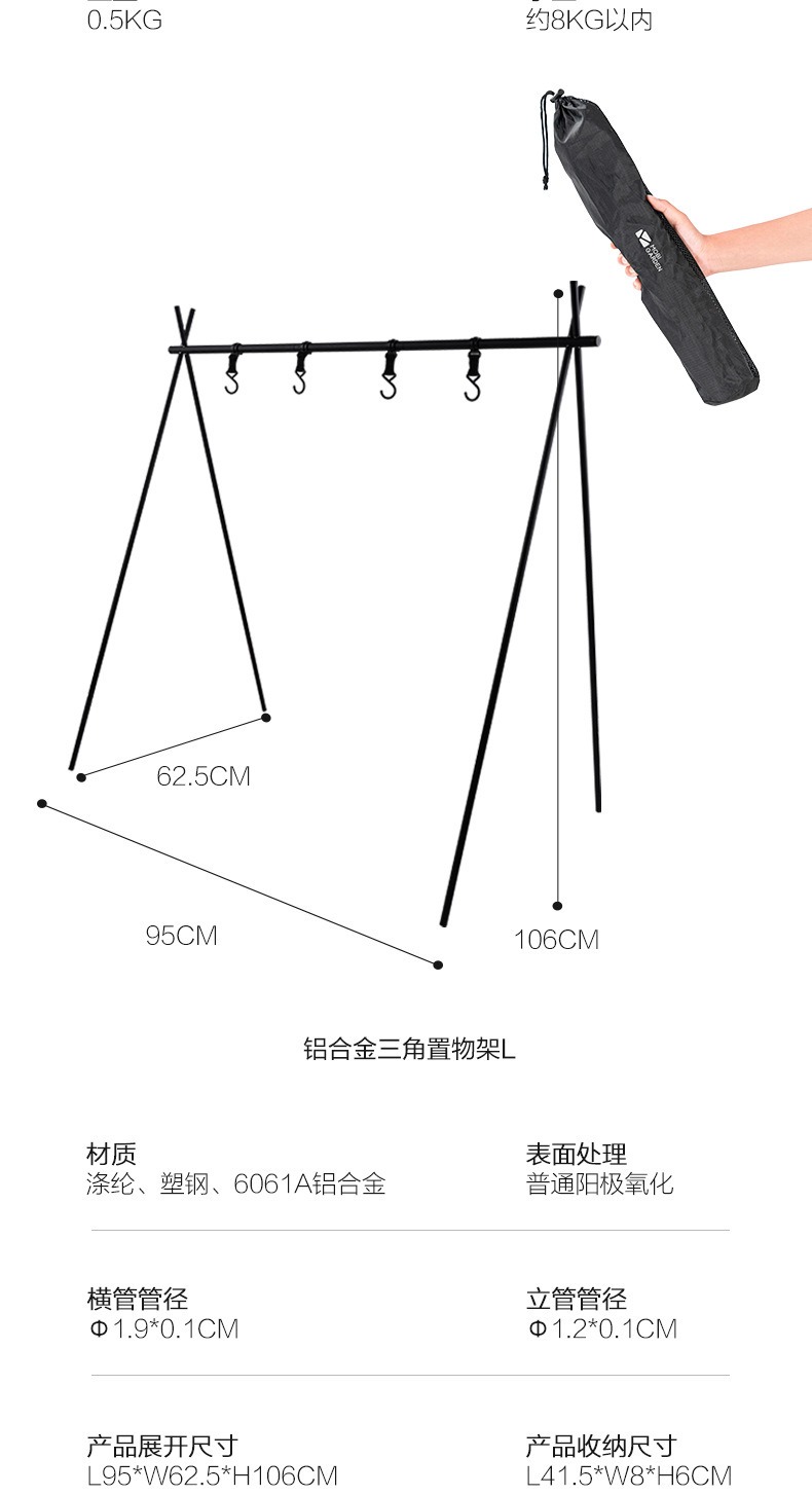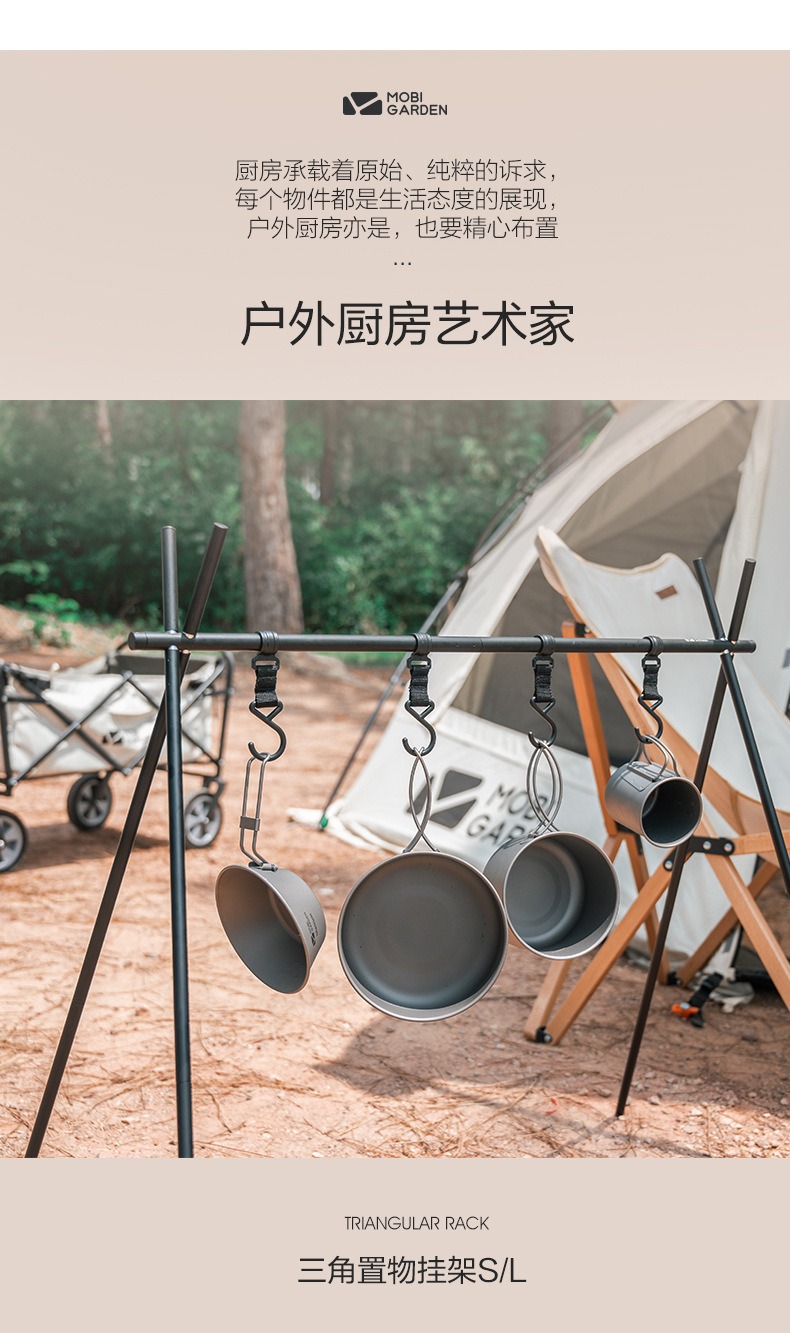 牧高笛户外三角置物架多功能挂钩户外露营便携餐具收纳挂架晾衣架