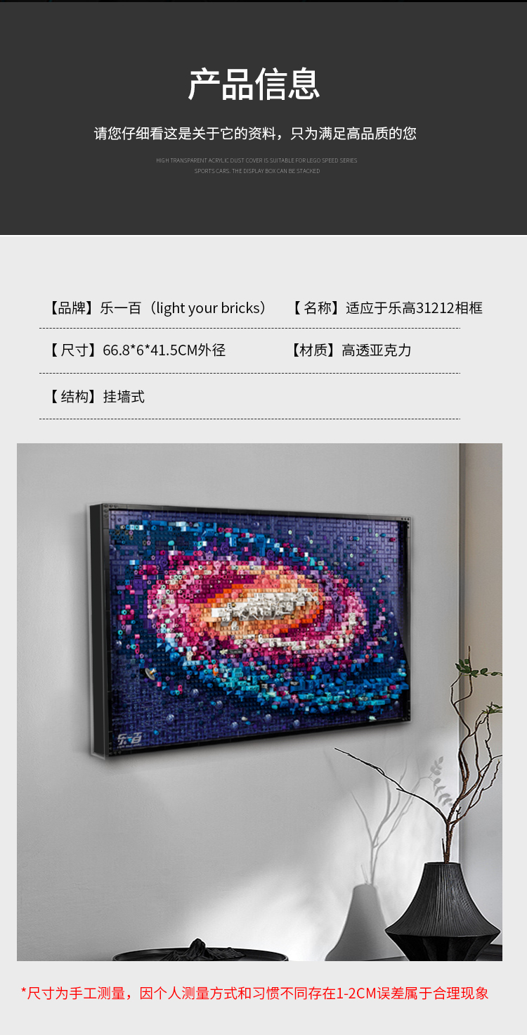 乐一百适用乐高艺术系列31212银河系像素画透明展示盒相框挂墙