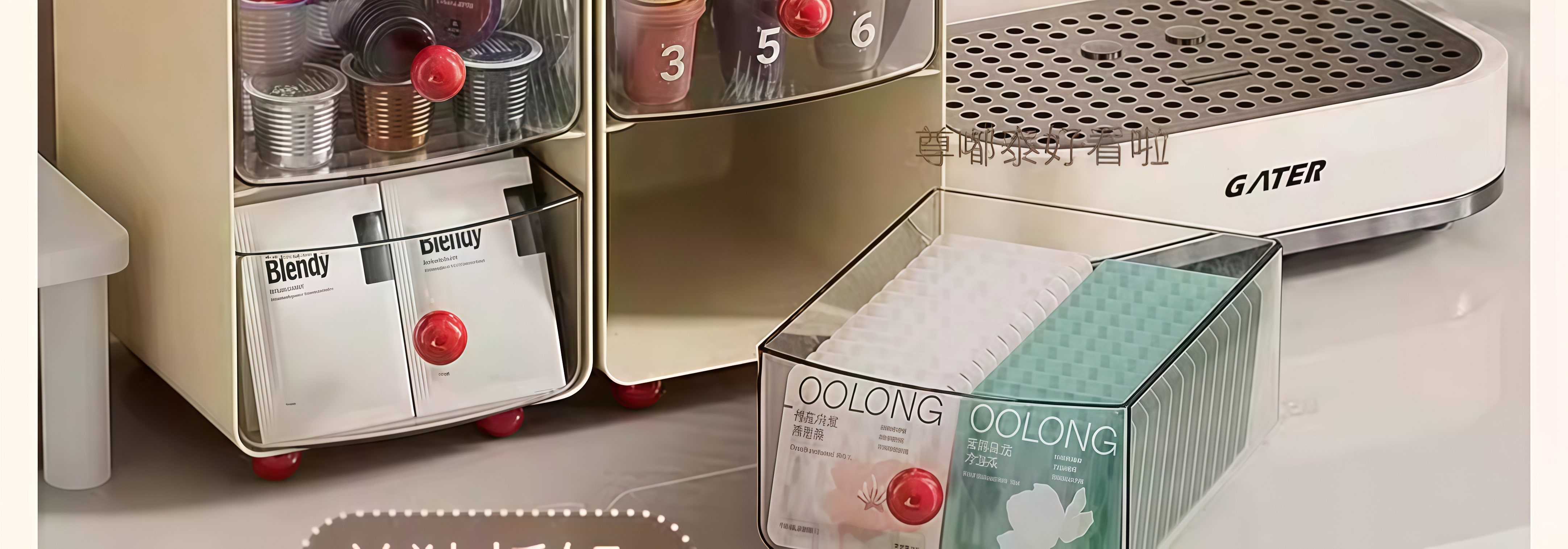 咖啡角桌面茶包收纳盒抽屉式办公茶水间餐桌收纳架胶囊咖啡置物架