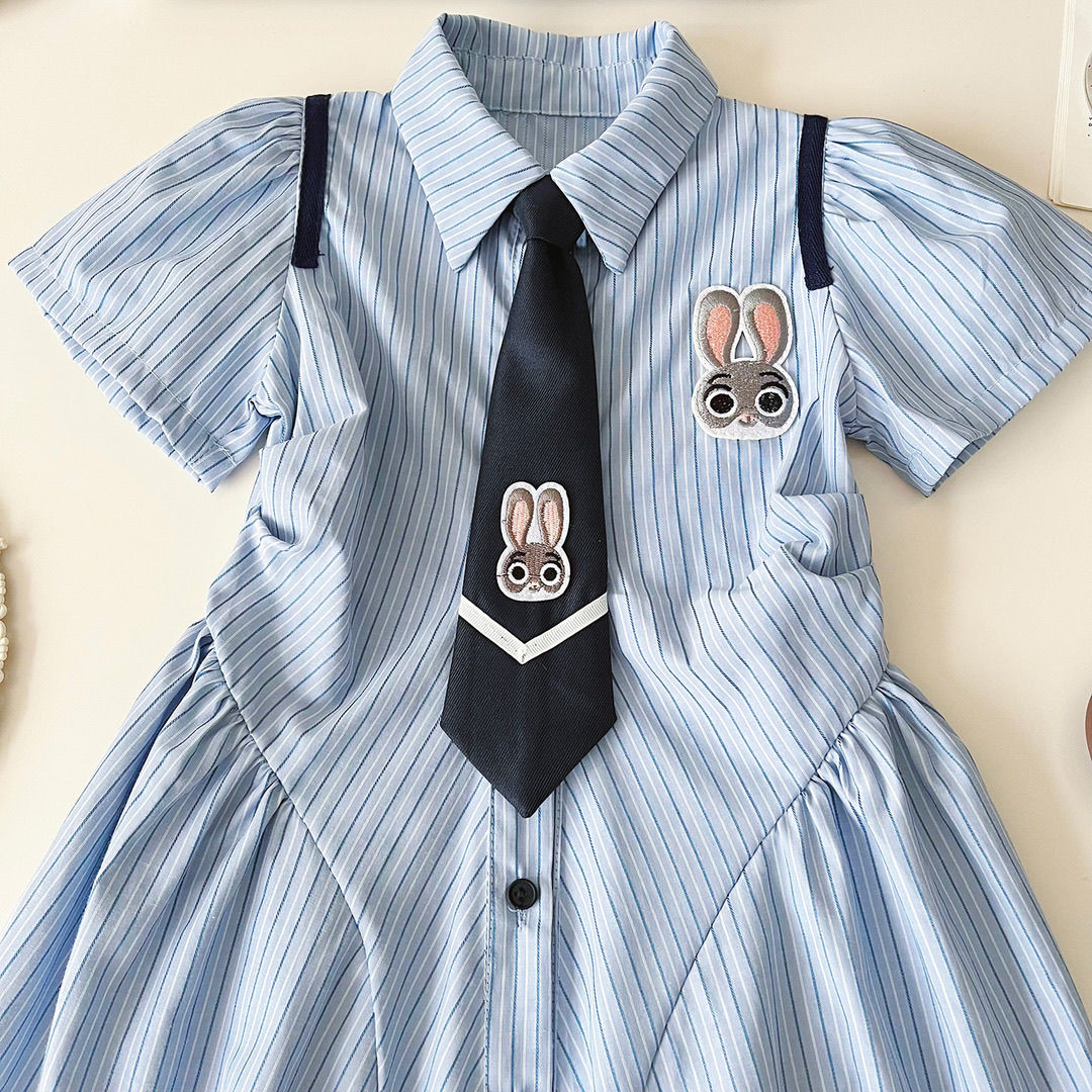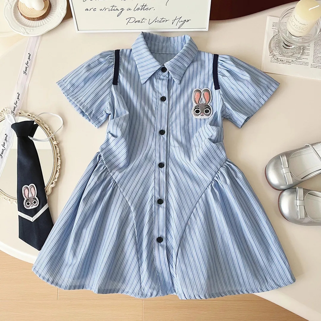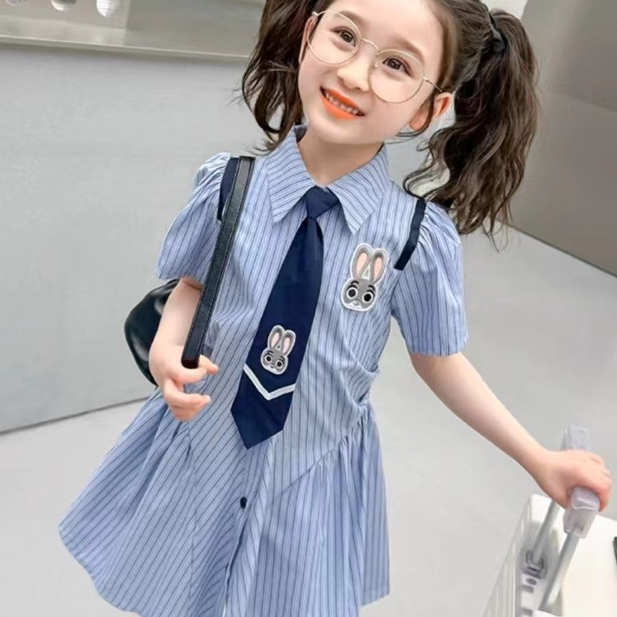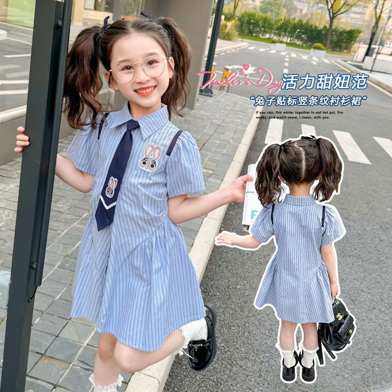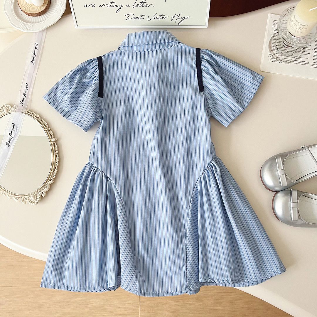 女童学院夏装POLO连衣裙儿童2024夏季新款条纹衬衫裙子宝宝公主裙