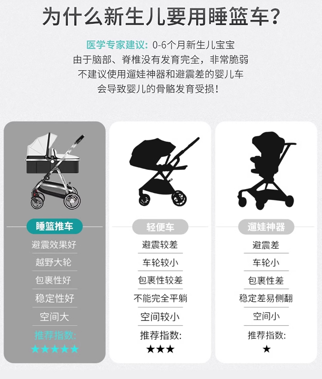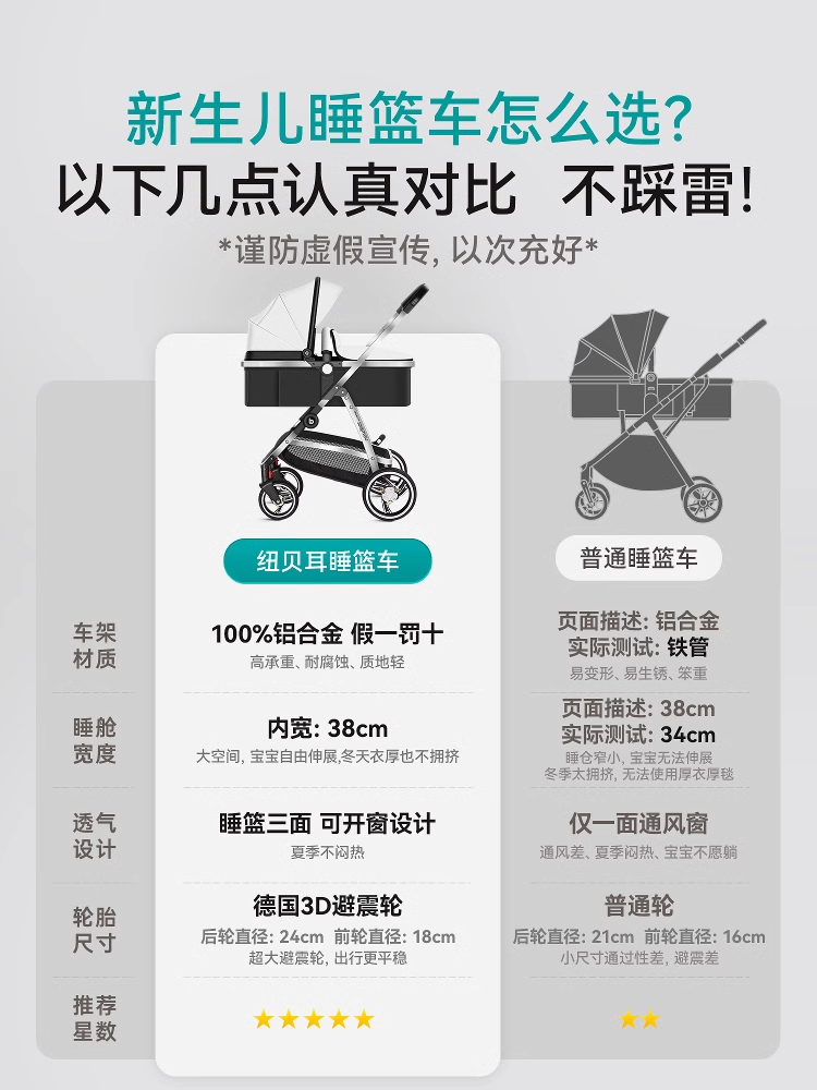 newber纽贝尔婴儿推车可坐躺轻便折叠高景观宝宝0到3岁婴幼儿睡篮