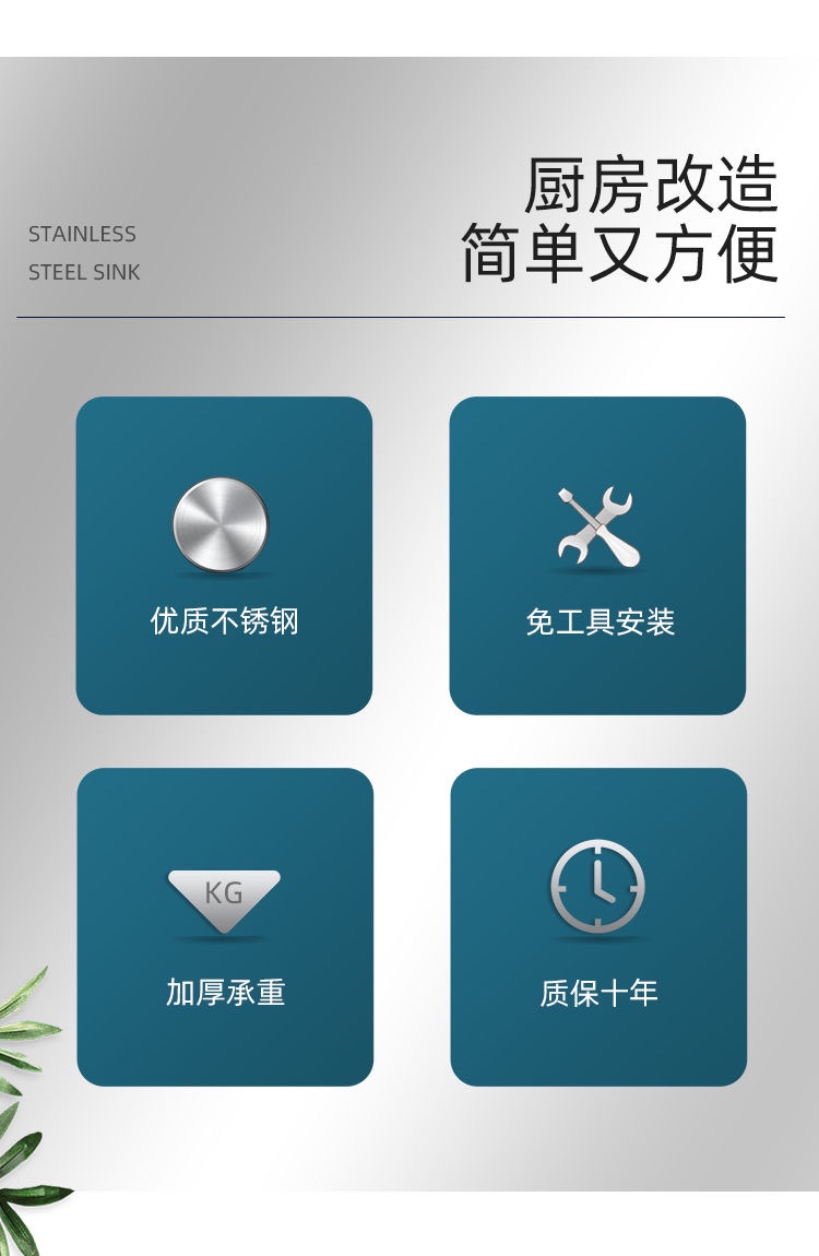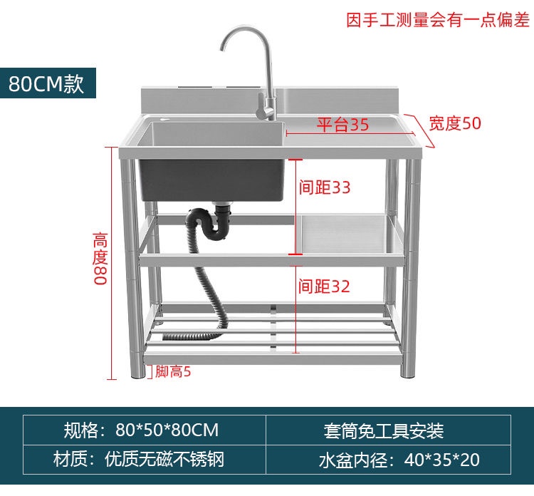 厨房不锈钢水槽带支架简易洗碗洗手台盆台面一体柜洗菜盆水池家用