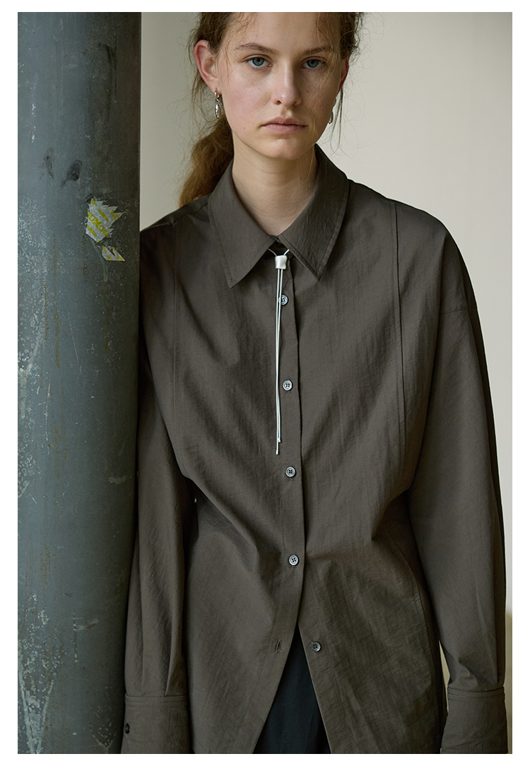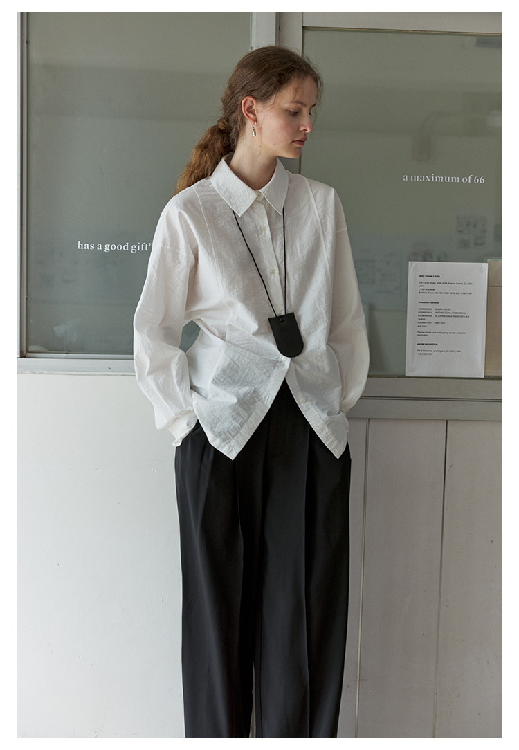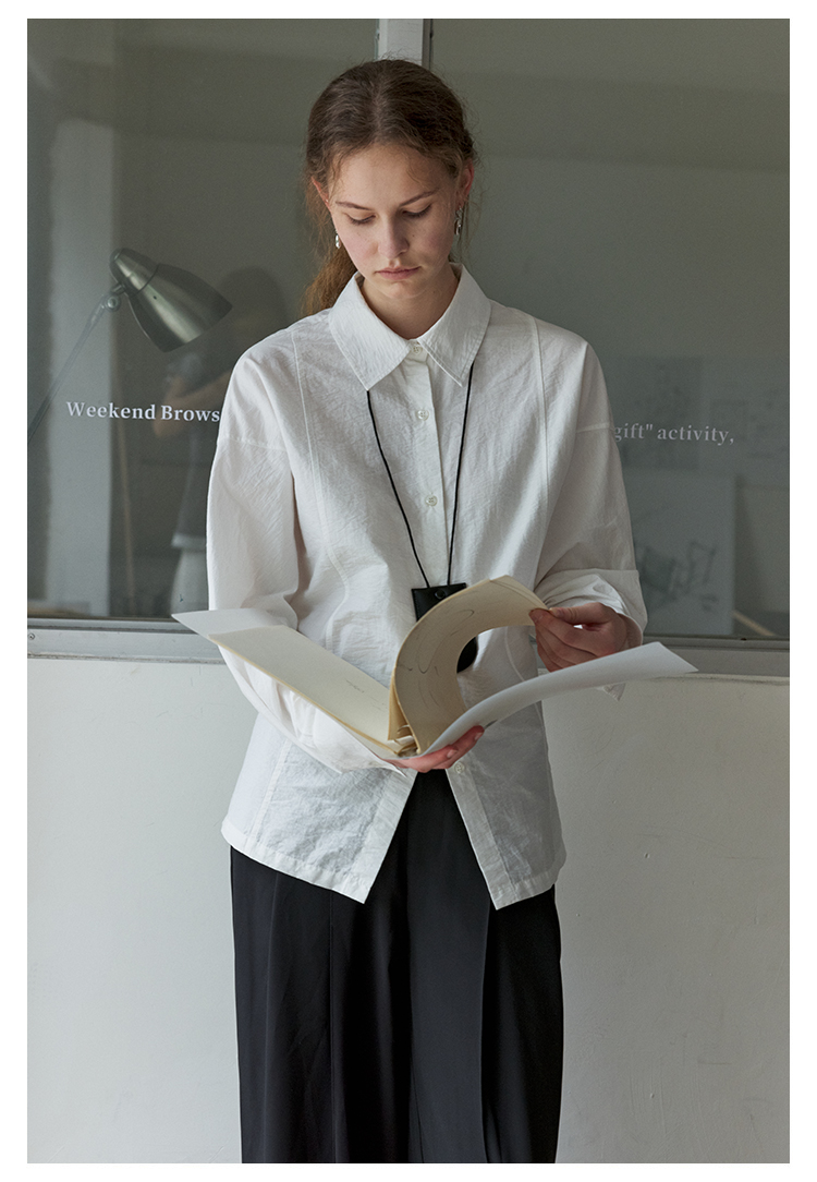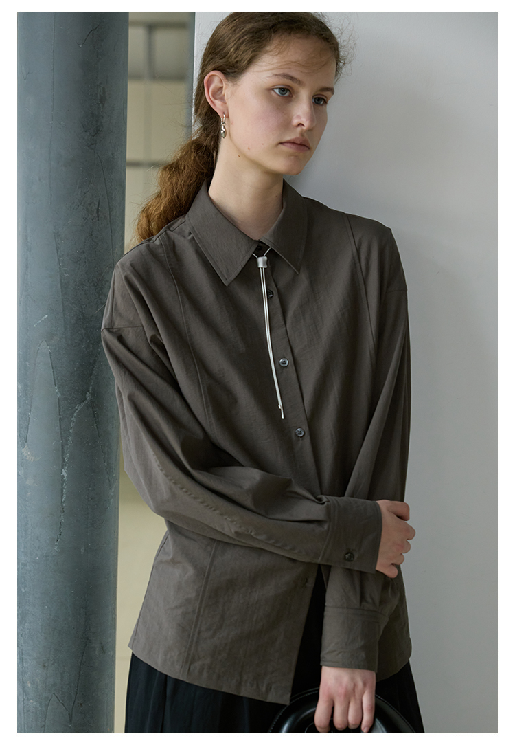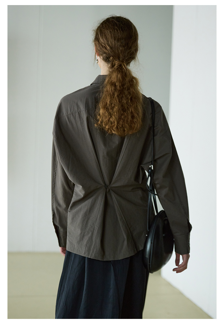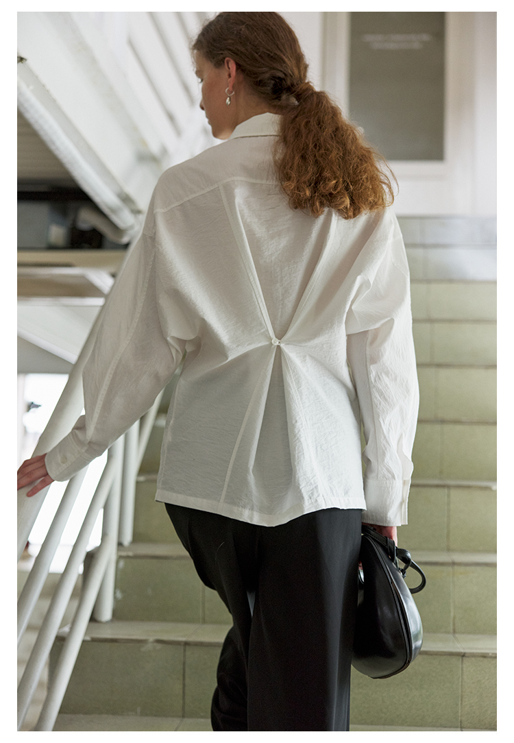 NON RESTRAIN设计感后背系扣蝙蝠袖衬衫女肌理感通勤翻领长袖衬衣