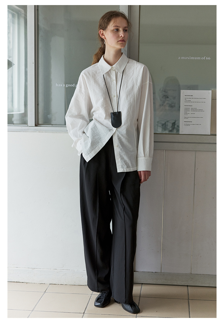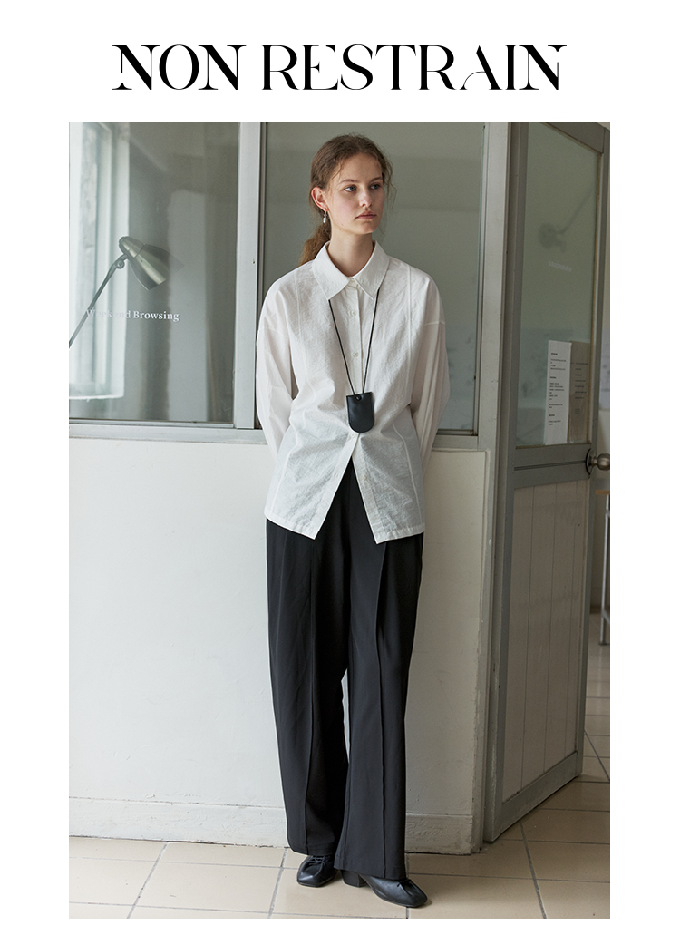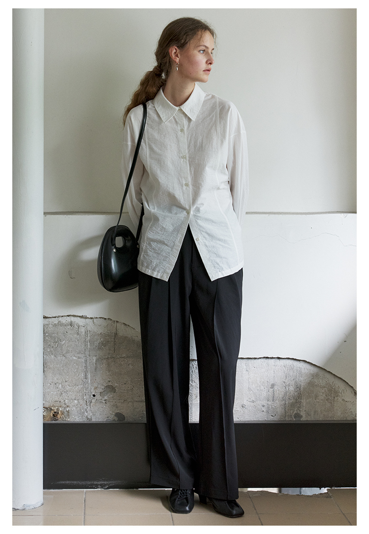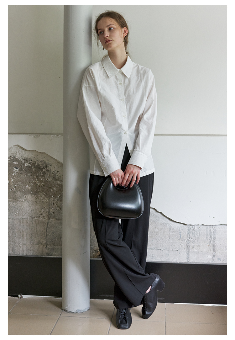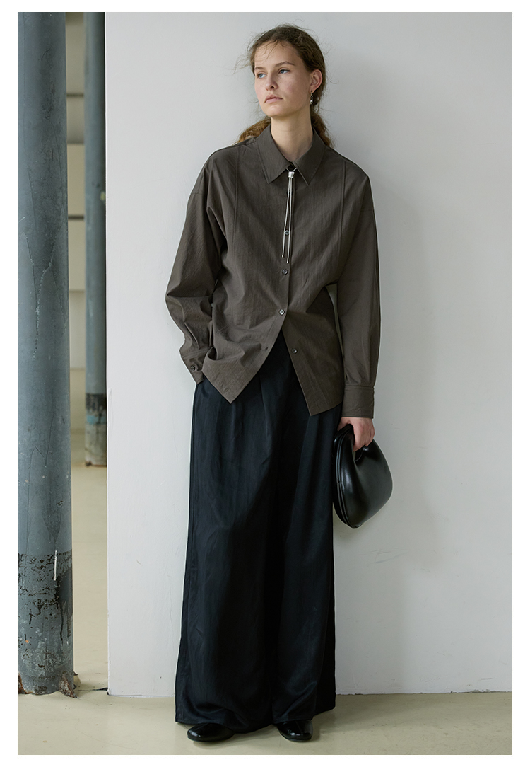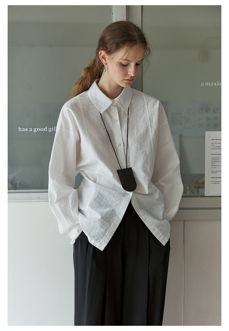 NON RESTRAIN设计感后背系扣蝙蝠袖衬衫女肌理感通勤翻领长袖衬衣