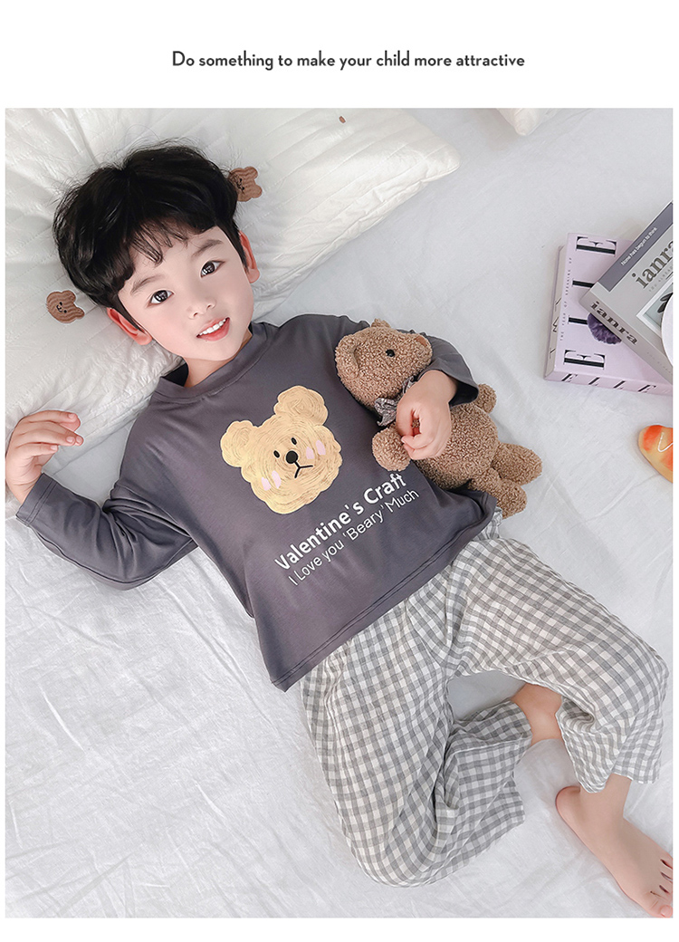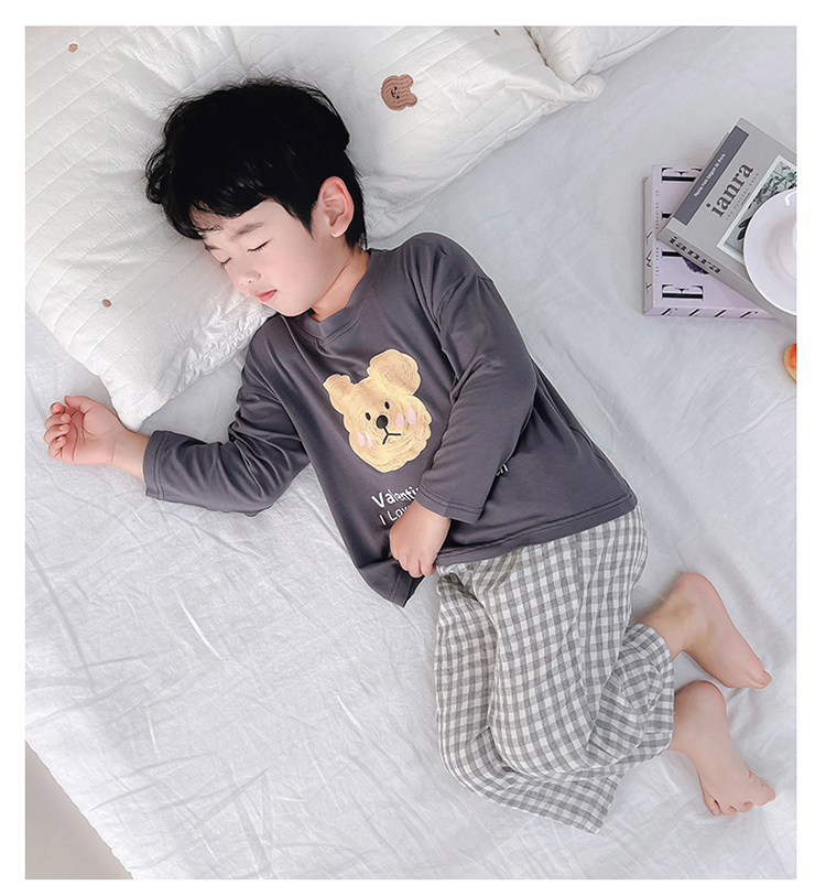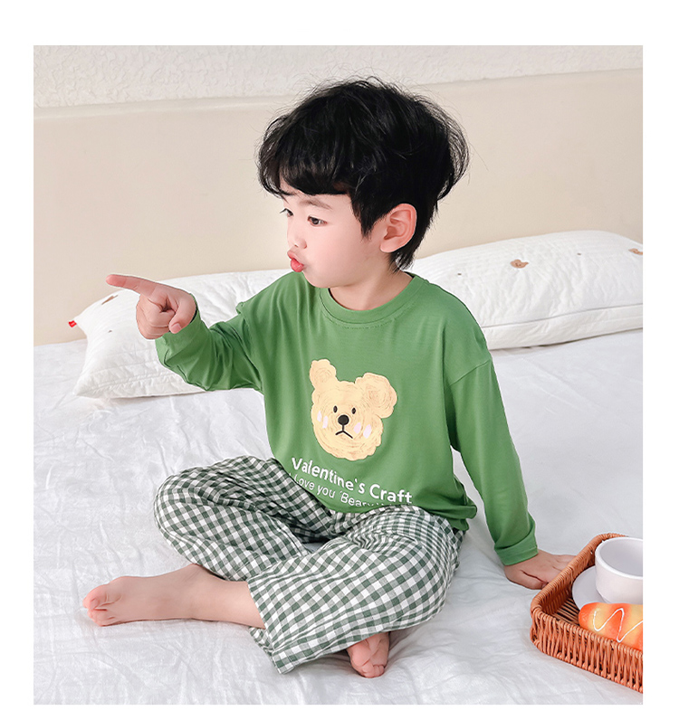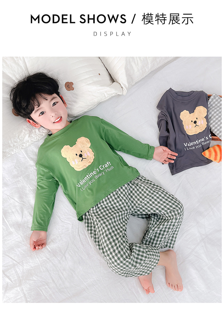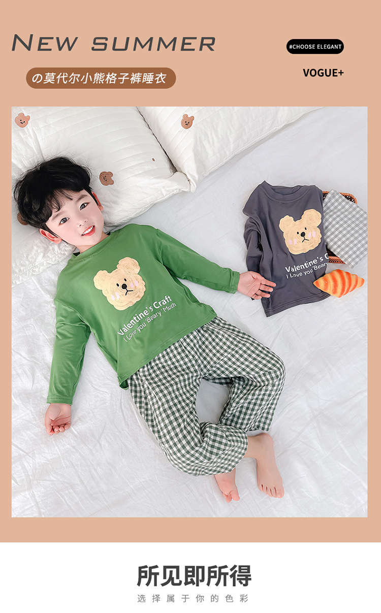 男童莫代尔睡衣夏季男孩男宝宝空调服长袖春秋宽松儿童家居服套装