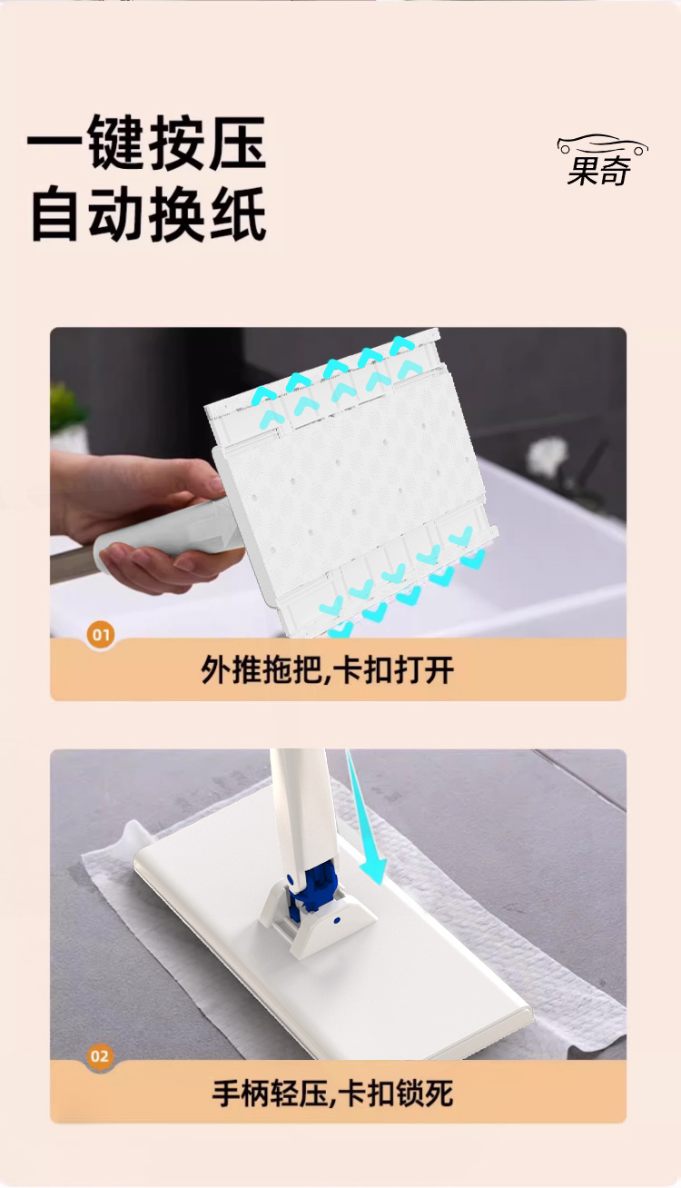 静电除尘纸拖把免手洗夹抹布拖地家用神器洗脸巾二次利用懒人拖把