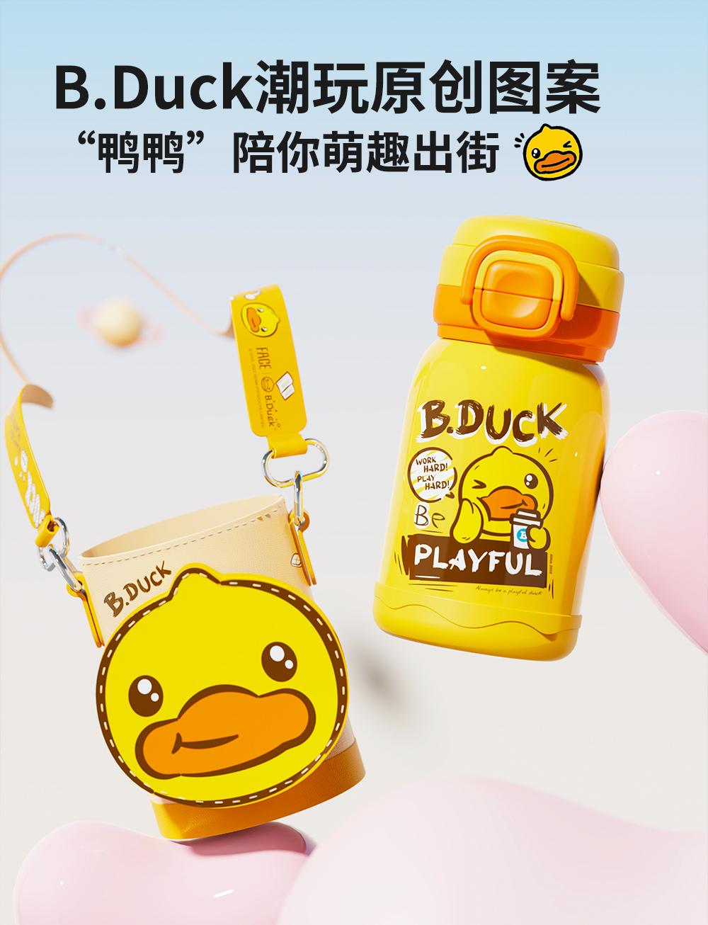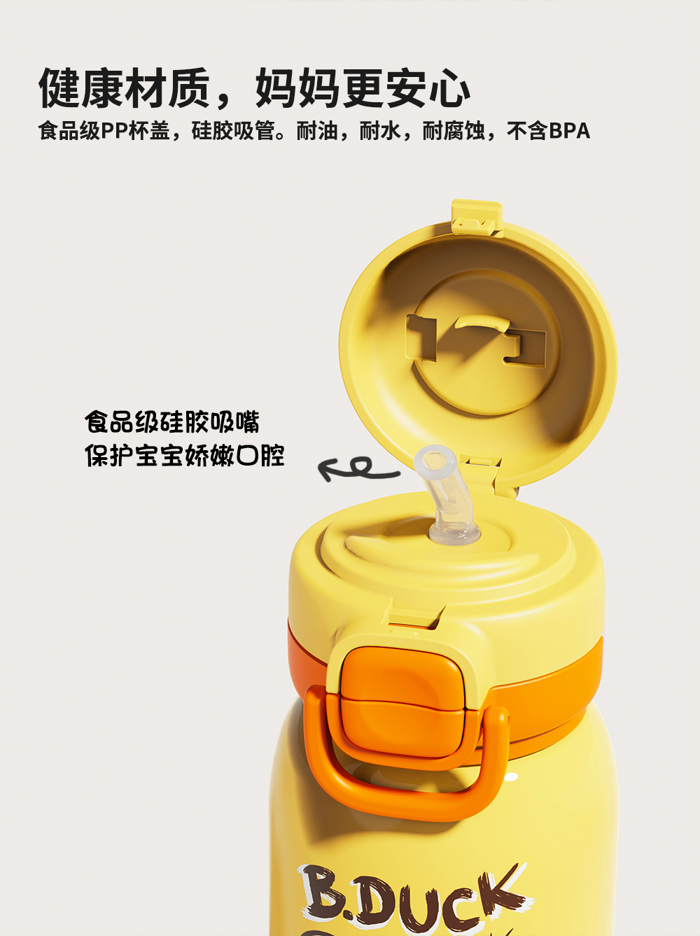 B.Duck 官方小黄鸭儿童保温杯幼儿园宝宝水壶大容量316不锈钢杯