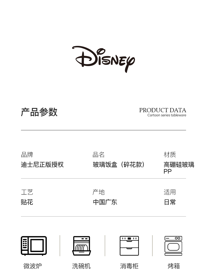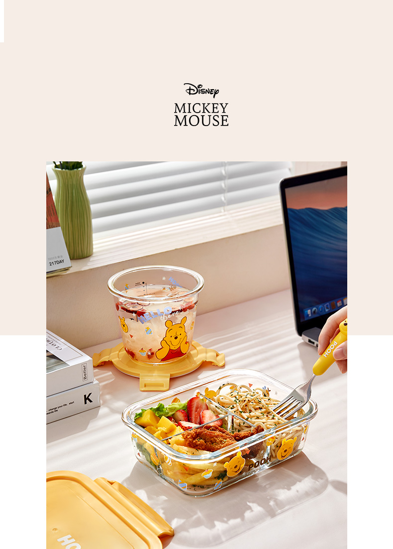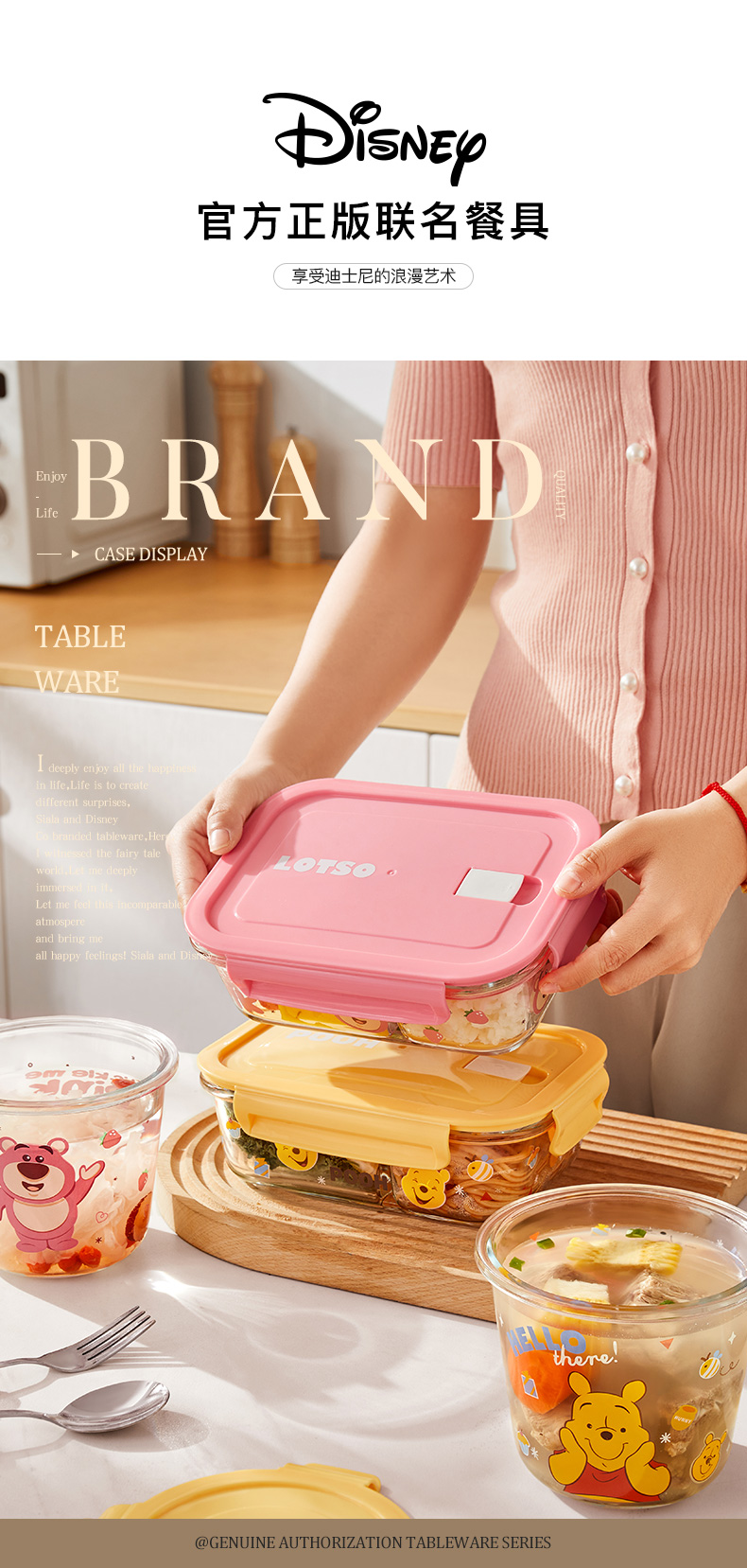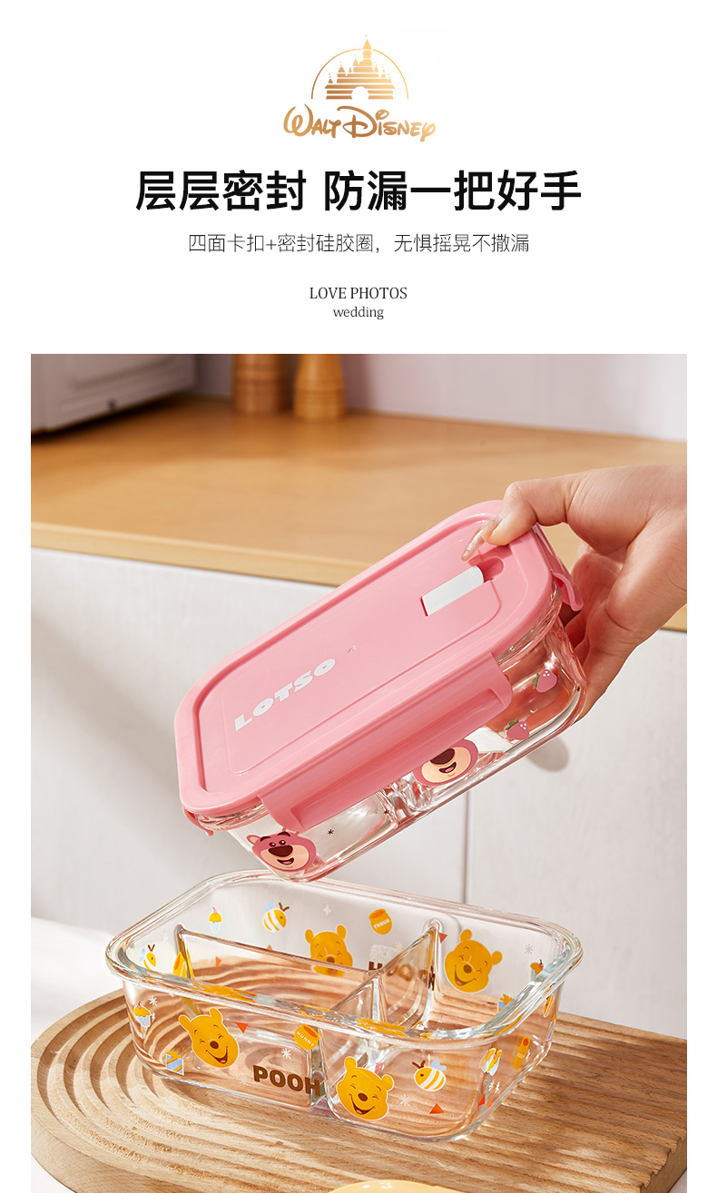迪士尼玻璃饭盒微波炉加热专用保鲜碗上班族水果便当盒带饭餐盒