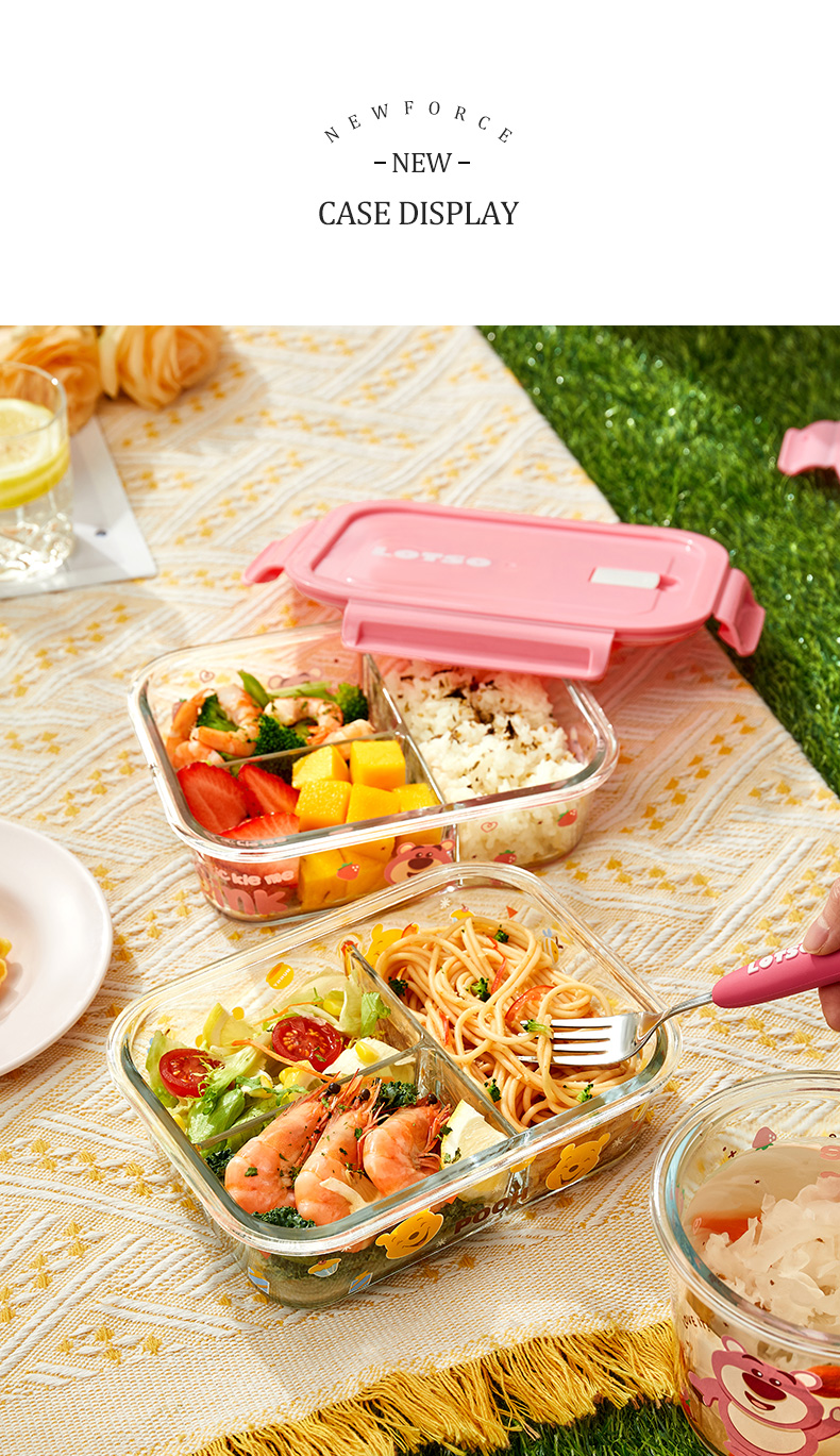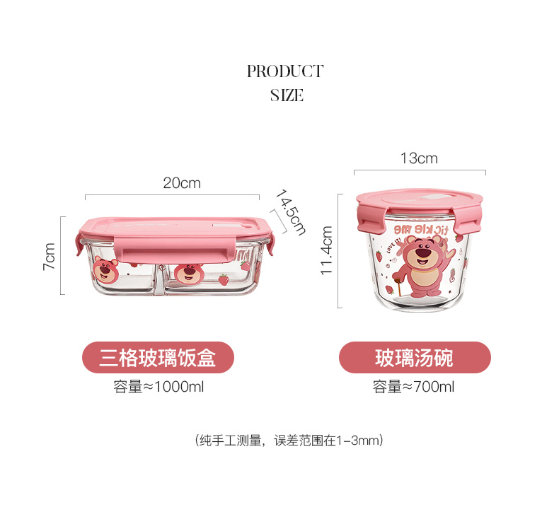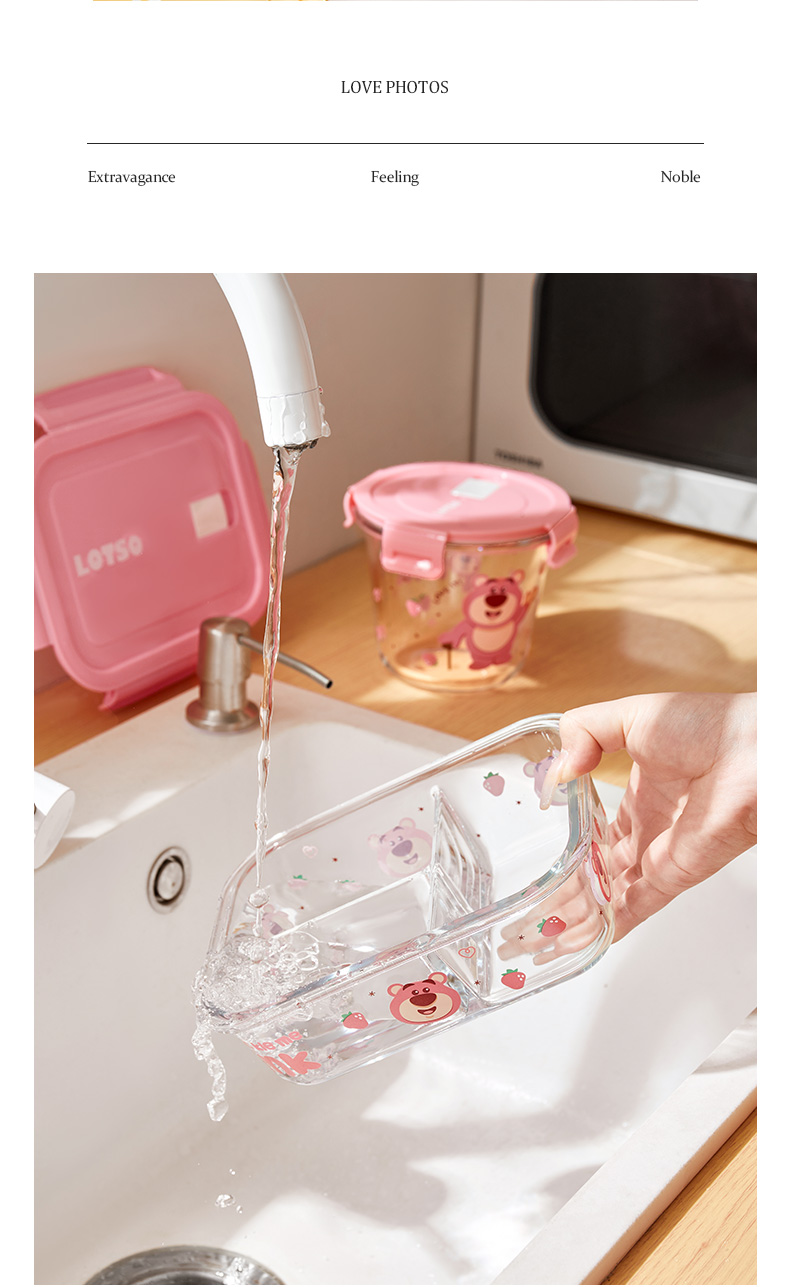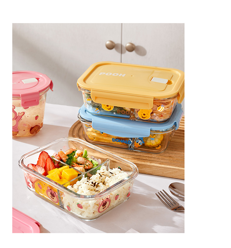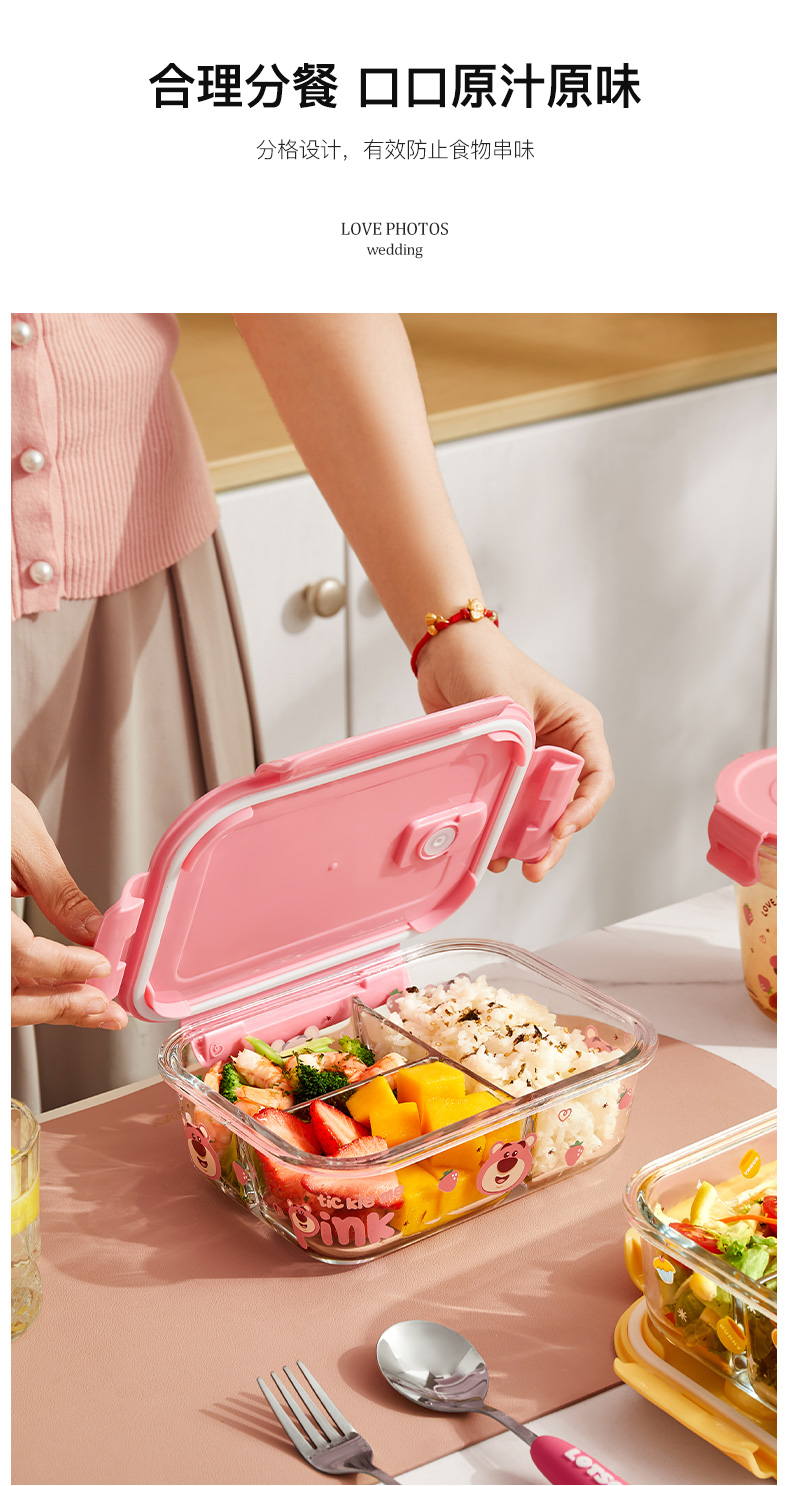 迪士尼玻璃饭盒微波炉加热专用保鲜碗上班族水果便当盒带饭餐盒